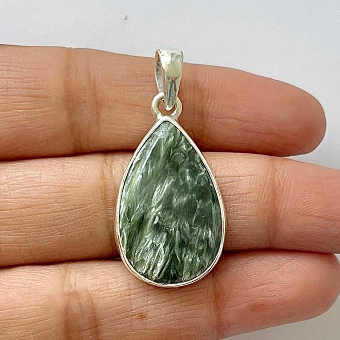 El serafín se destaca por sus sutiles tonos verdes, combinados armoniosamente con vetas plateadas o blancas, que se asemejan a las alas de un ángel. Esta combinación de colores y patrones naturales crea un aspecto delicado y encantador en las joyas. El serafín a menudo se asocia con energías angelicales y espirituales, siendo considerado una piedra de luz y amor divino.