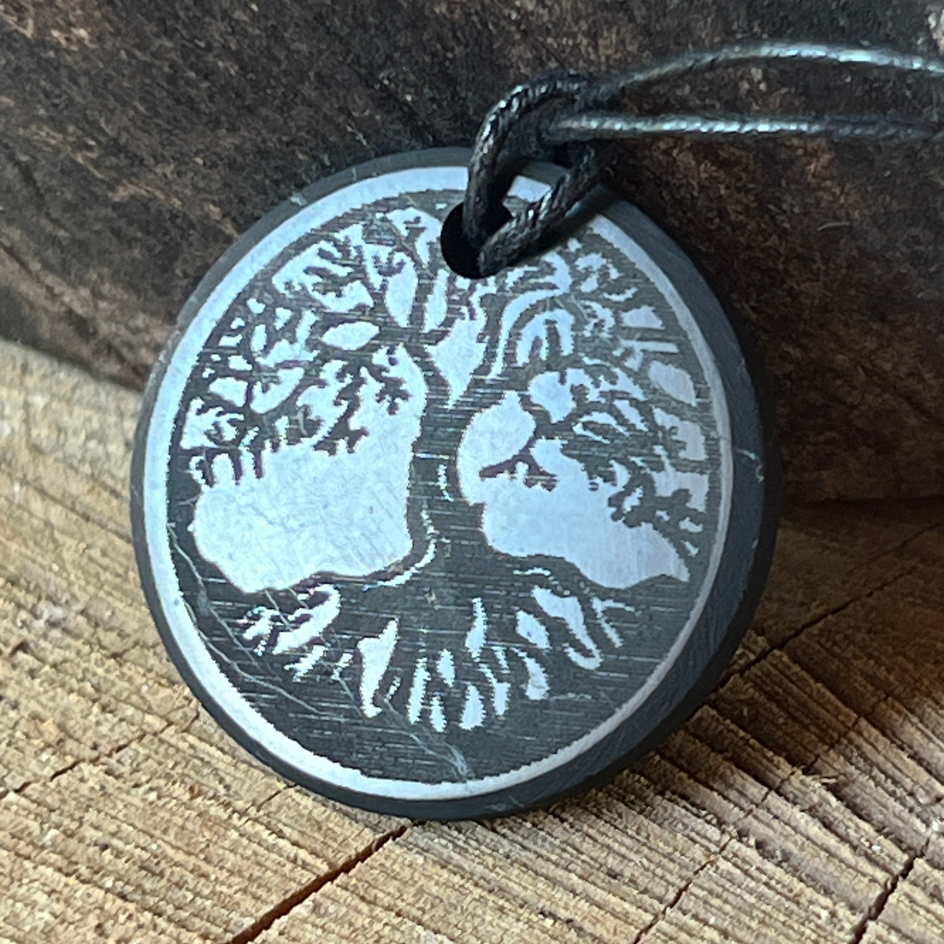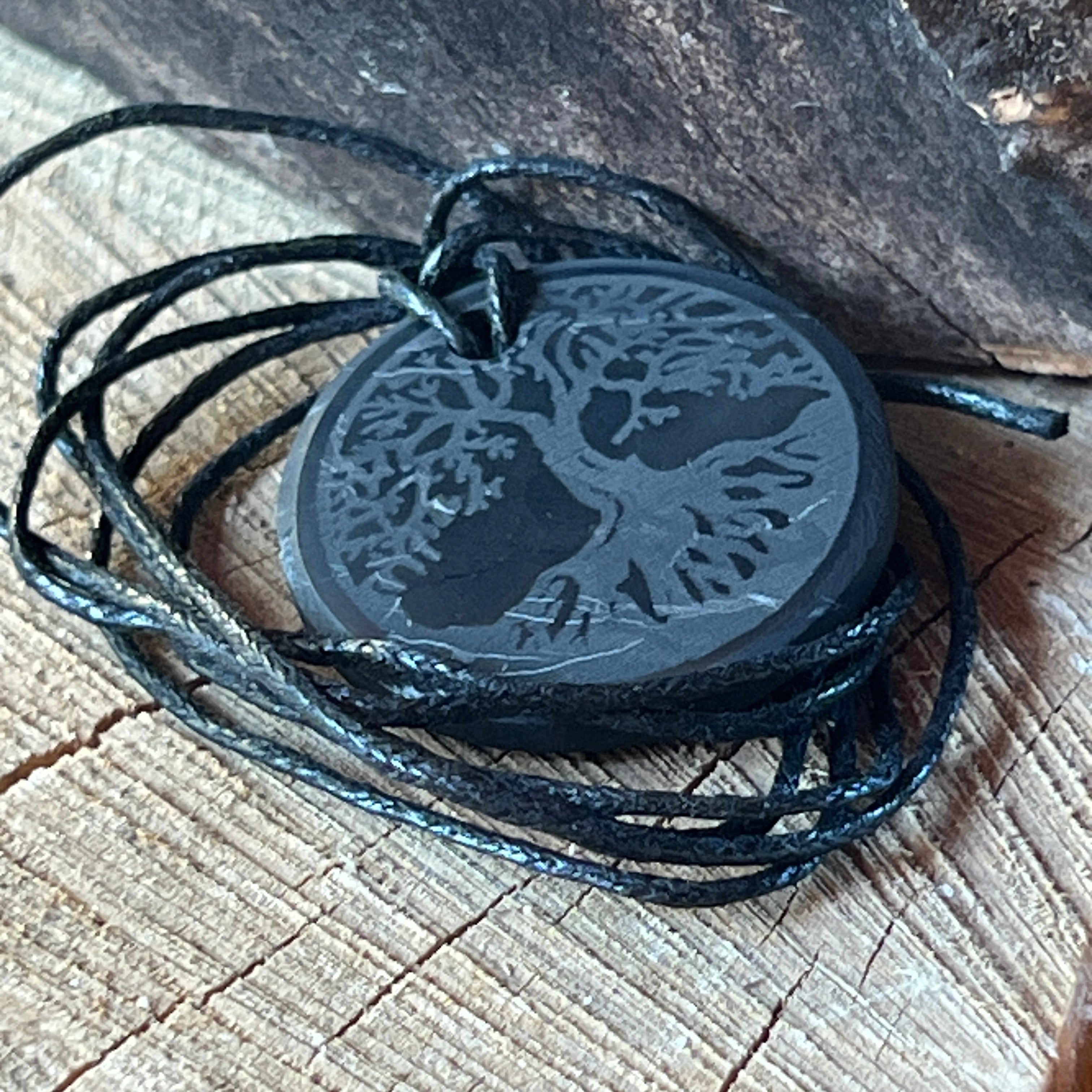 Un símbolo de la conexión entre la tierra y el cielo, entre el pasado y el futuro — este collar de shungit grabado con Árbol de la Vida es una joya de protección y transformación interior.