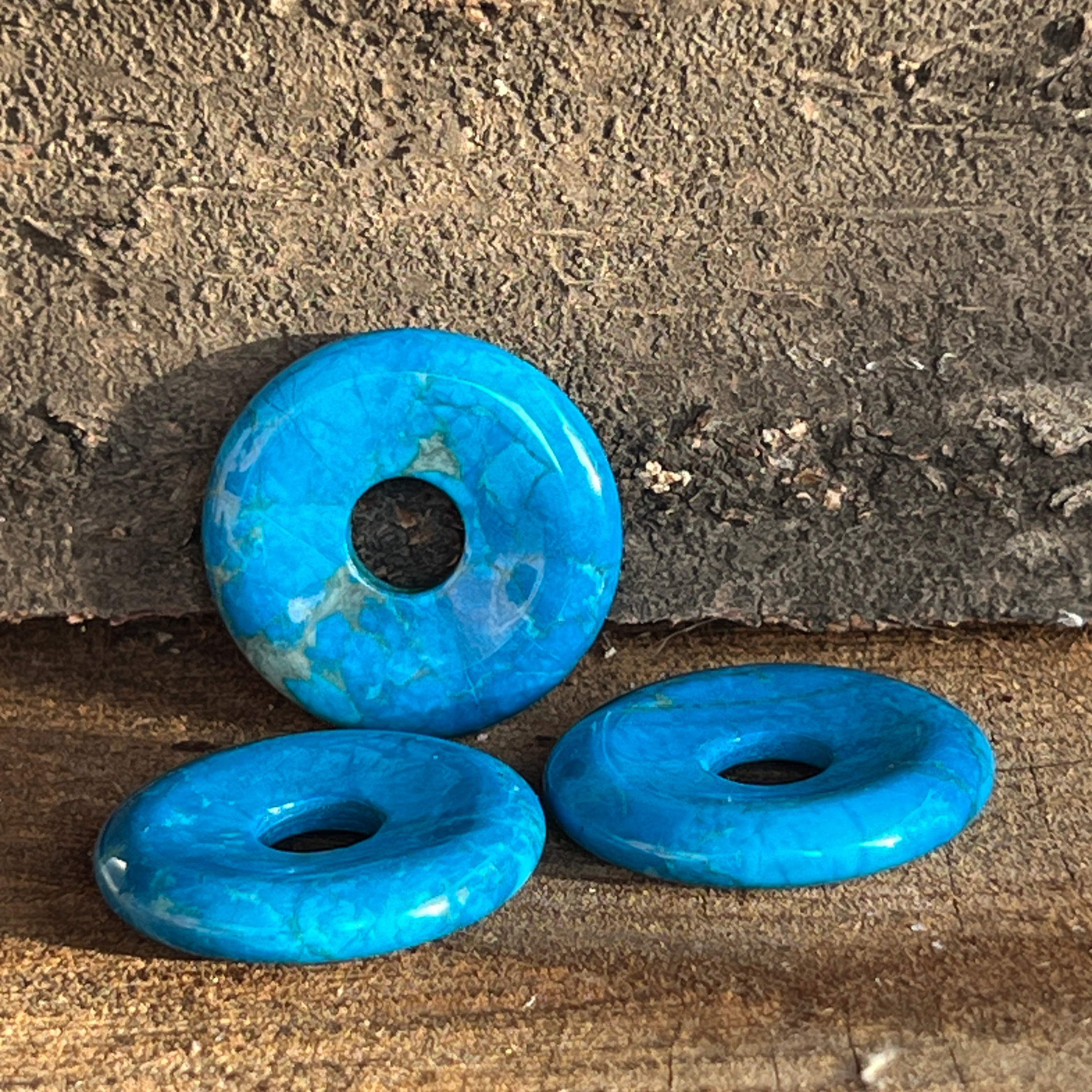 Descriere - Colgante donut piedra pi howlita azul M