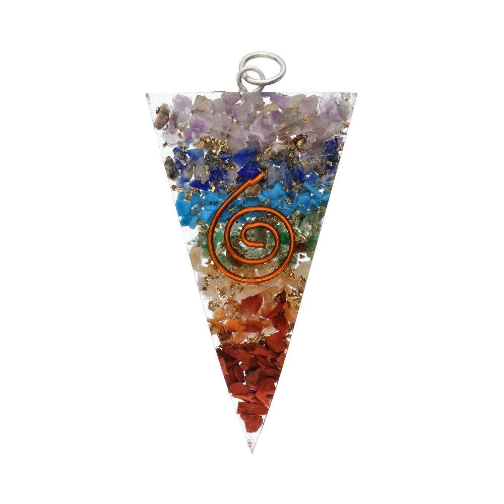 Este colgante de corazón de resina combina la belleza simbólica de los 7 chakras con la energía de los metales naturales. Hecho a mano en la India, el colgante tiene en su interior cobre, conocido por su capacidad para intensificar las vibraciones, y latón chapado, que aporta durabilidad y elegancia.