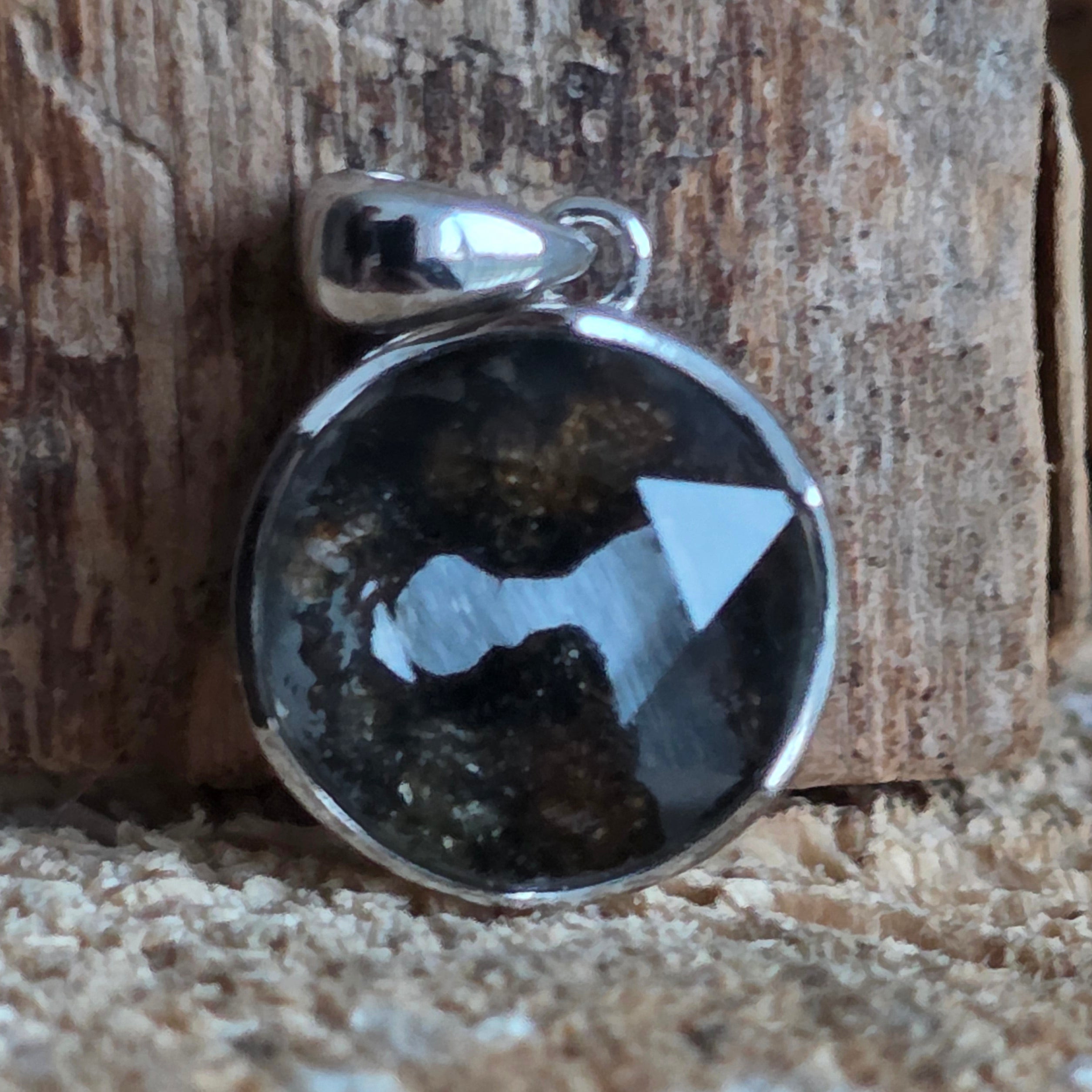 - Materiales: Meteorito natural Muonionalusta, montaje en plata o metal