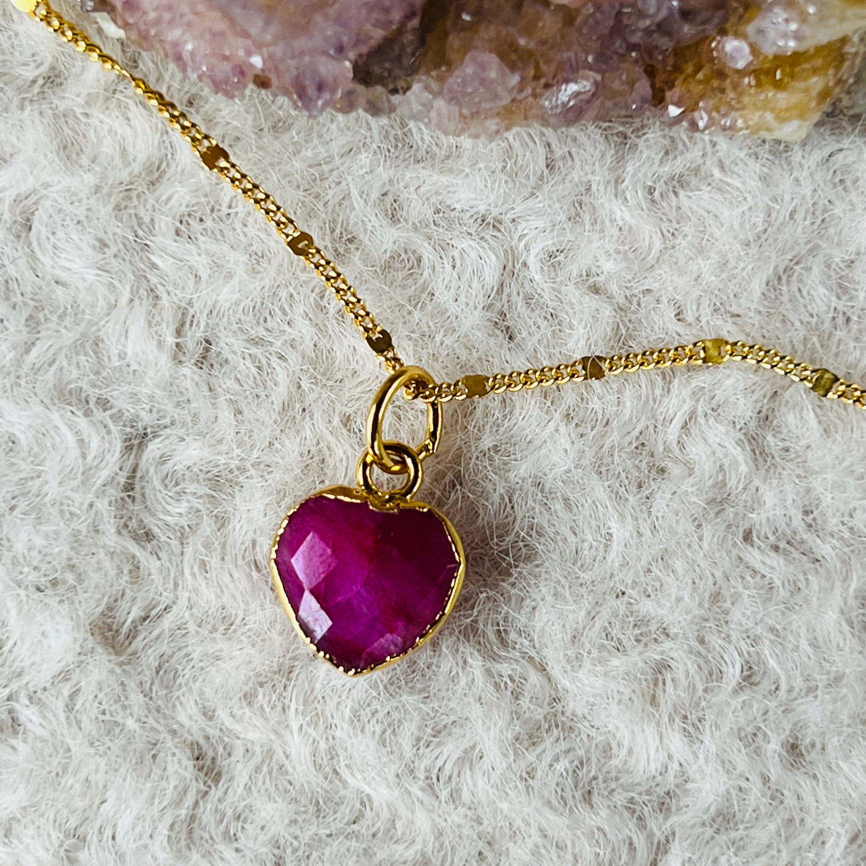 Colgante mini rubí corazón 1 cm, piedra del mes de julio, piedra de nacimiento
