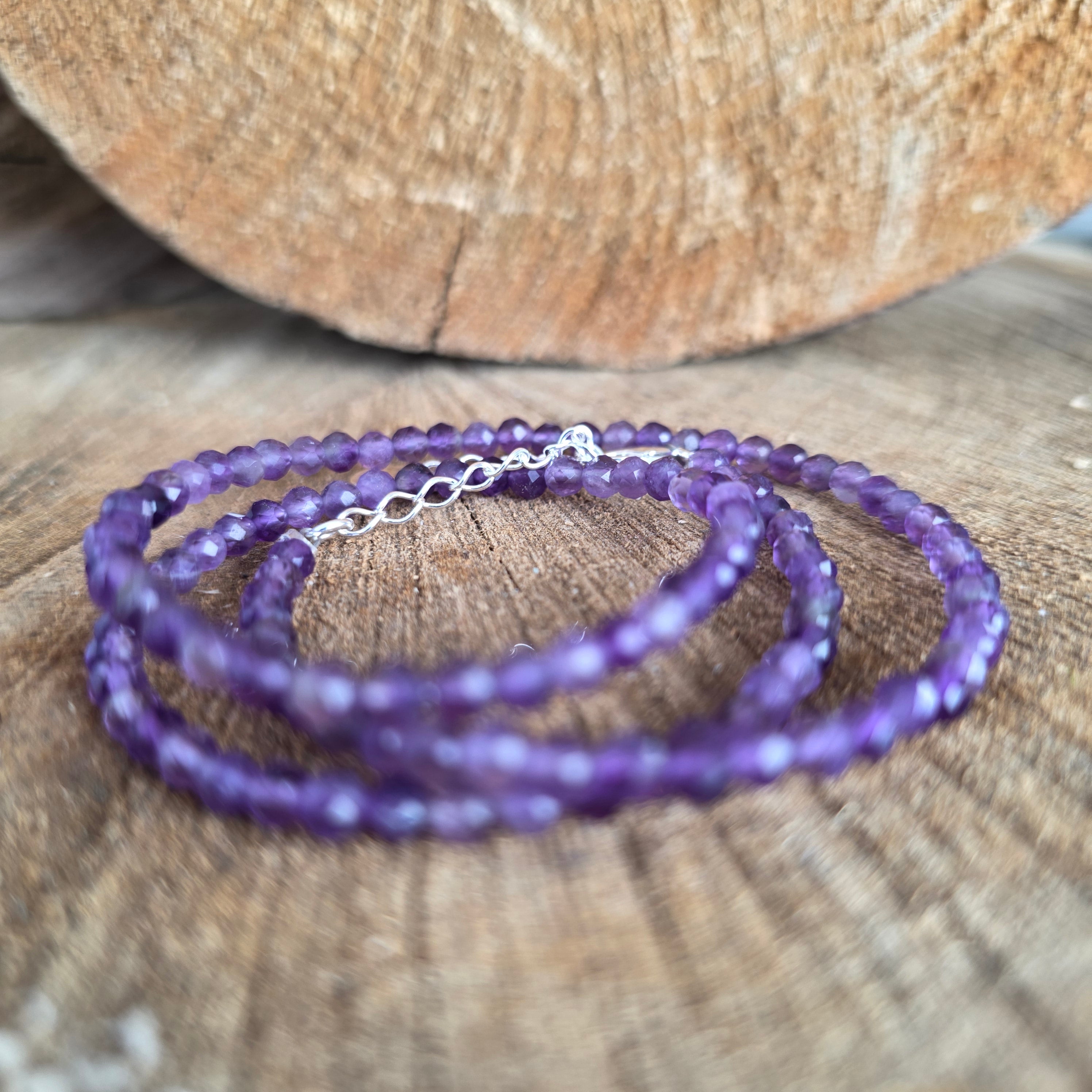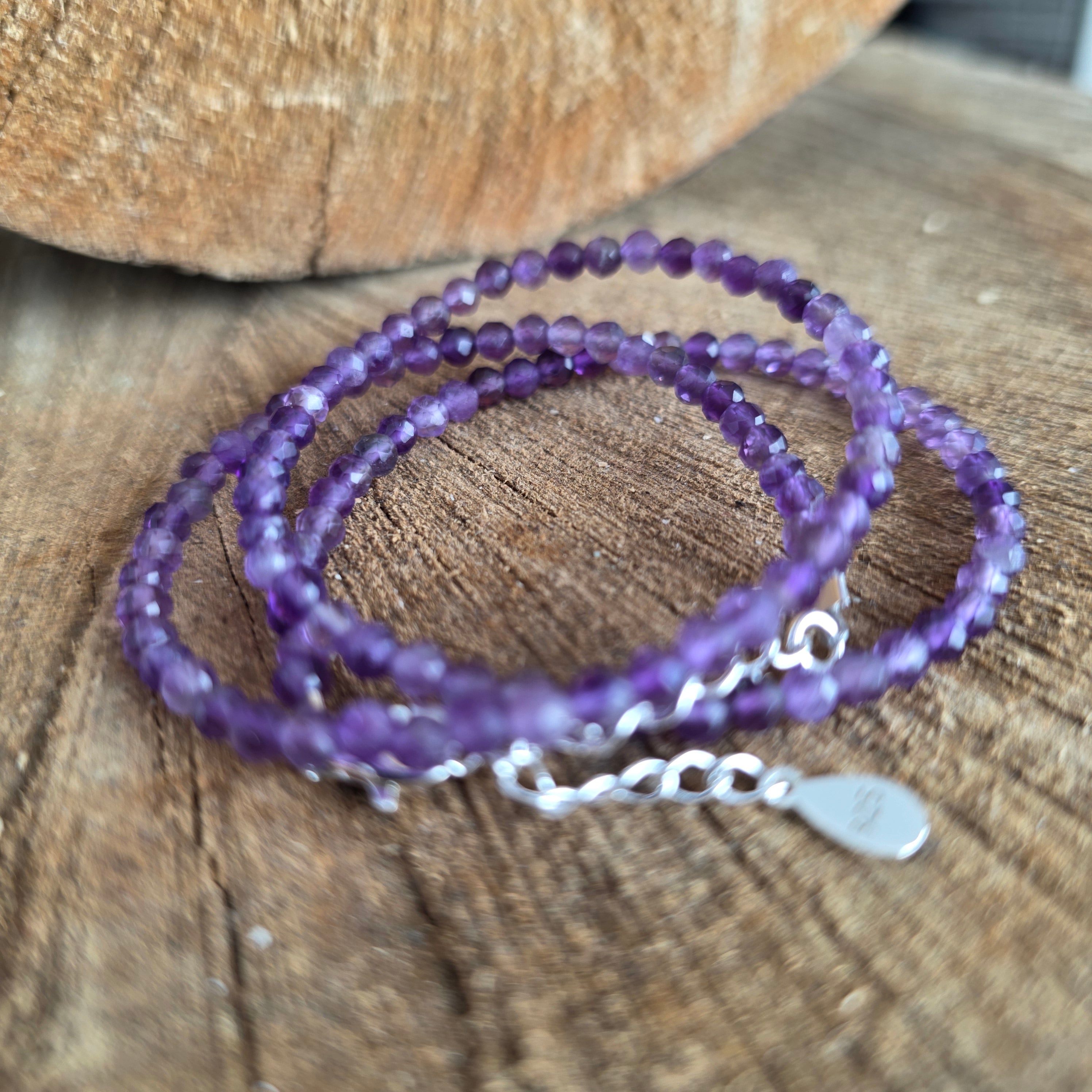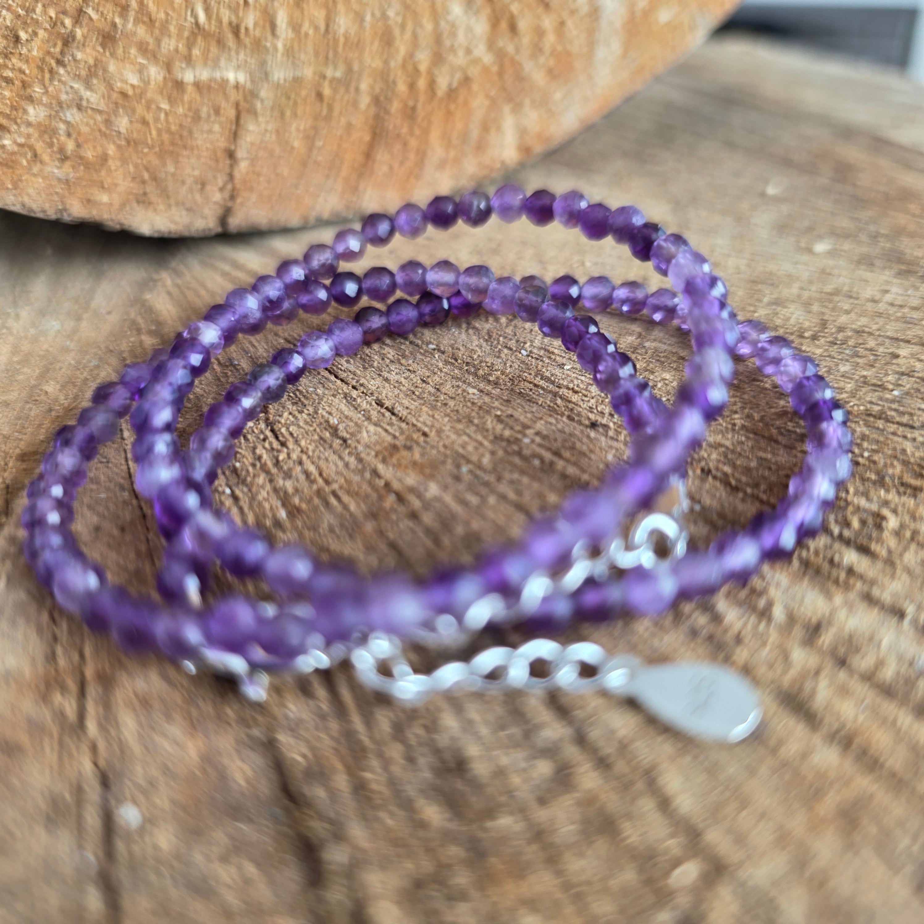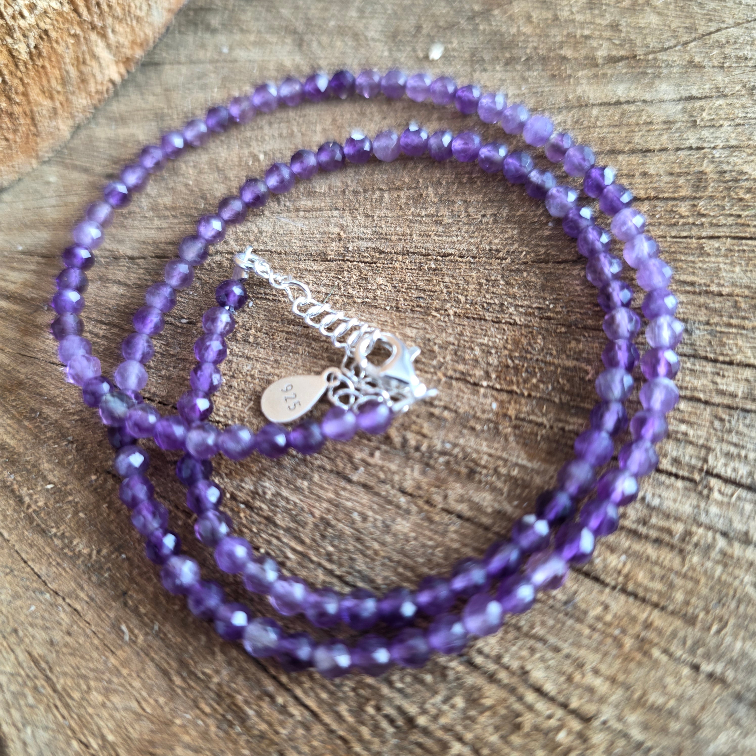 Materiales: amatista natural facetada de 3 mm, plata 925