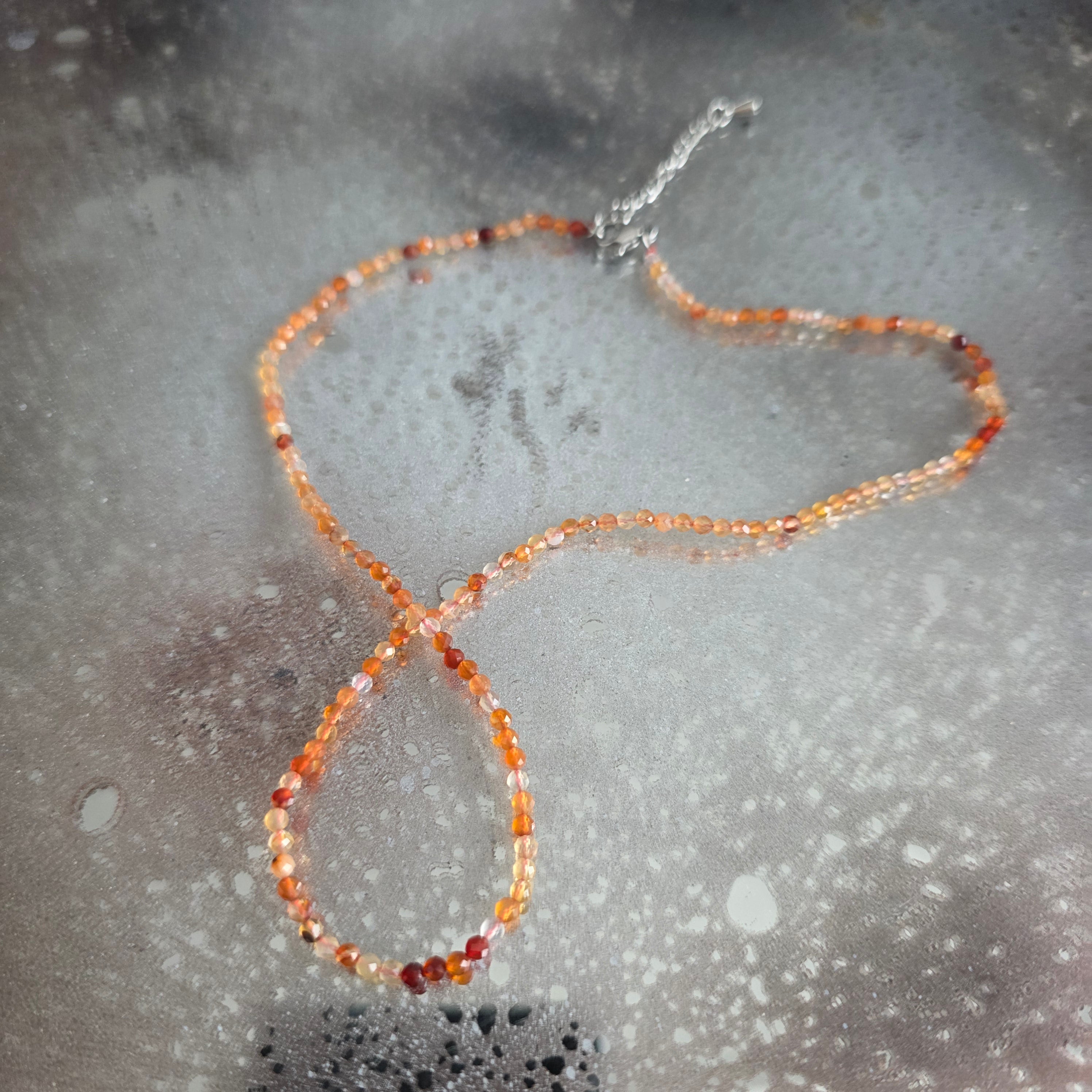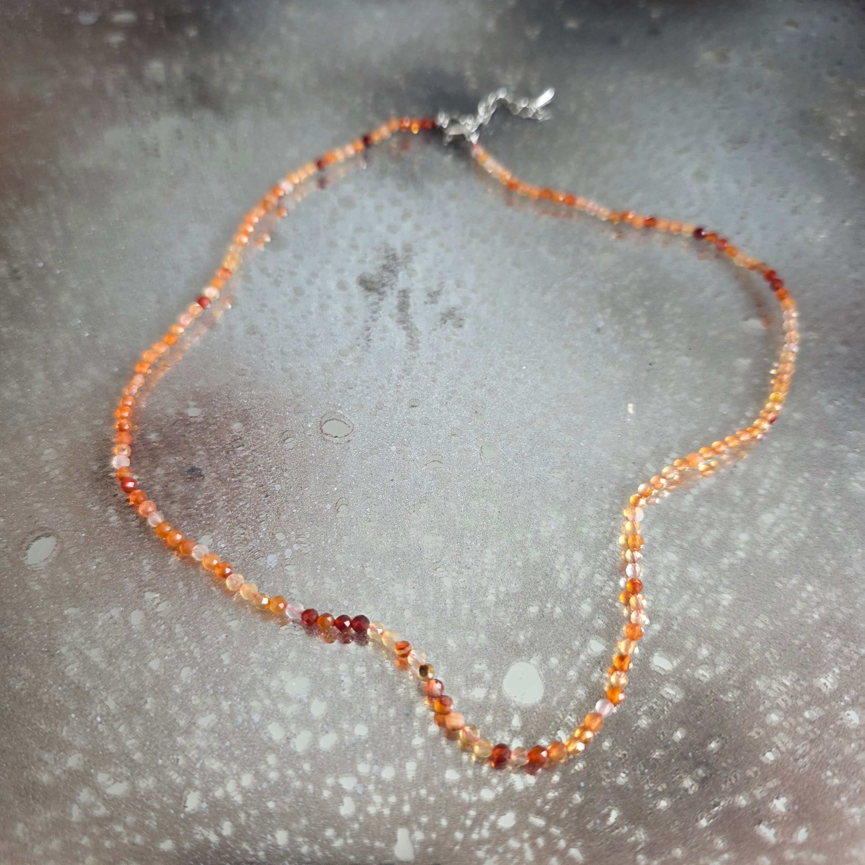Collar de cornalina esferas 2 mm, tamaño: 38 + 5 cm (cadena de extensión)