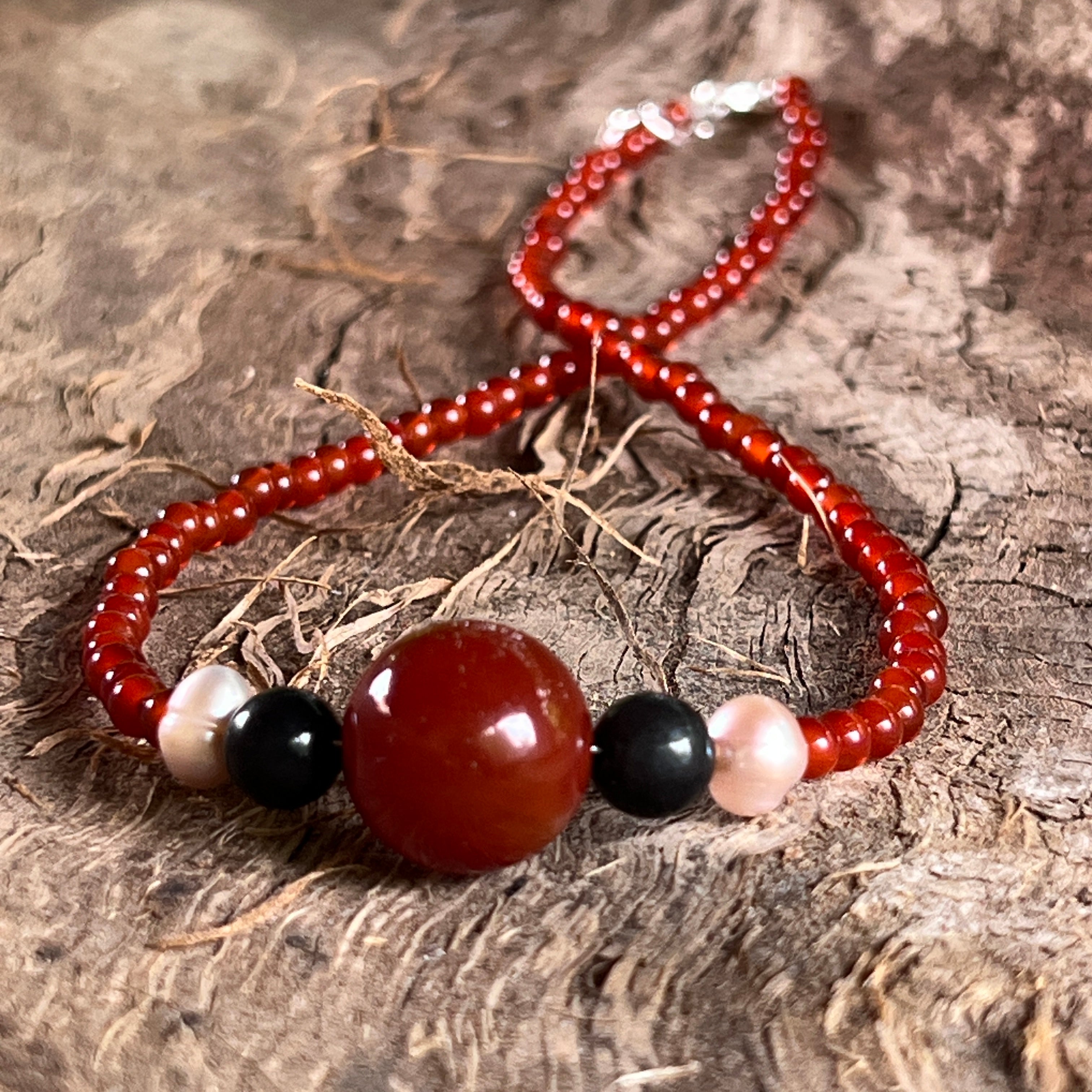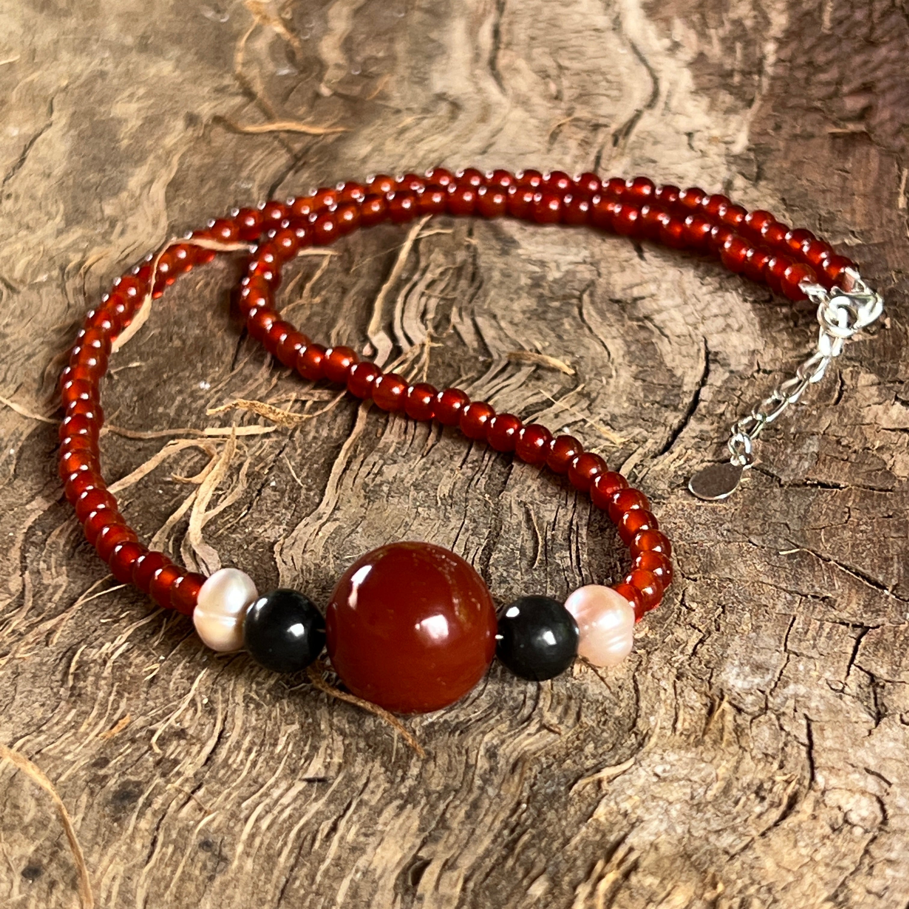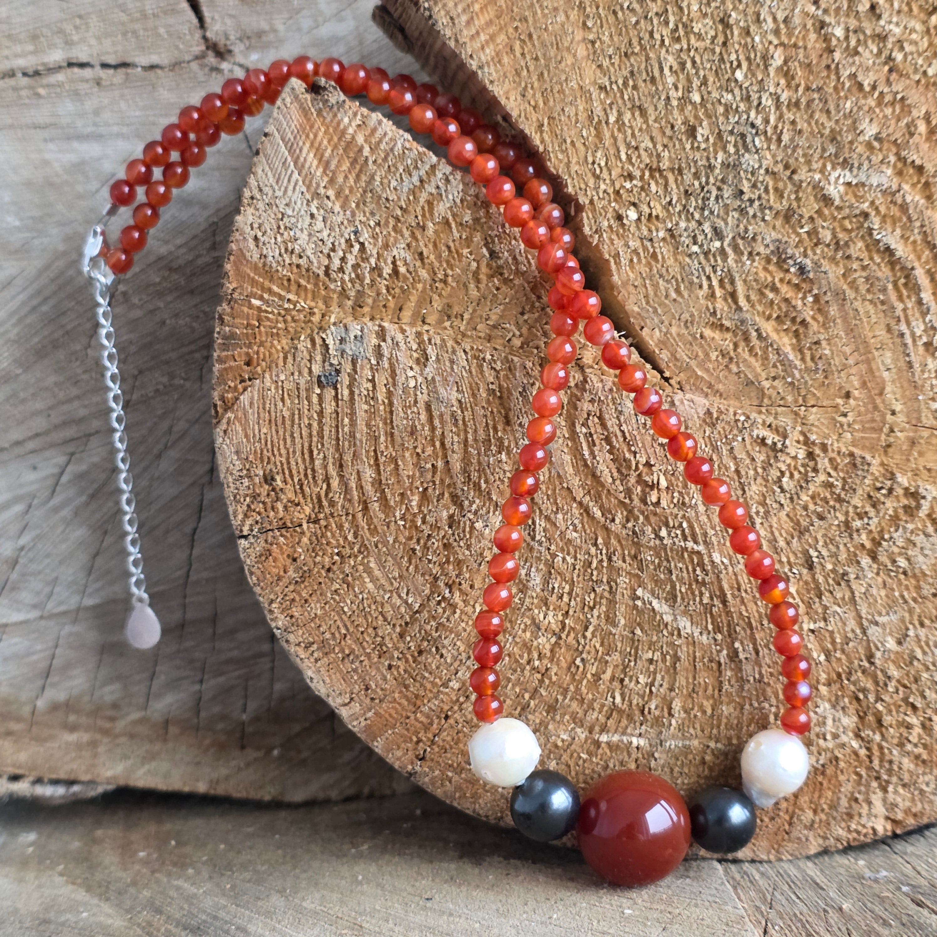 Collar de cornalina, shungit y perlas Rooted Glow#12