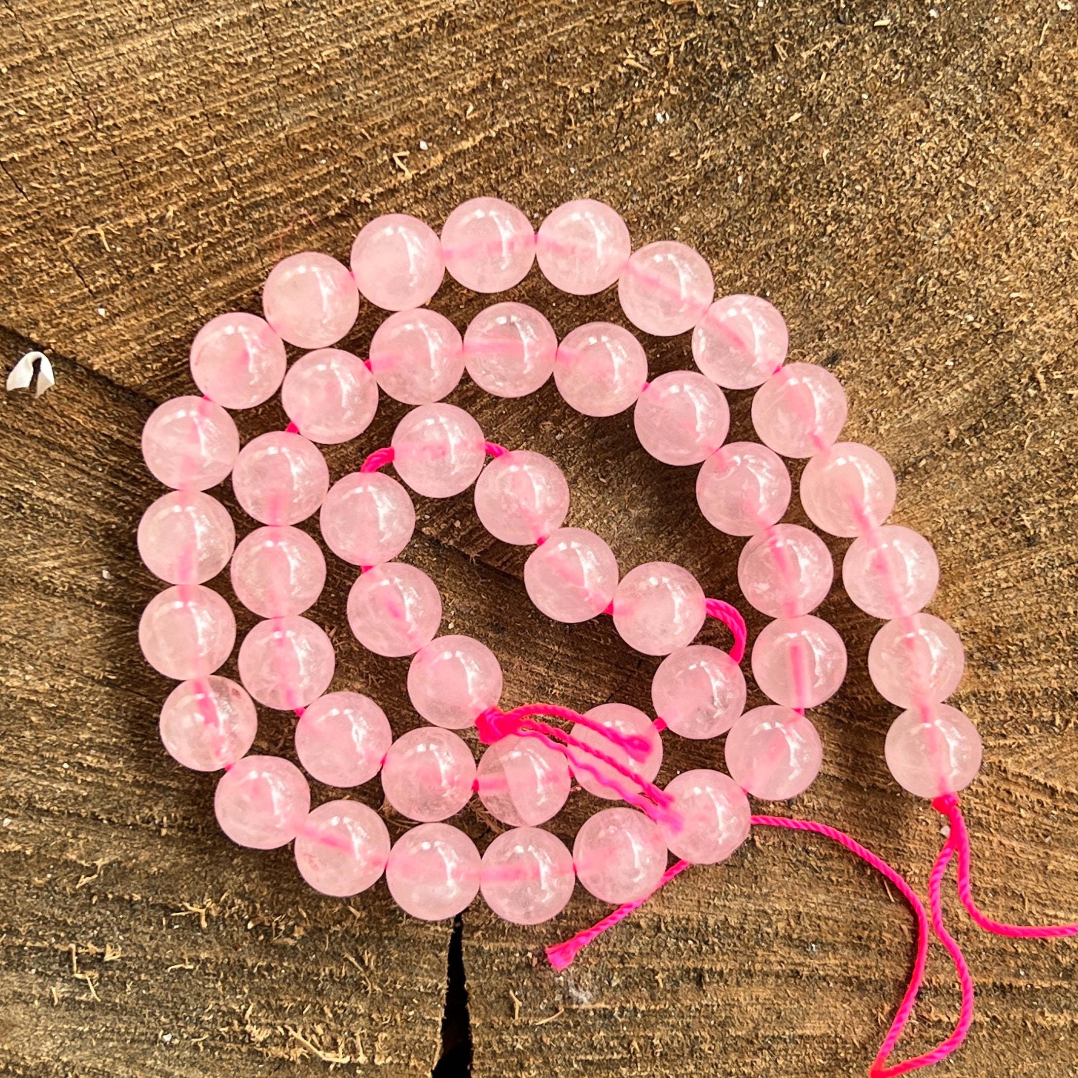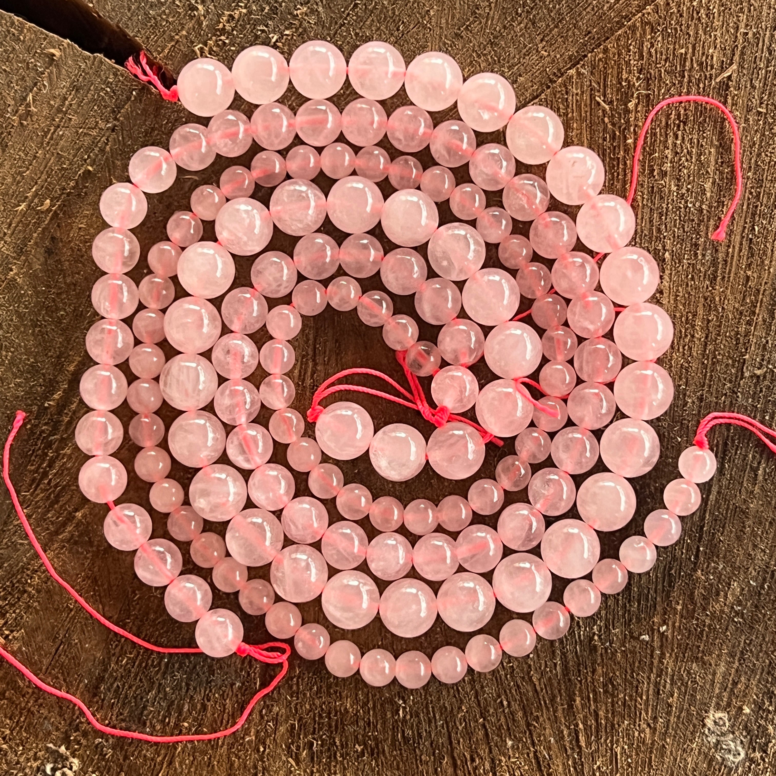 Collar de esferas de cuarzo rosa, compuesto por cuentas esféricas naturales, perfecto para collares, pulseras u otras joyas hechas a mano.