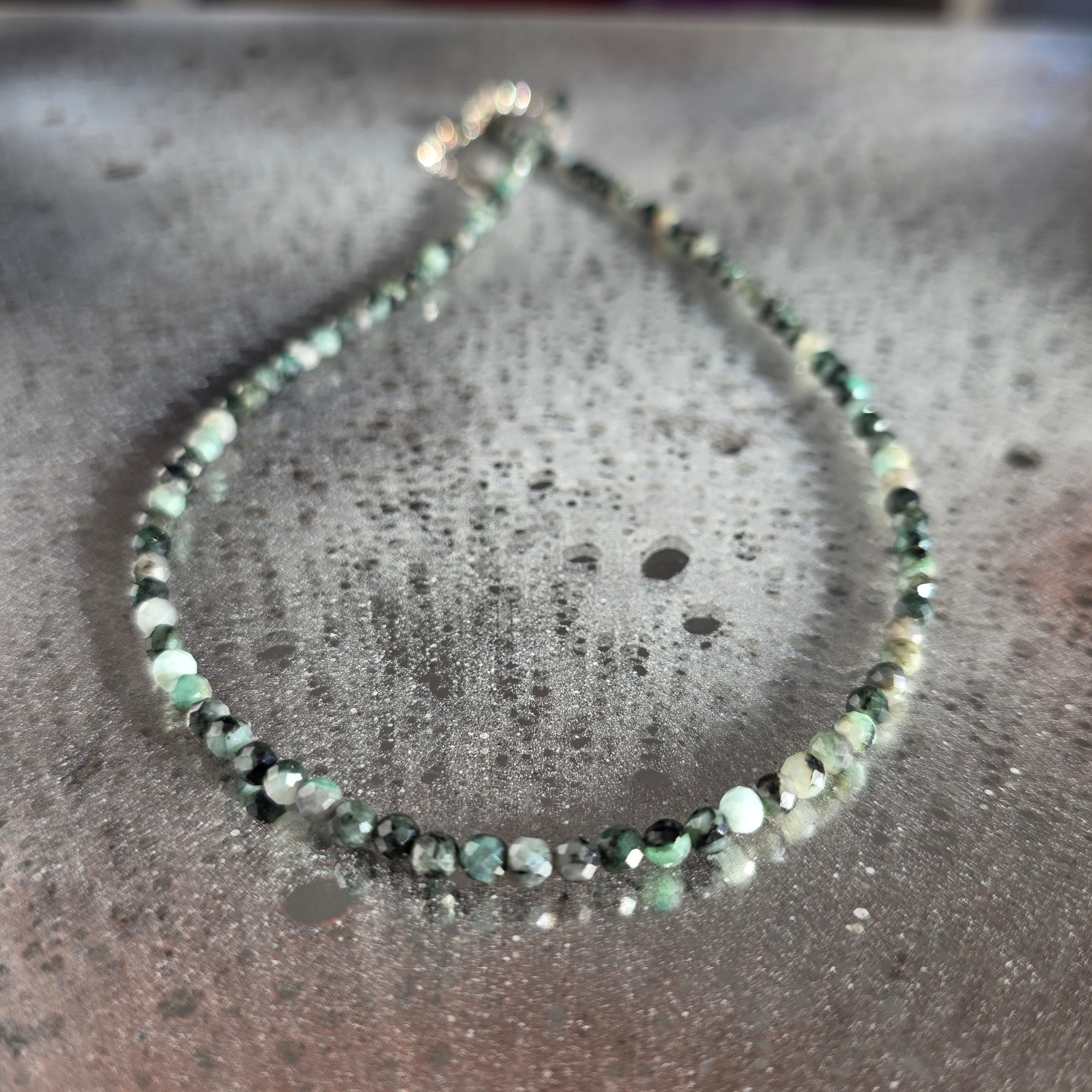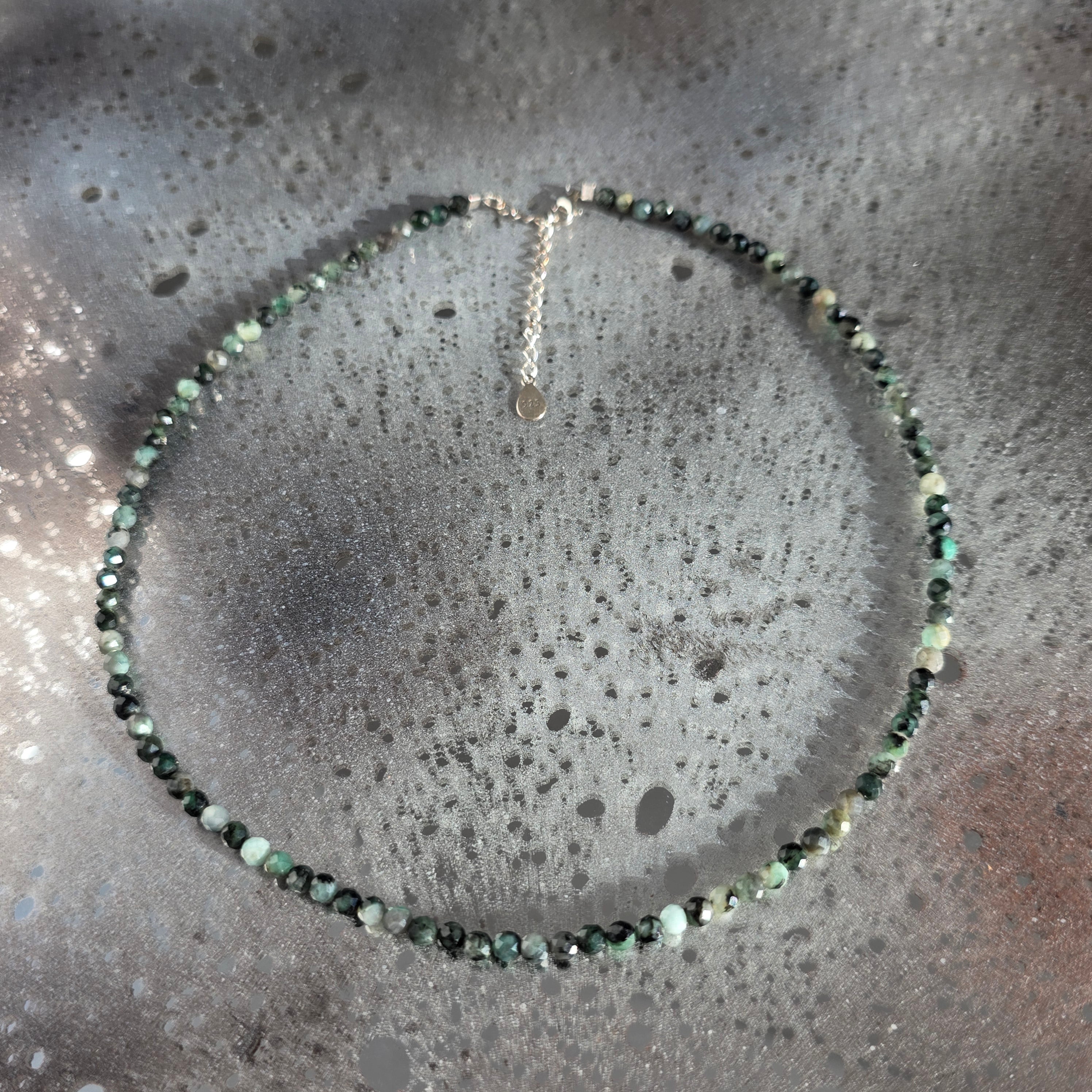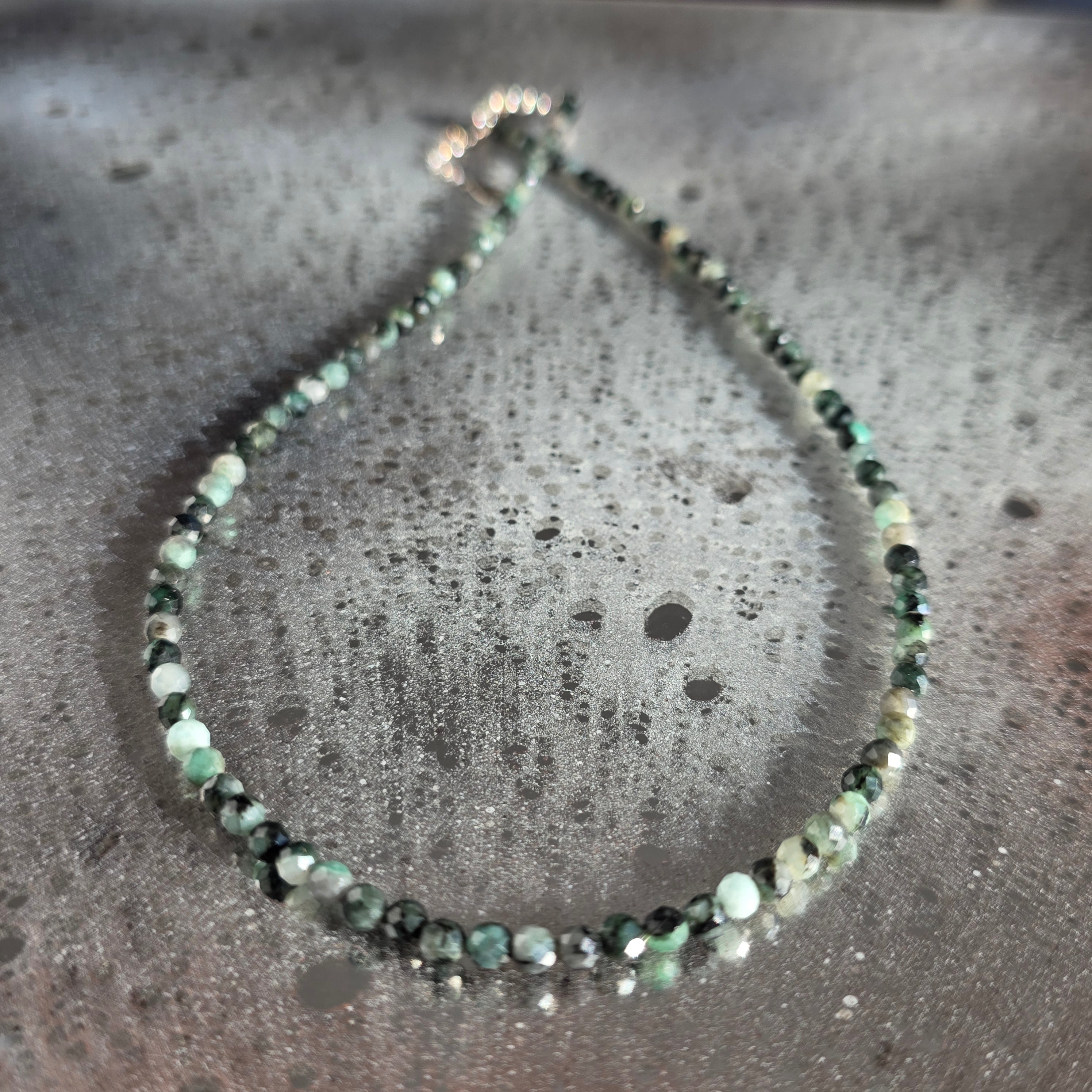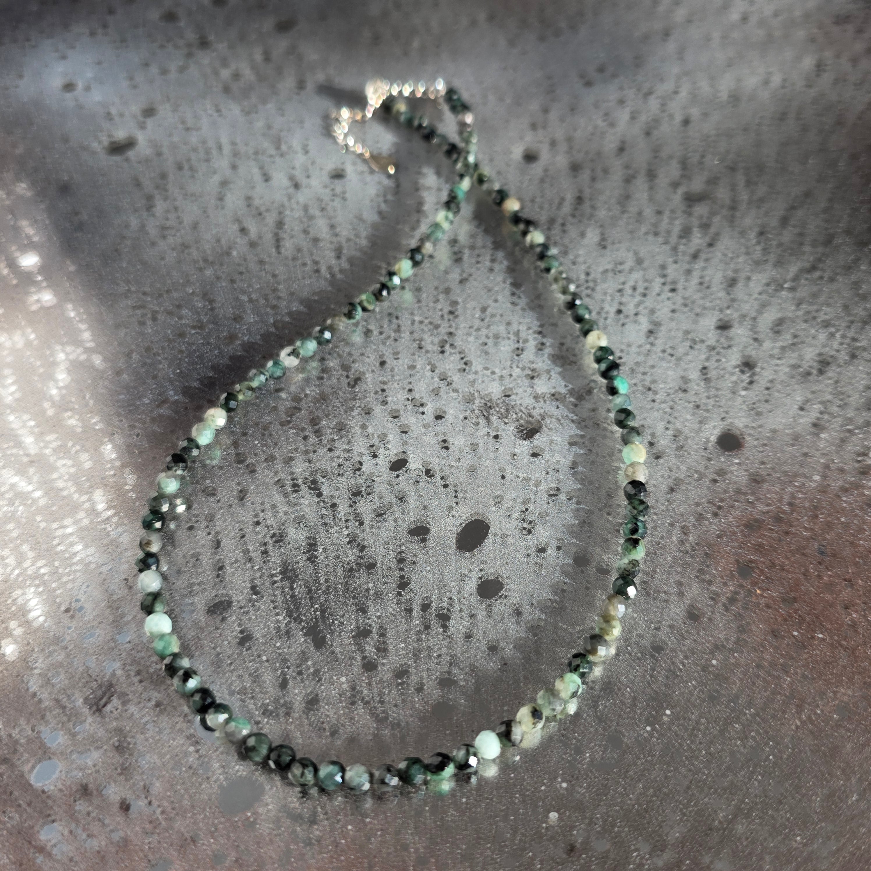 Materiales: esmeralda facetada 3-4 mm, plata 925