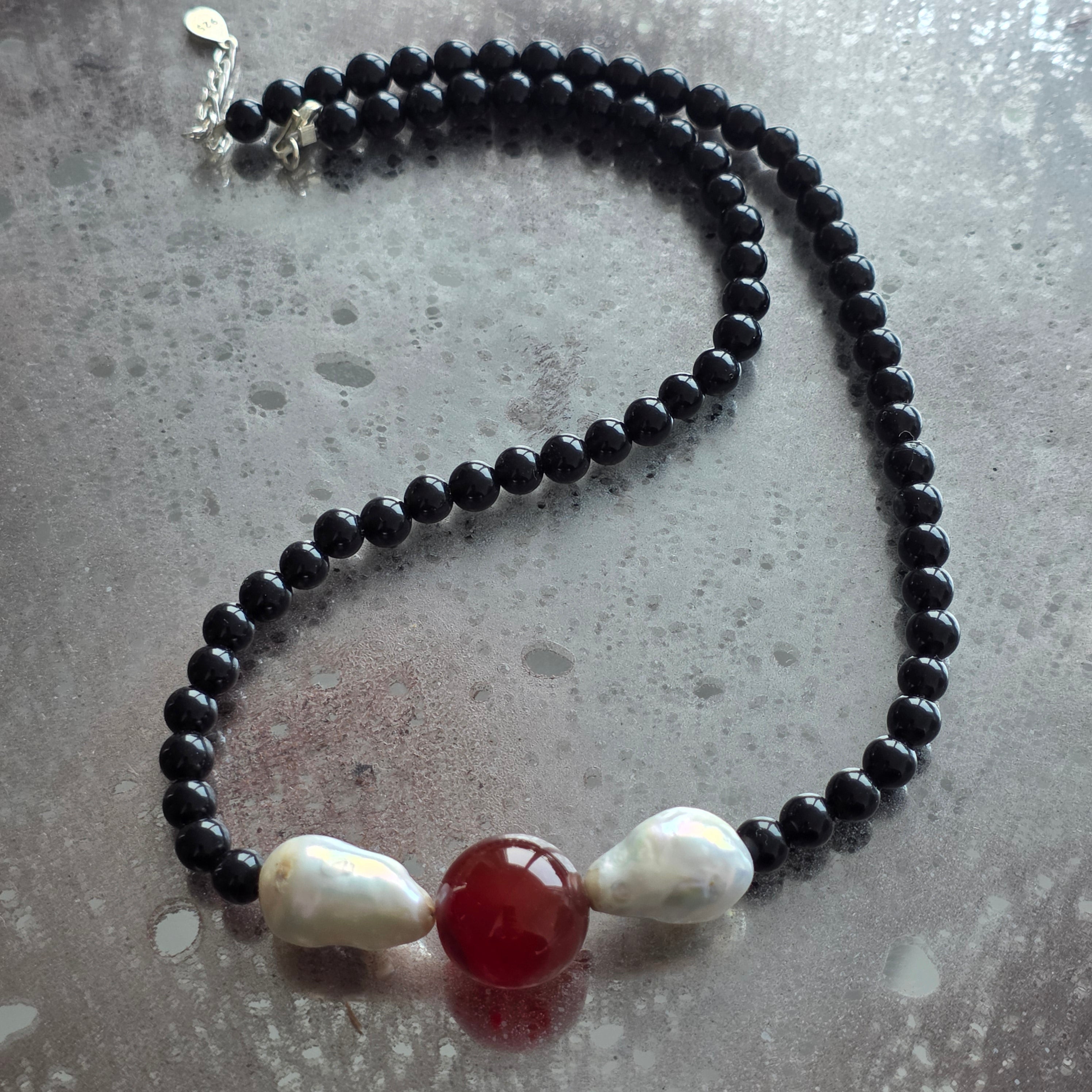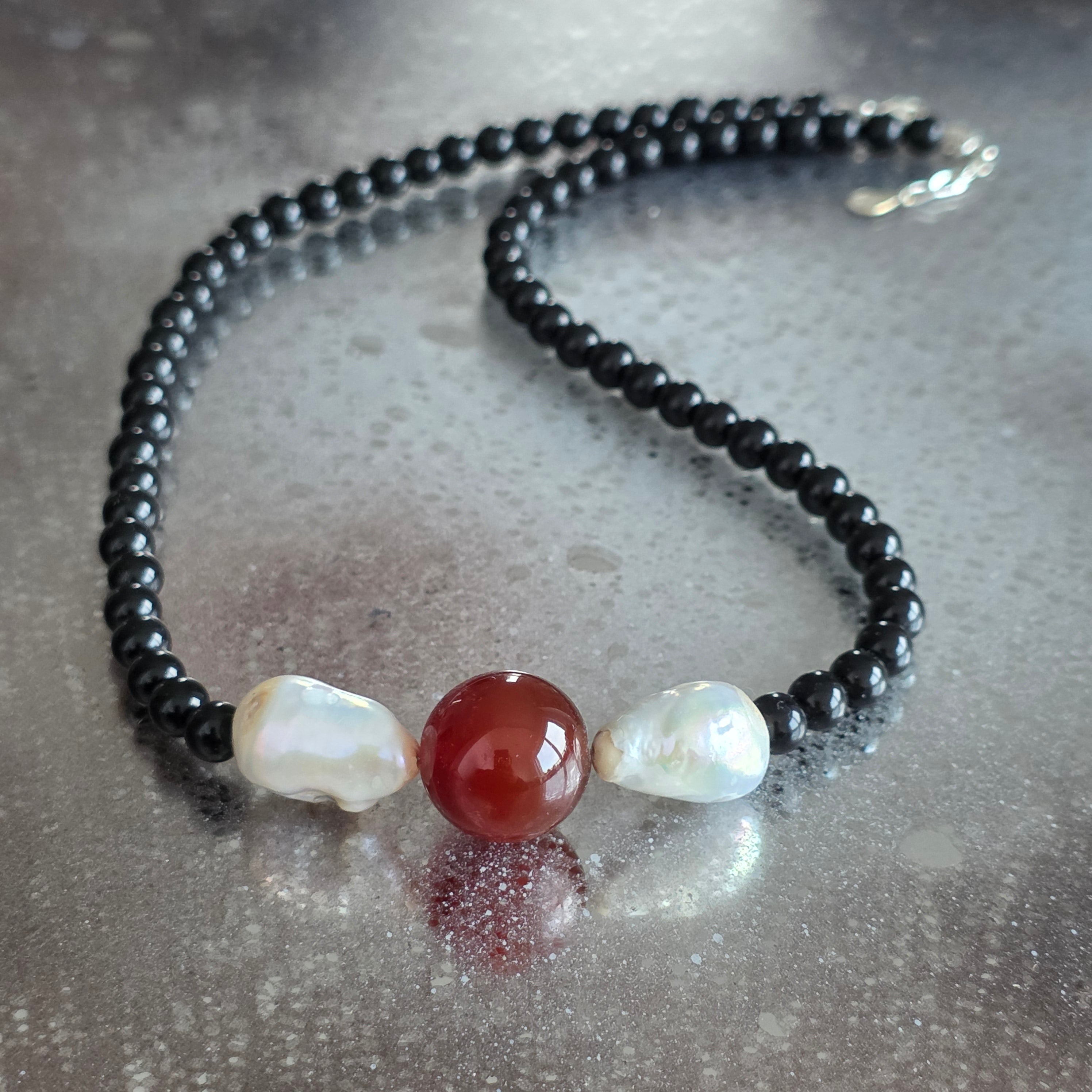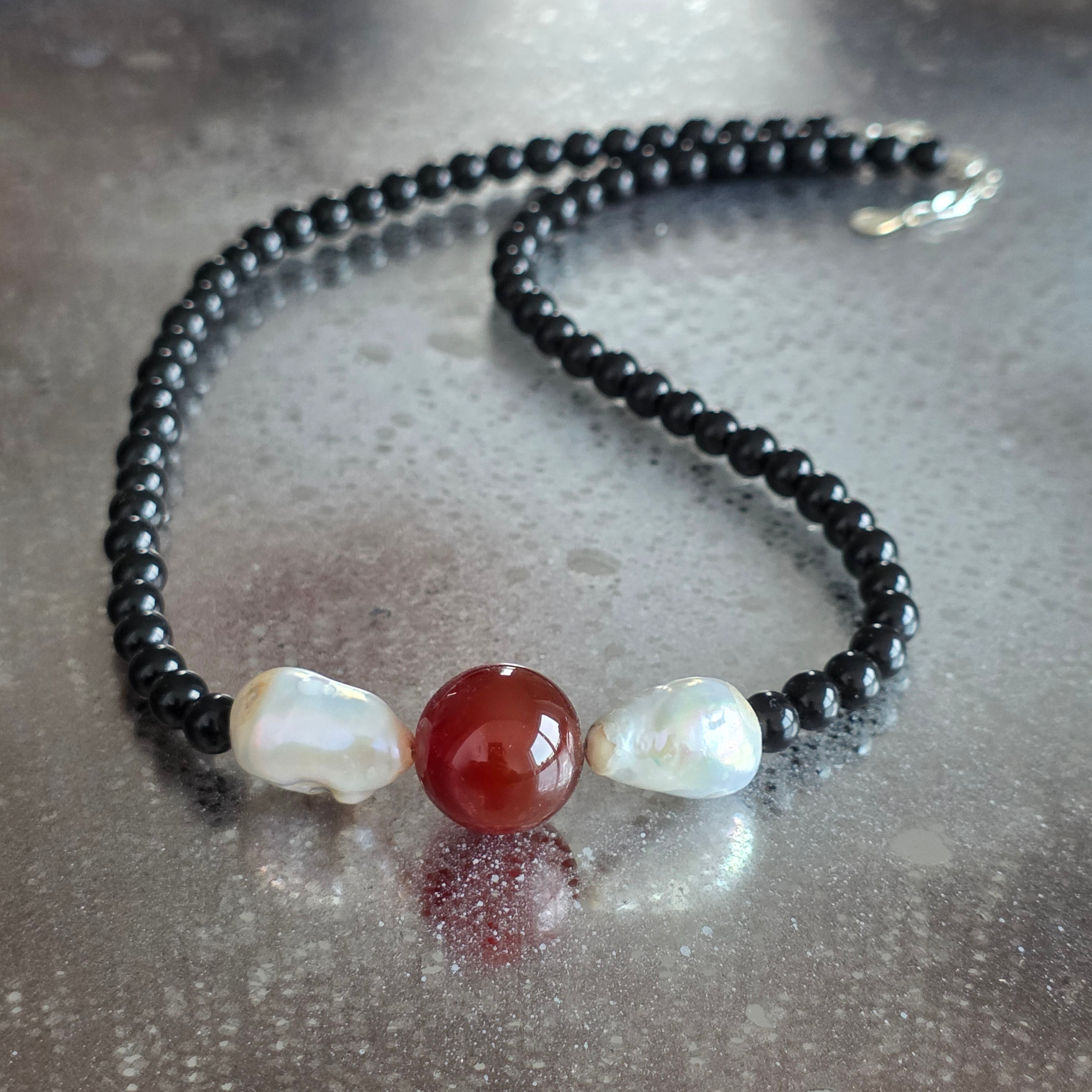 Collar de obsidiana, cornalina y perlas Rooted Glow#13