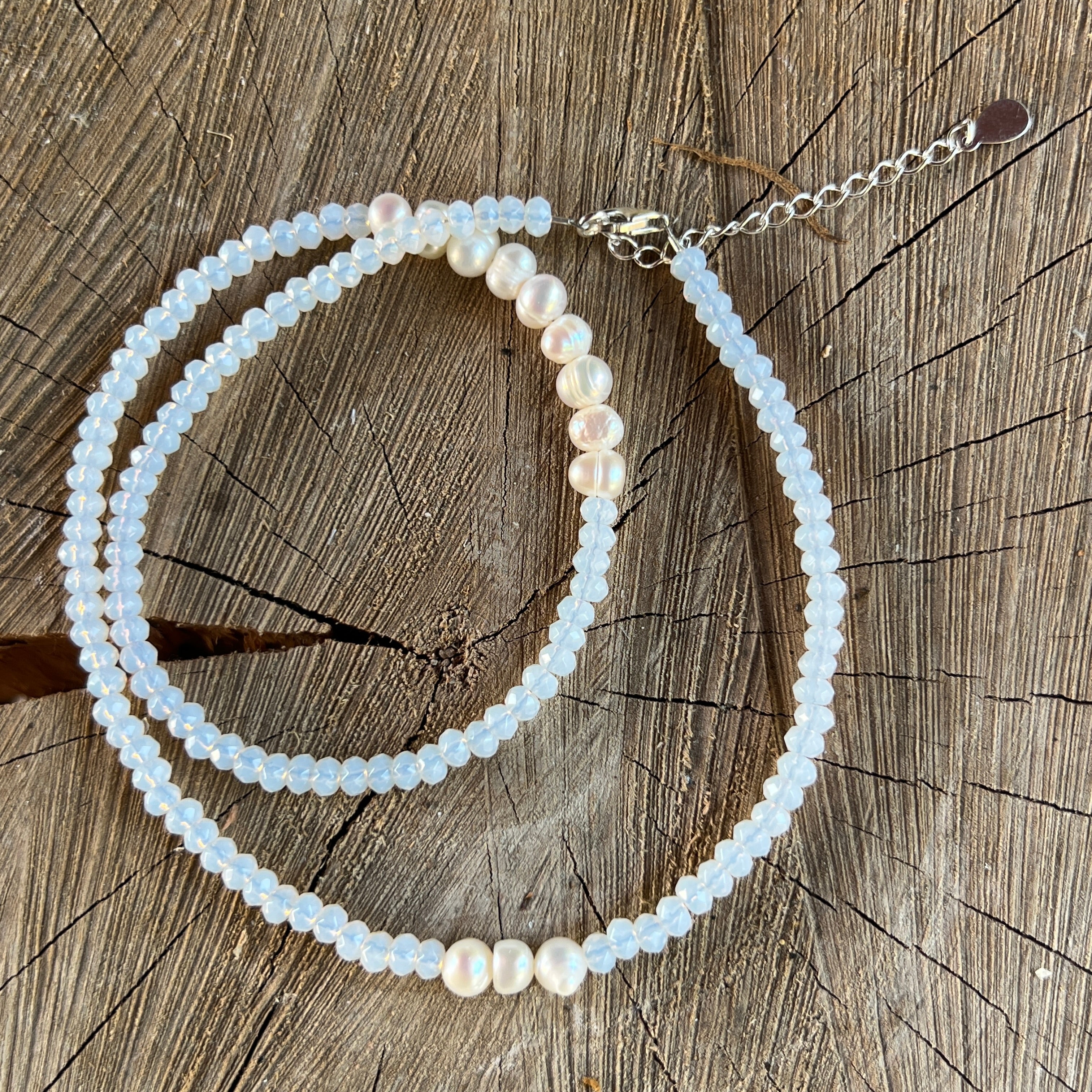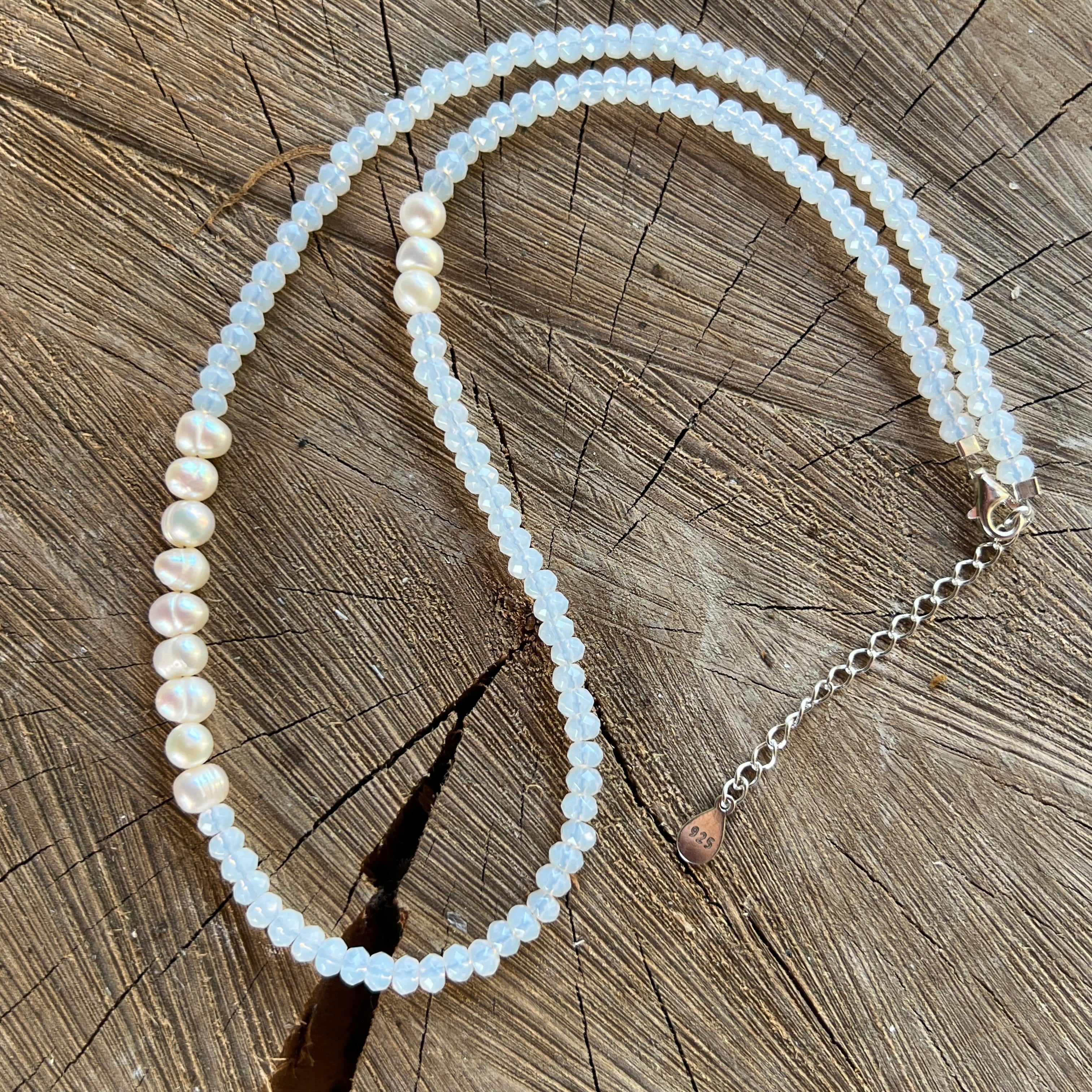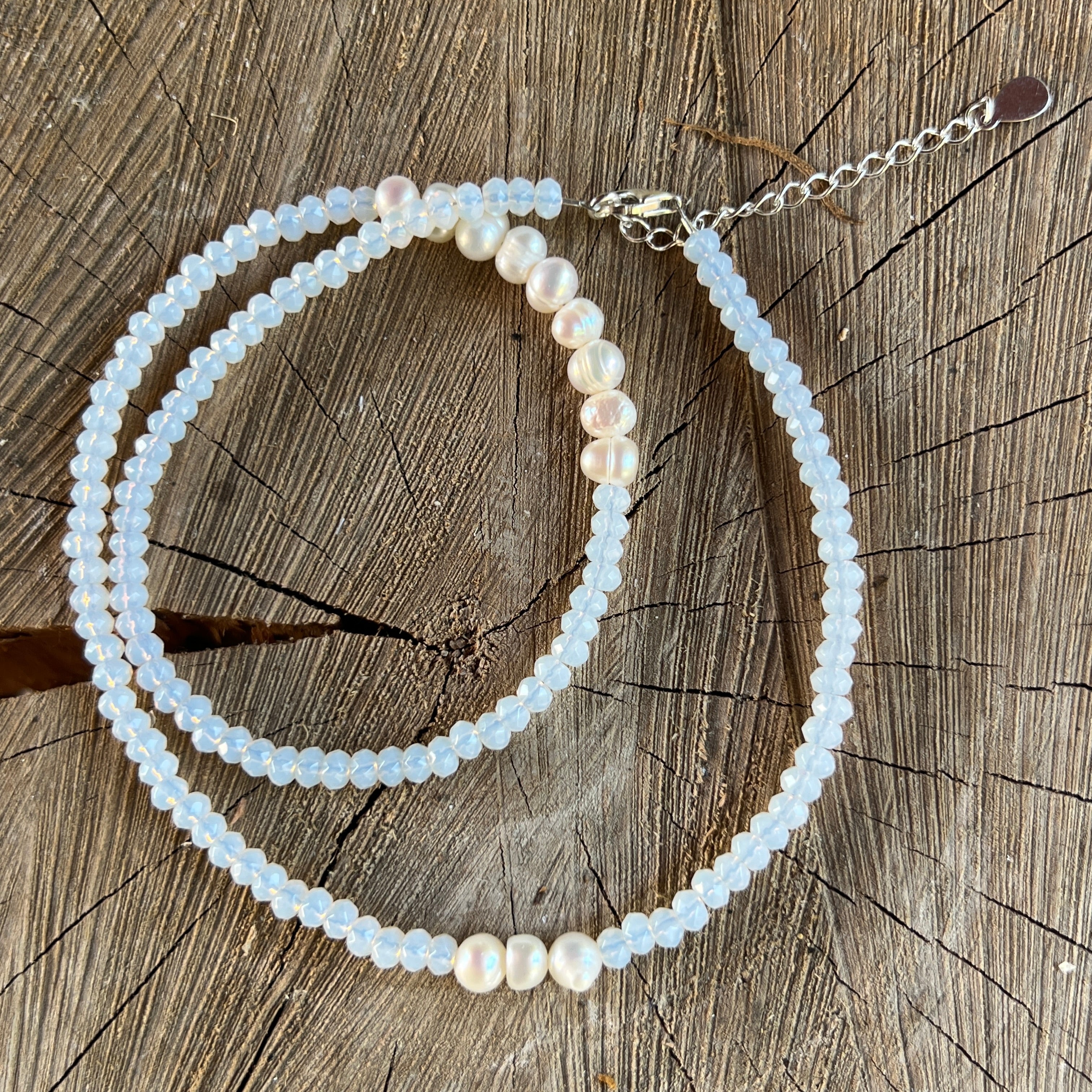 Descriere - Collar de ópalo facetado y perlas Light #56