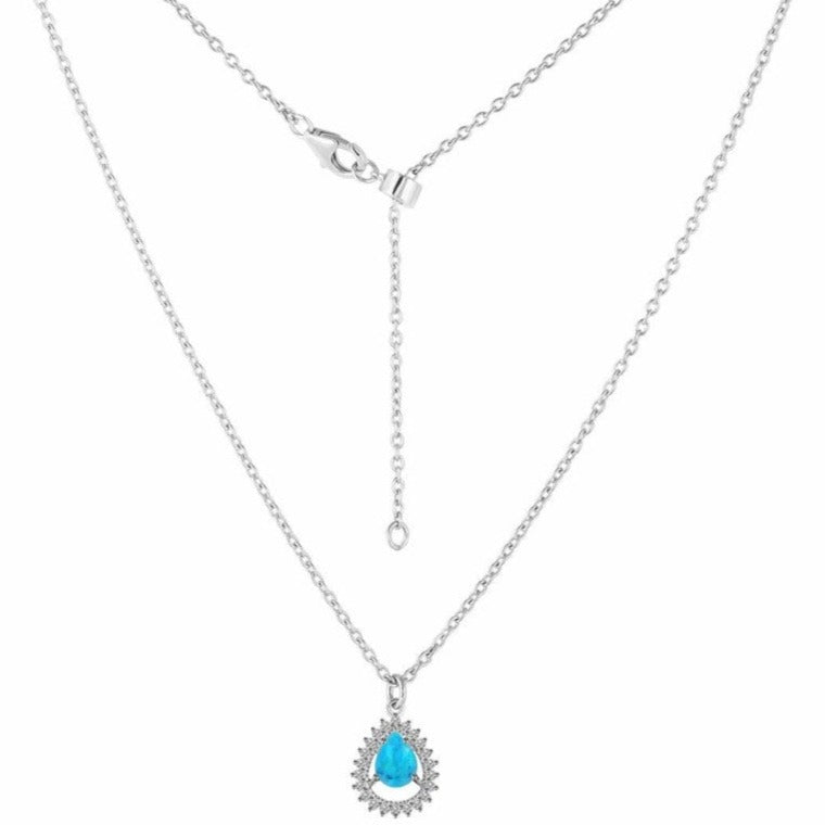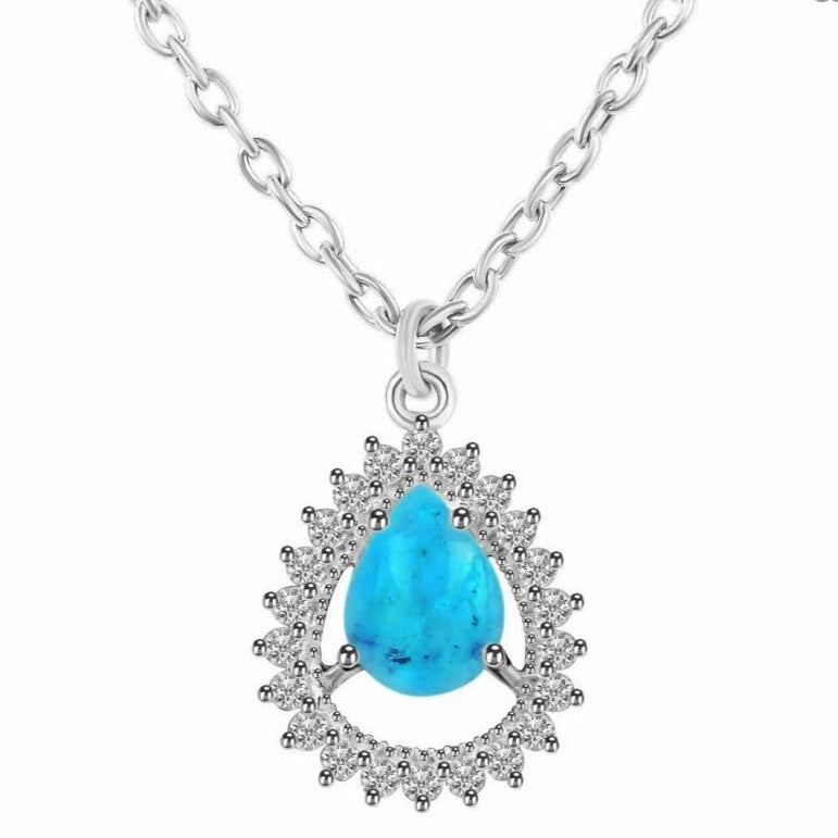 Descriere - Collar de turquesa de plata, topacio blanco Pear