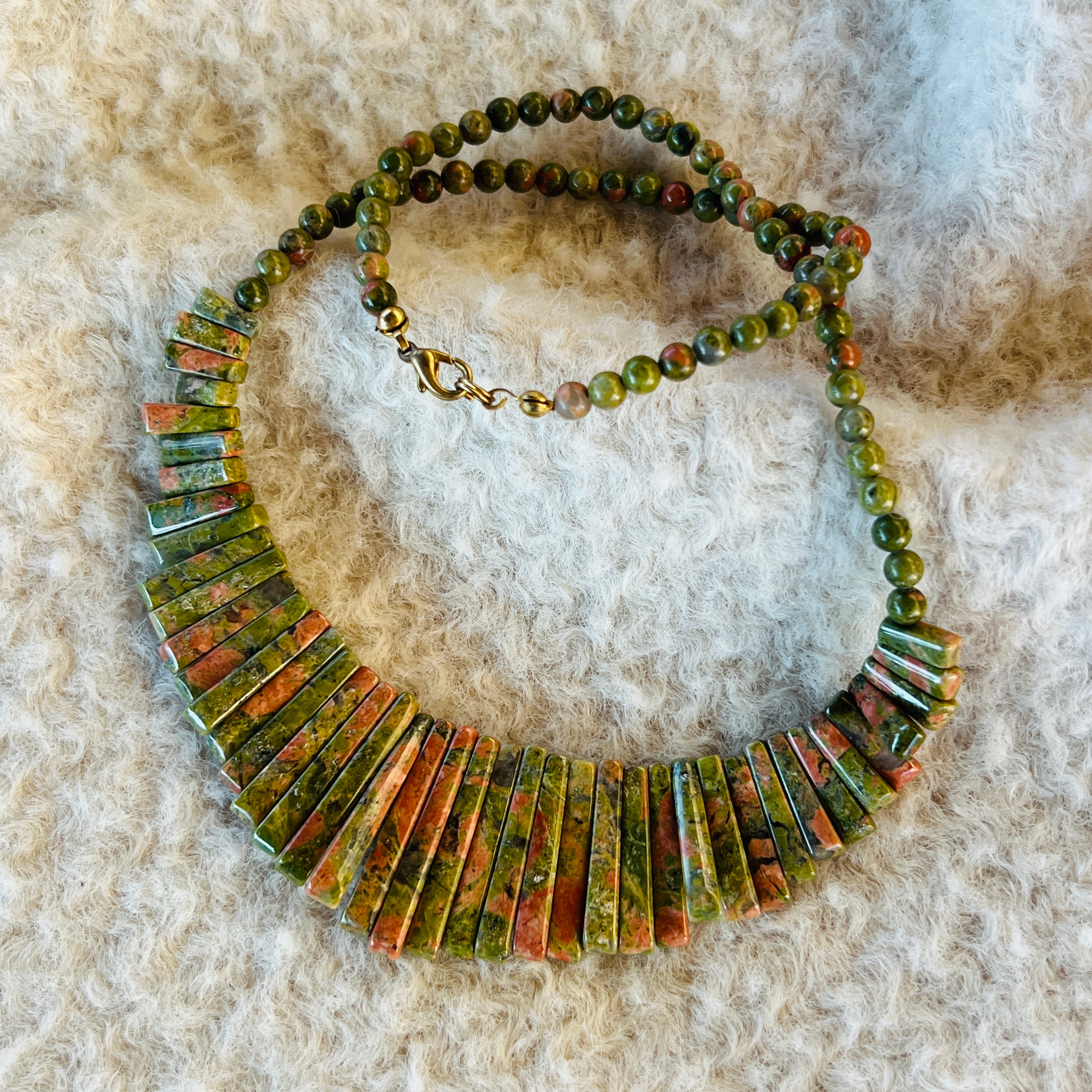 Unakit es una piedra semipreciosa compuesta de fespar, epidota, cuarzo, mica.