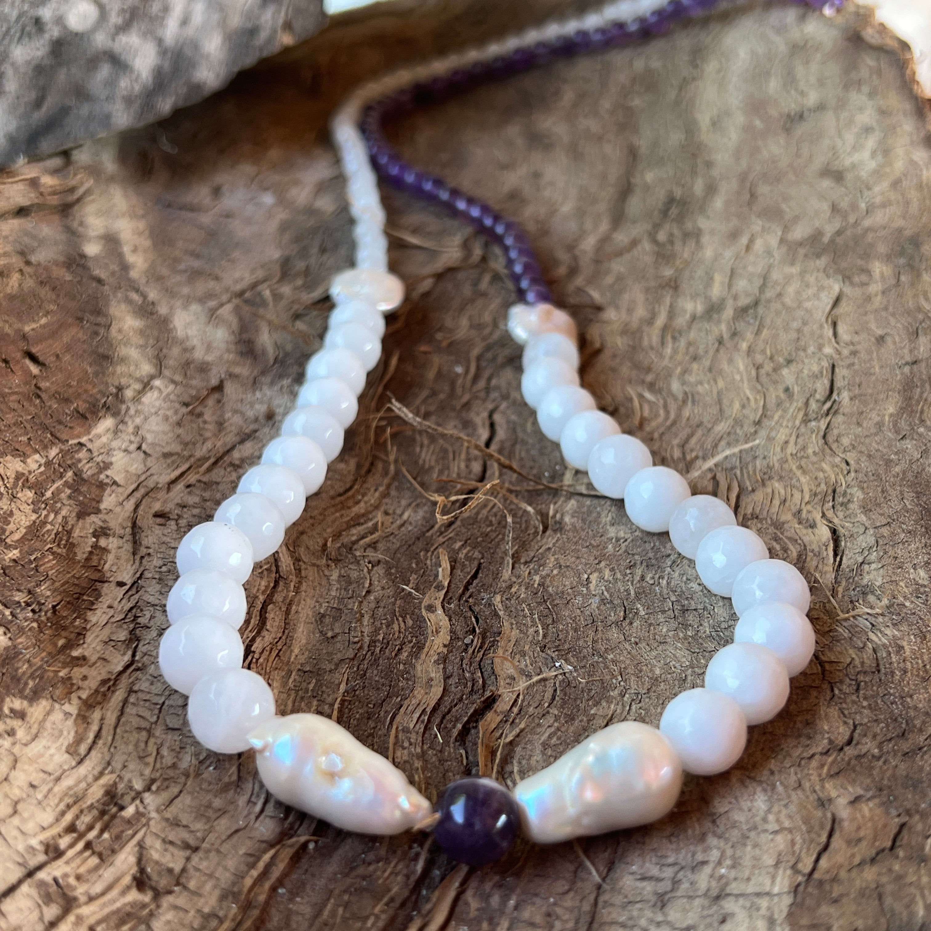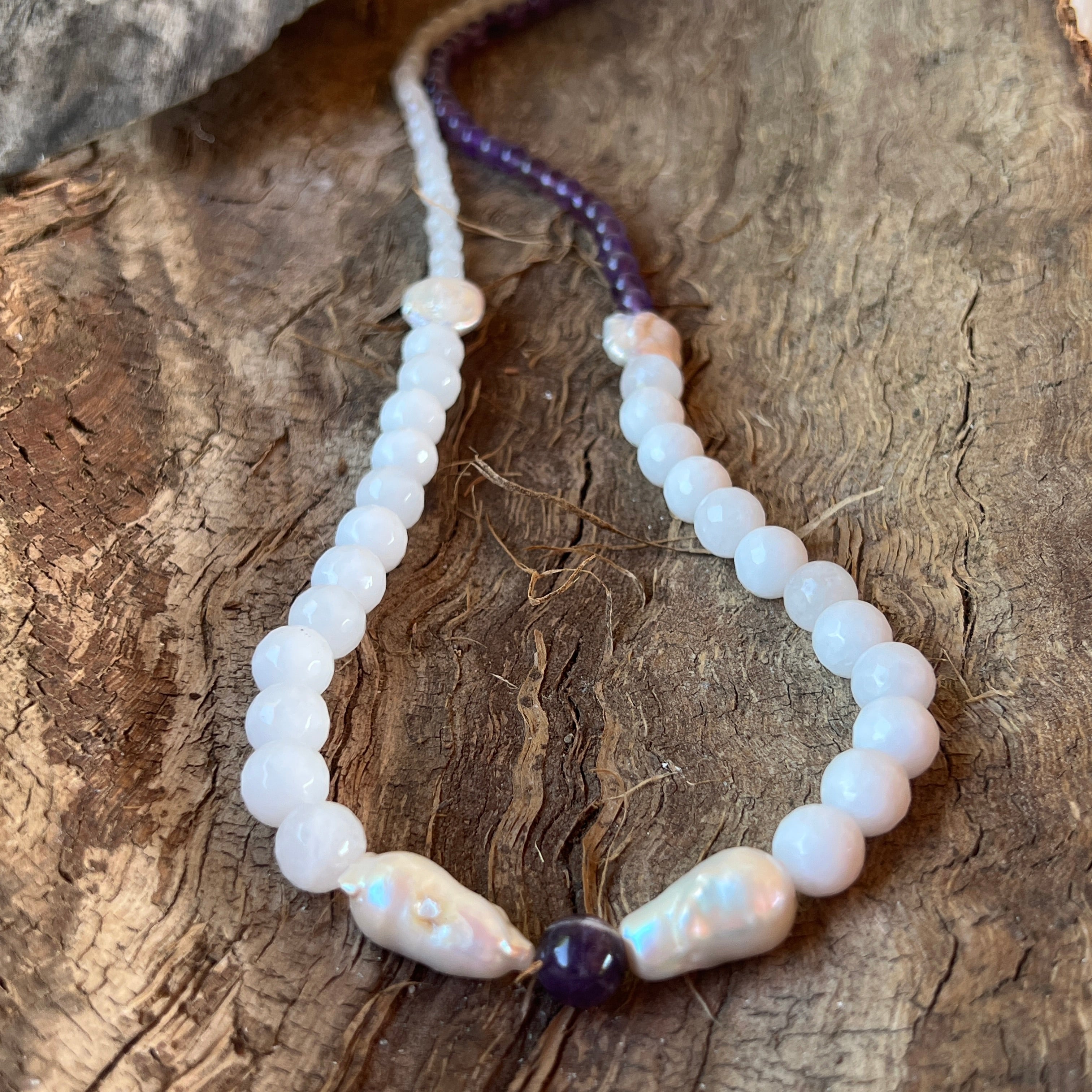 Descriere - Collar largo de amatista, jade y perlas de jade blanco, perlas Serenity#16