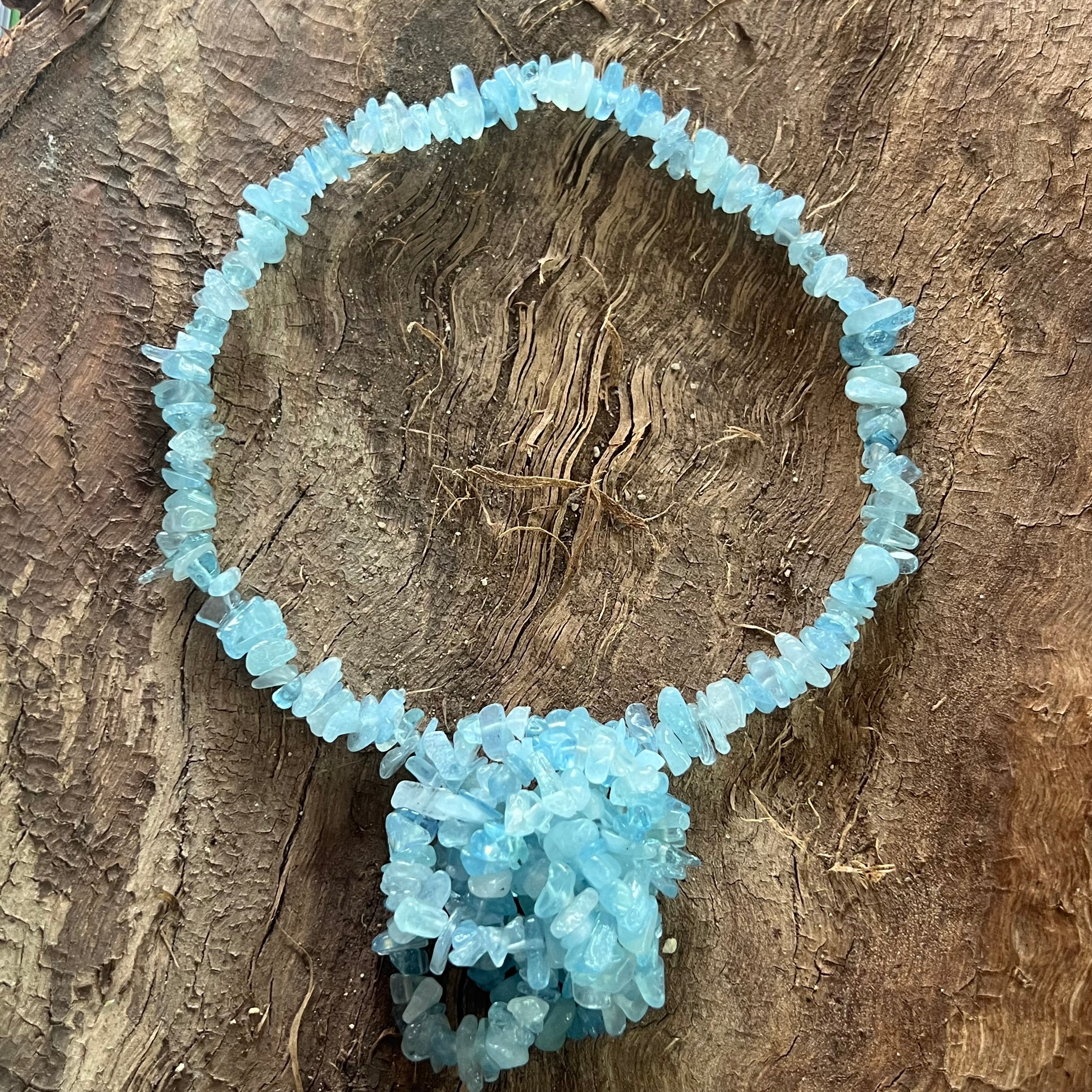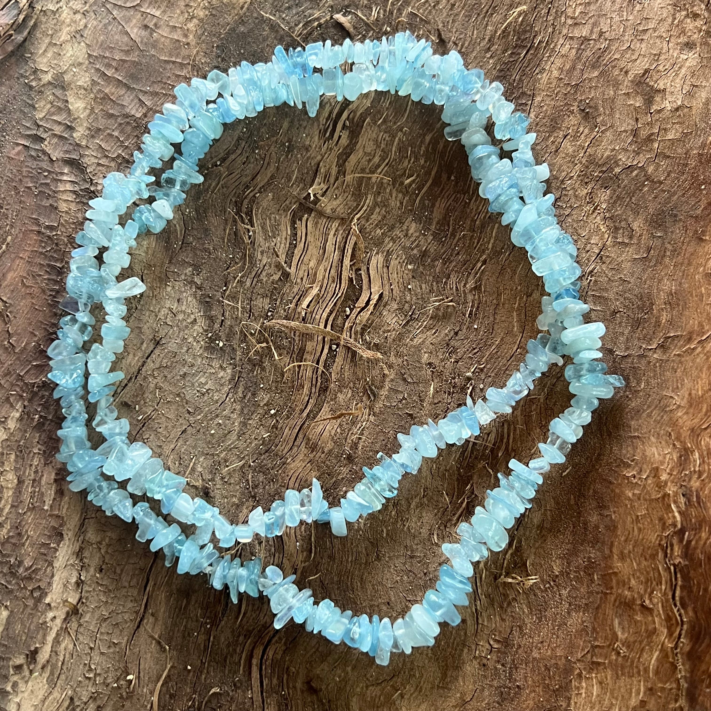 Collar largo de chips de aguamarina, tamaño aprox. 80 cm