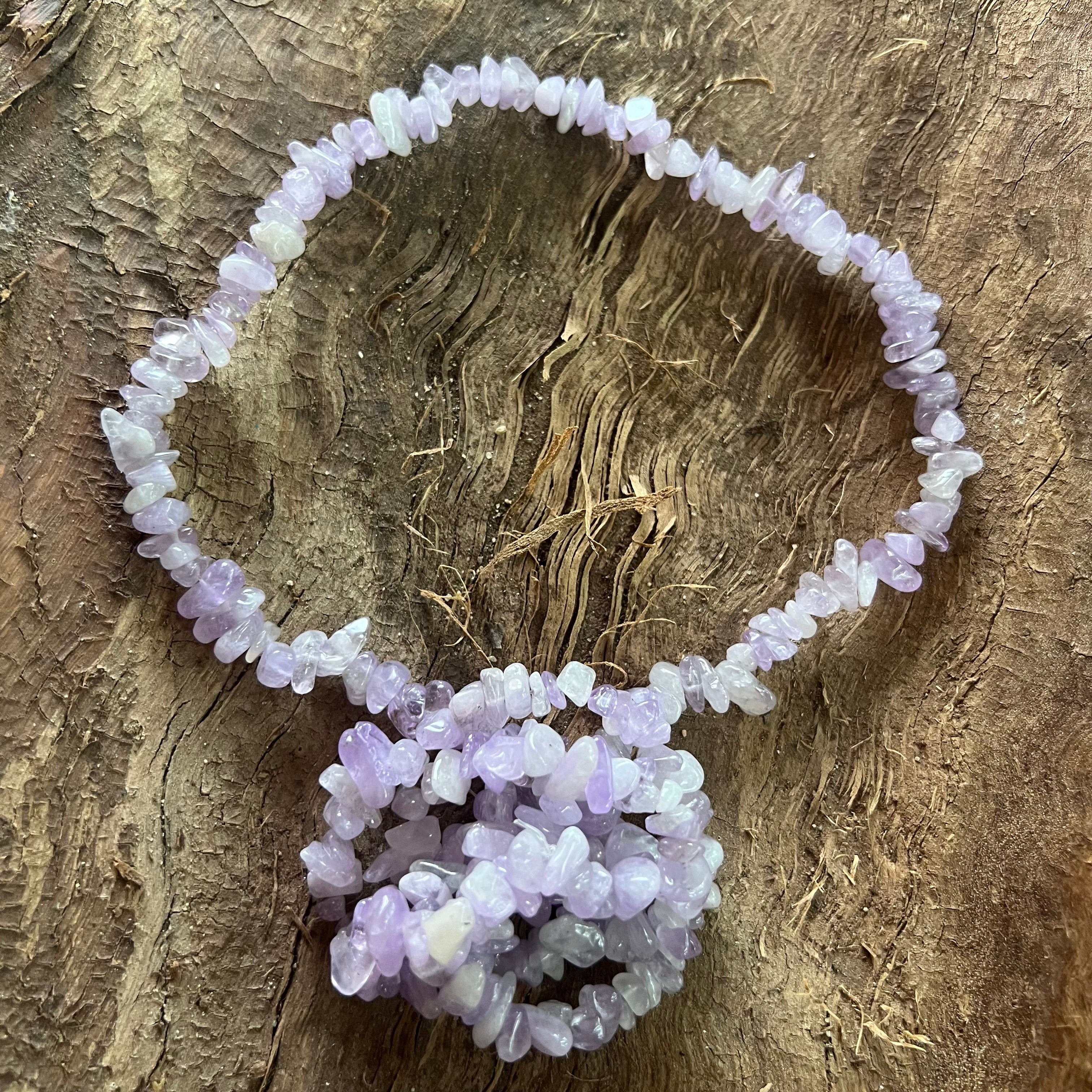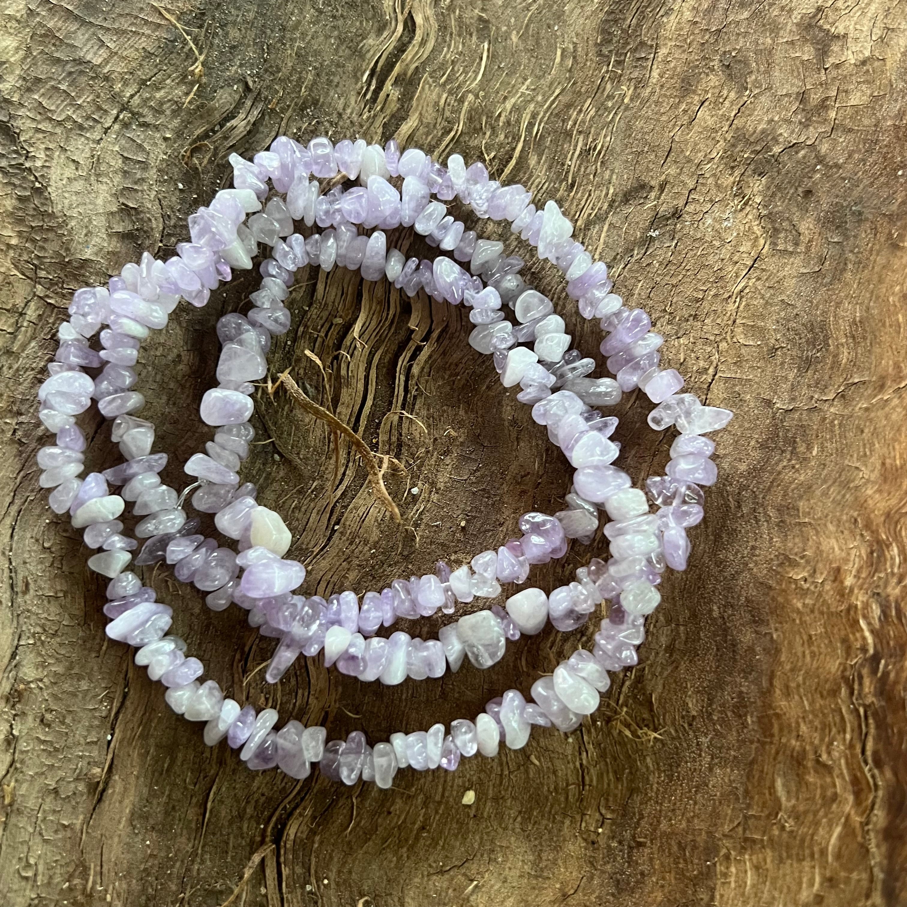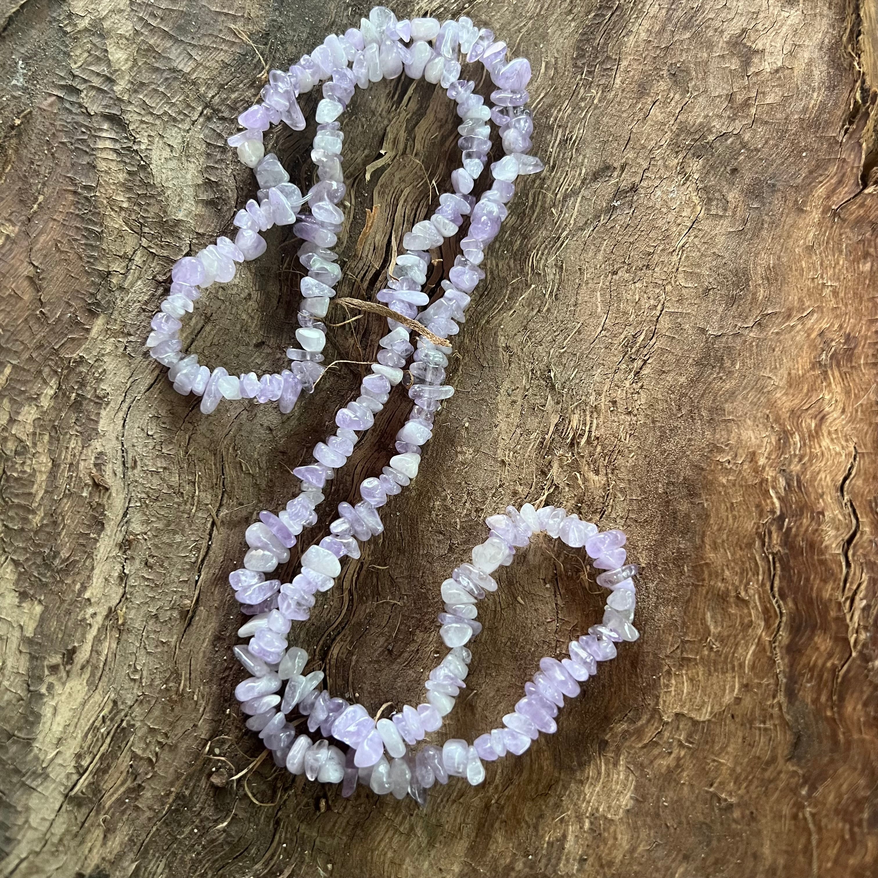 Collar largo de chips de amatista lavanda, tamaño aproximado 80 cm