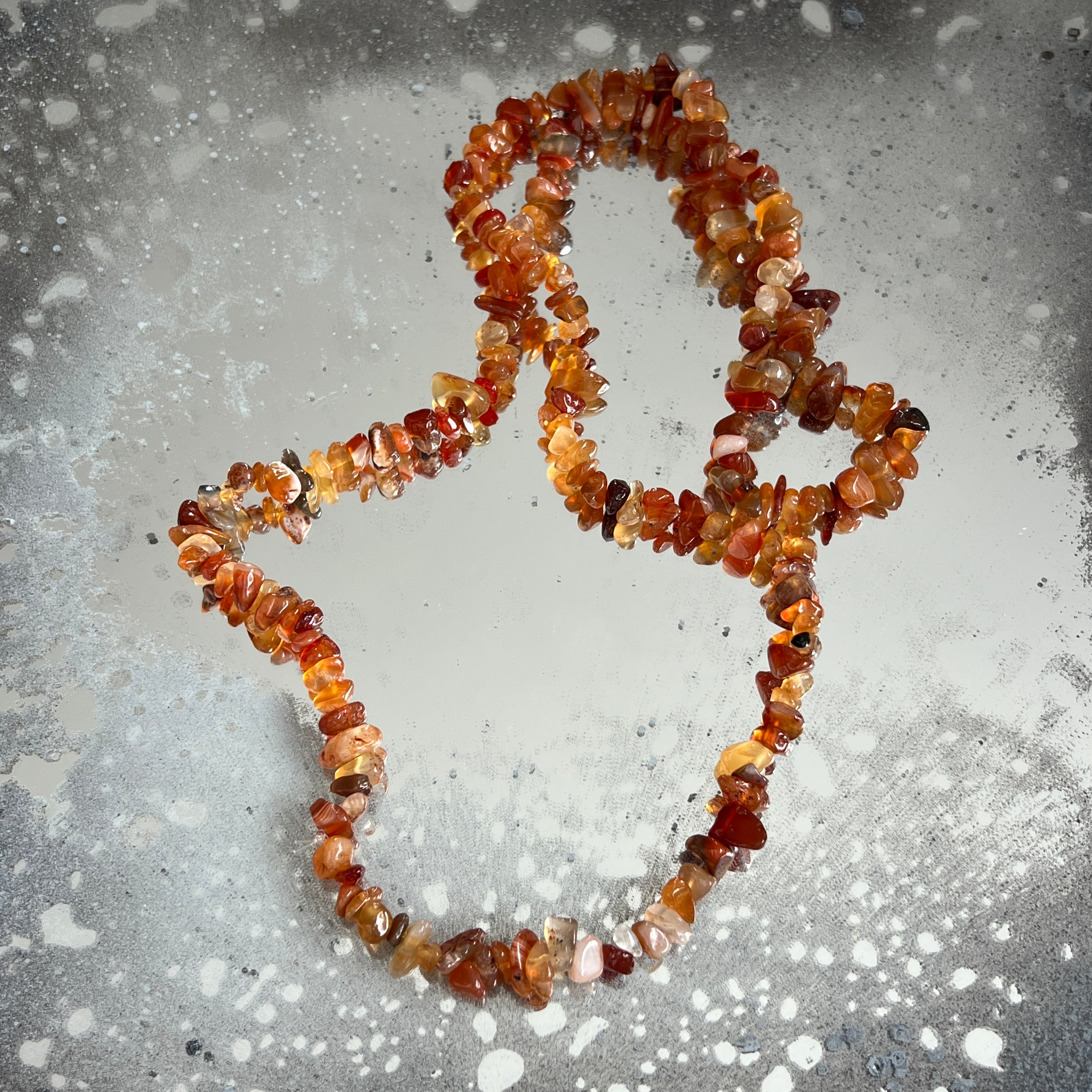 • Piedra: carneliano natural (chips irregulares, pulidos a mano)