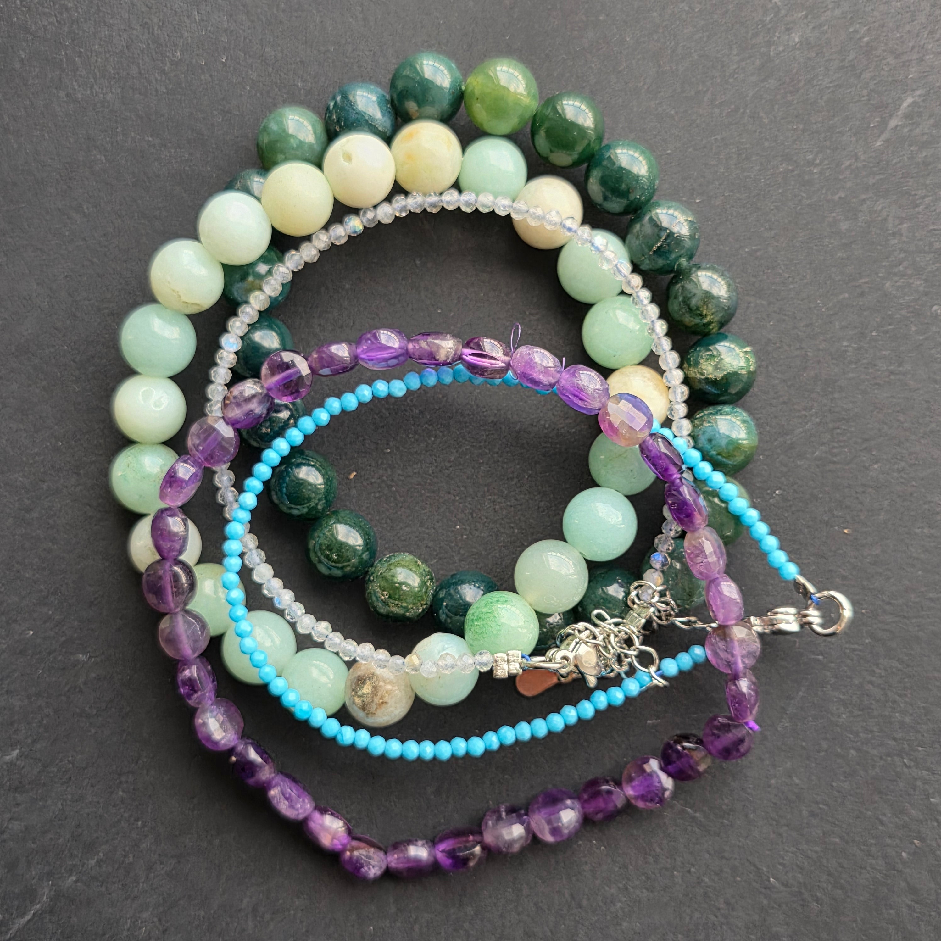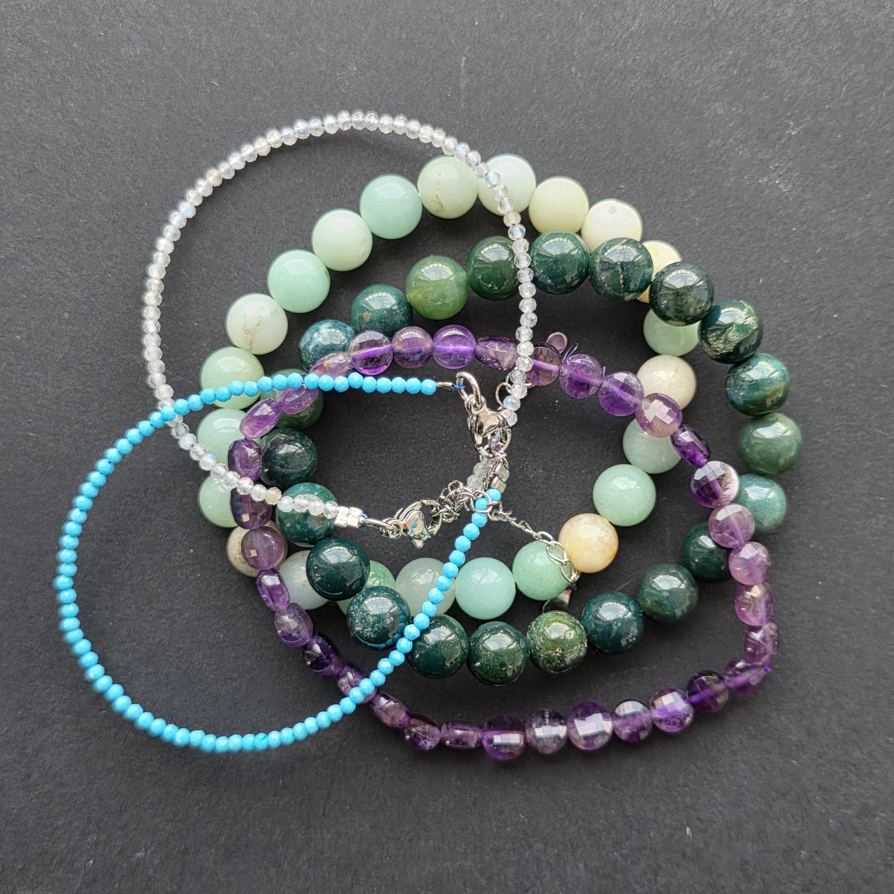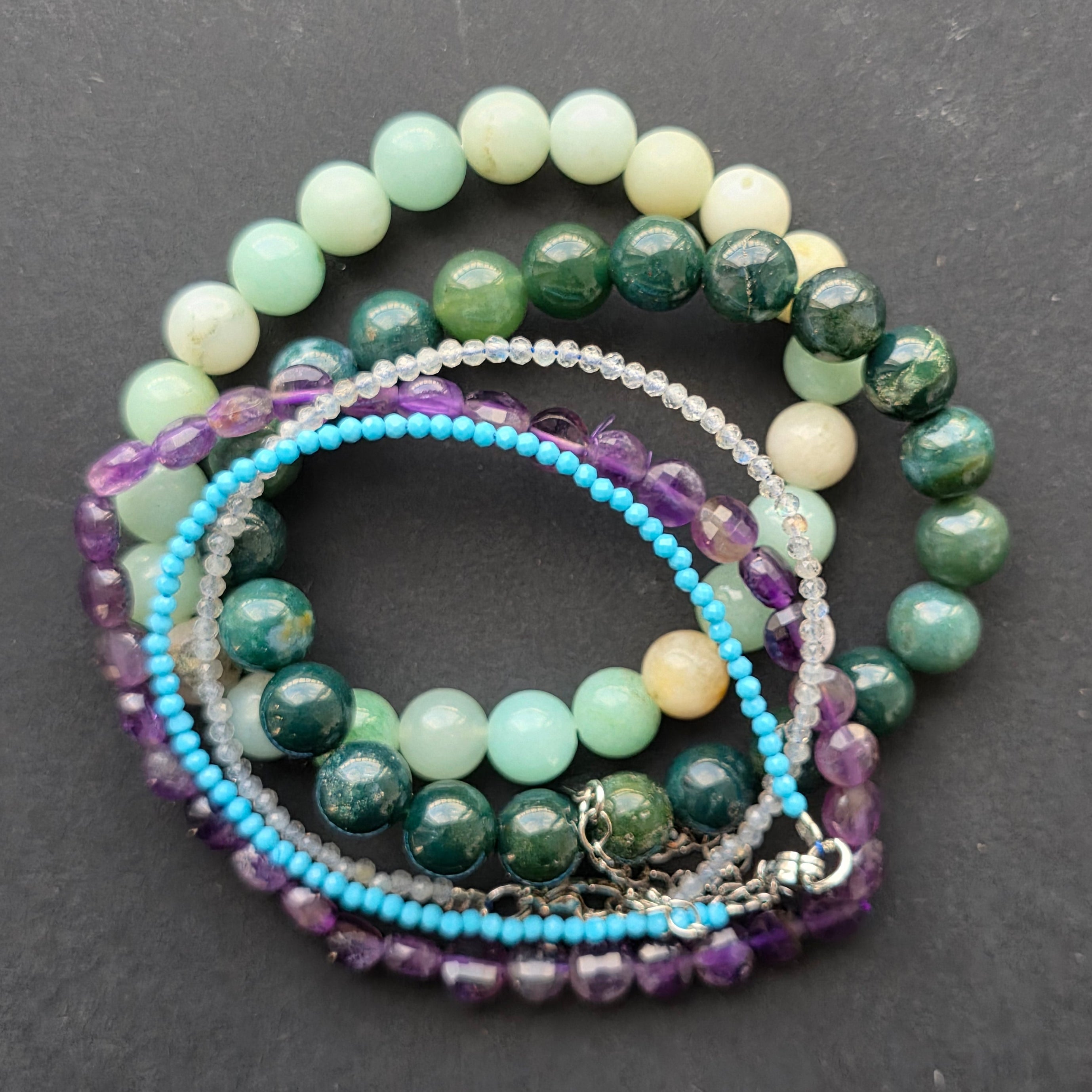 Este conjunto está creado para la mujer Acuario: un espíritu libre, innovador, visionario y siempre un paso por delante de su tiempo. Ella vive con la vibración de nuevas ideas, con la energía de grandes inspiraciones y con un profundo deseo de autenticidad. Las piedras de este conjunto están elegidas para deleitar su intuición, aumentar su originalidad y calmar su mente cuando las ideas se suceden demasiado rápido.