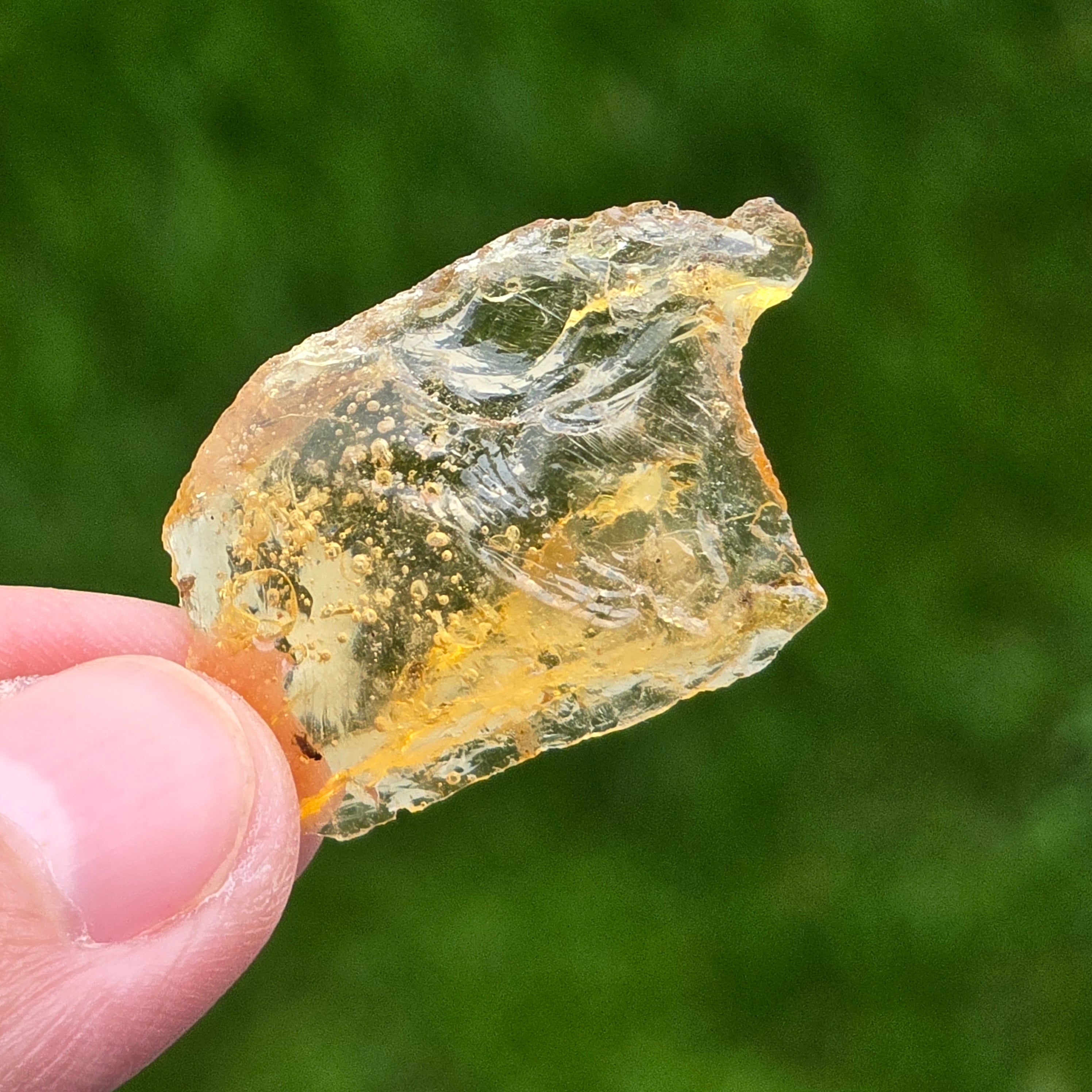 El copal, a menudo llamado también resina subfósil, es la forma temprana del ámbar, una resina natural que ha conservado la luz solar y la transparencia antes de entrar en la verdadera fosilización geológica. Proveniente de árboles tropicales, este material delicado guarda en sí la memoria de algunos siglos o milenios, capturando fragmentos de la vida del bosque tal como existieron en su momento. Es más ligero, más cálido al tacto y más brillante que el ámbar maduro, y su aspecto suave lo hace ideal para coleccionistas, creadores de joyas y amantes de piezas naturales con historia. En el copal, el tiempo aún no es piedra: aún es luz, aún es movimiento, aún es promesa.