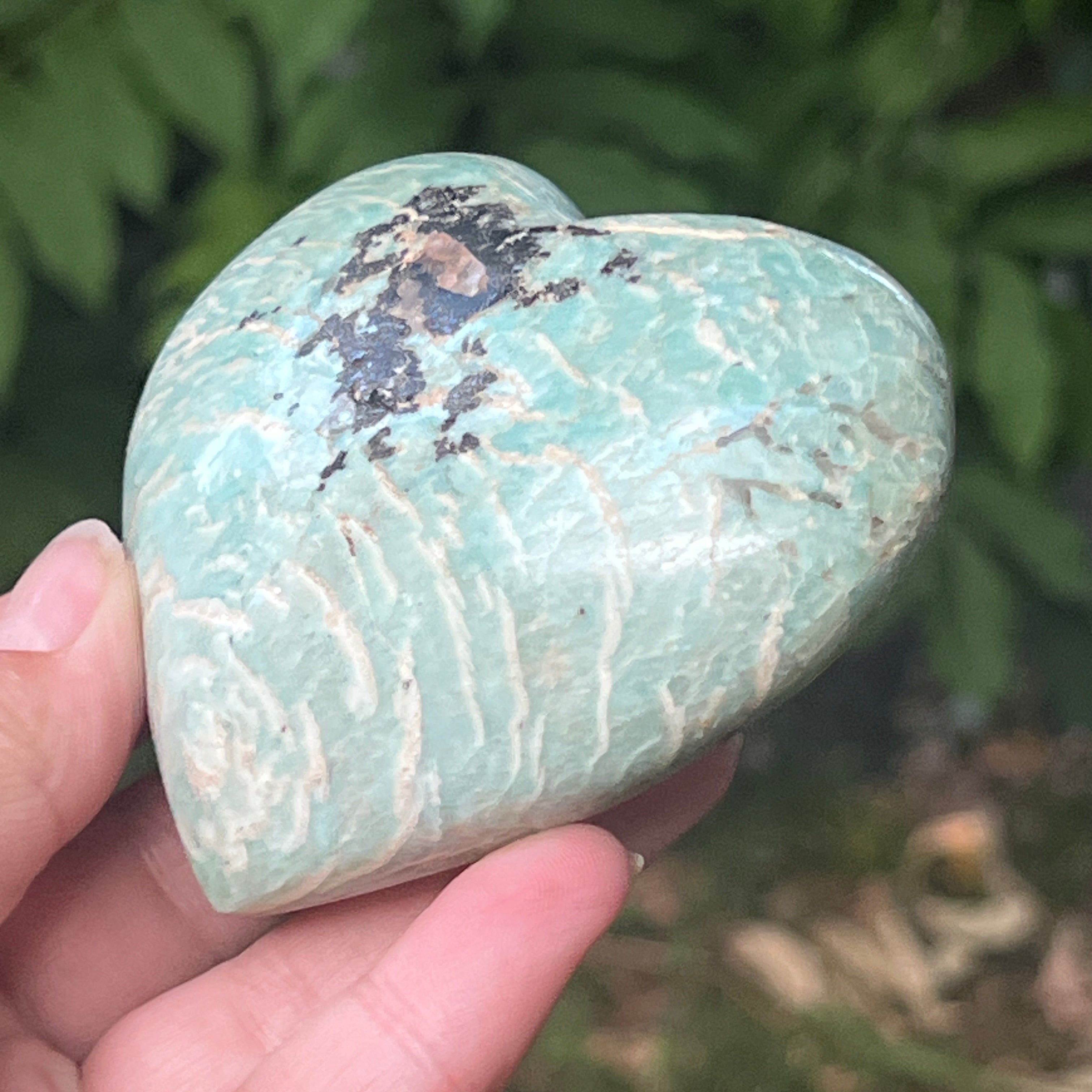 A la amazonita también se le llama portadora de la paz. Se considera una piedra del equilibrio, que puede ayudar a calmar el nerviosismo, las emociones, favorece la expresión auténtica y mejora las relaciones con quienes te rodean.