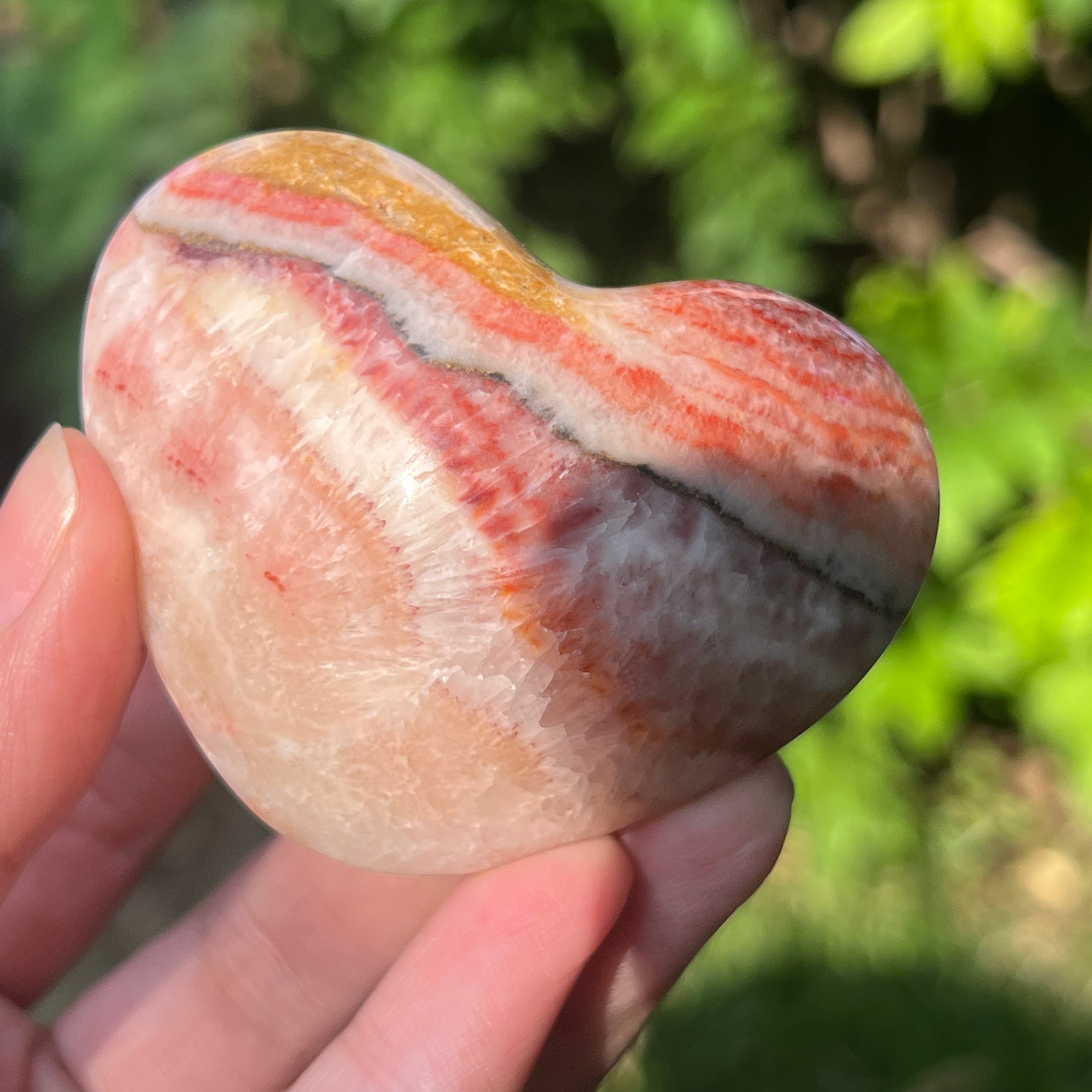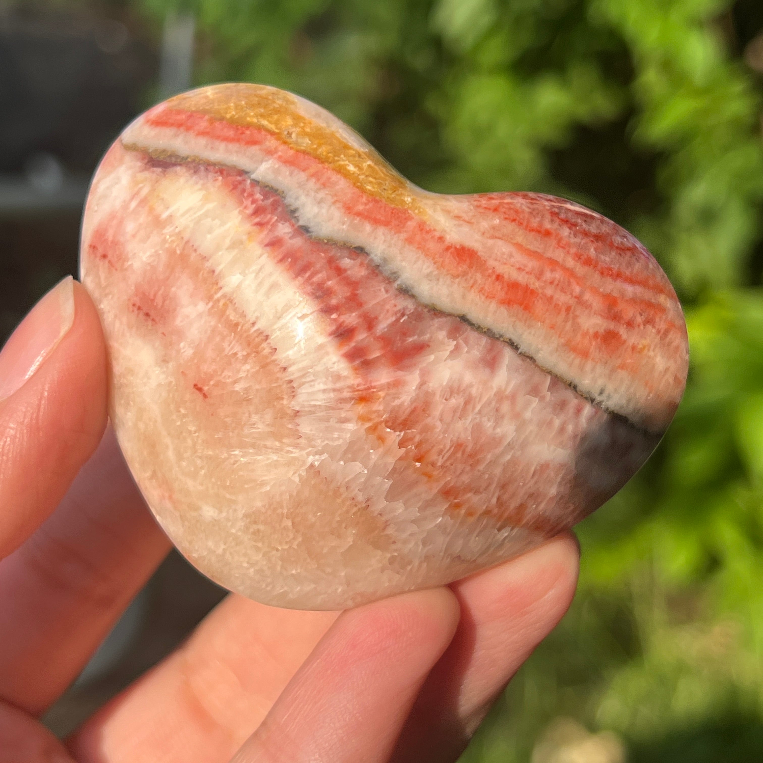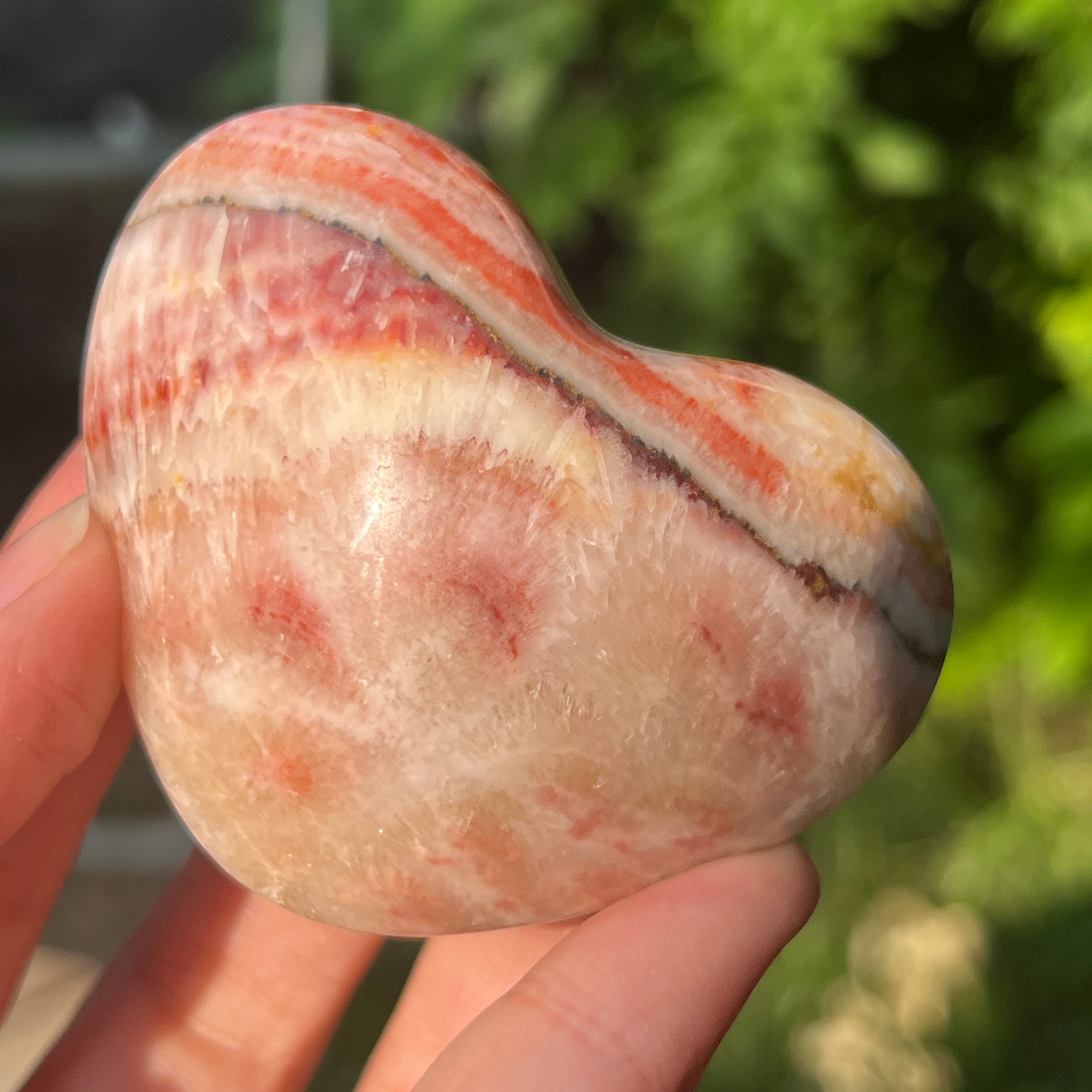 Corazón de calcita rosa con vetas m6