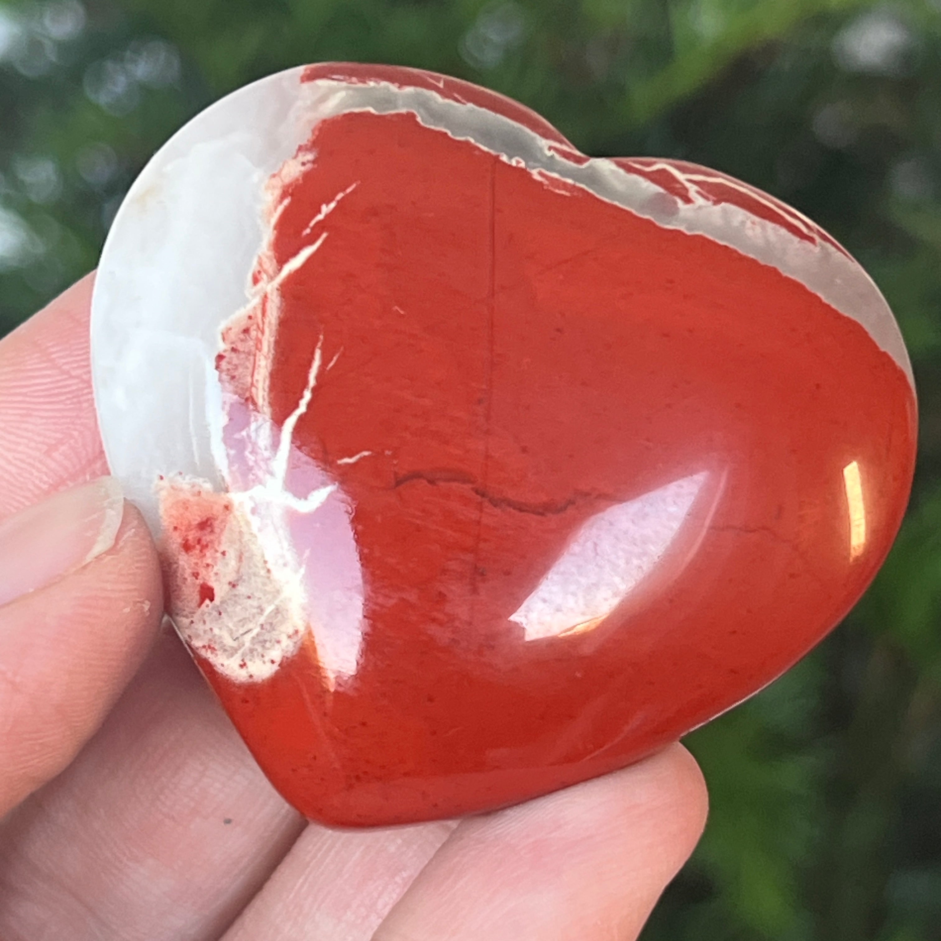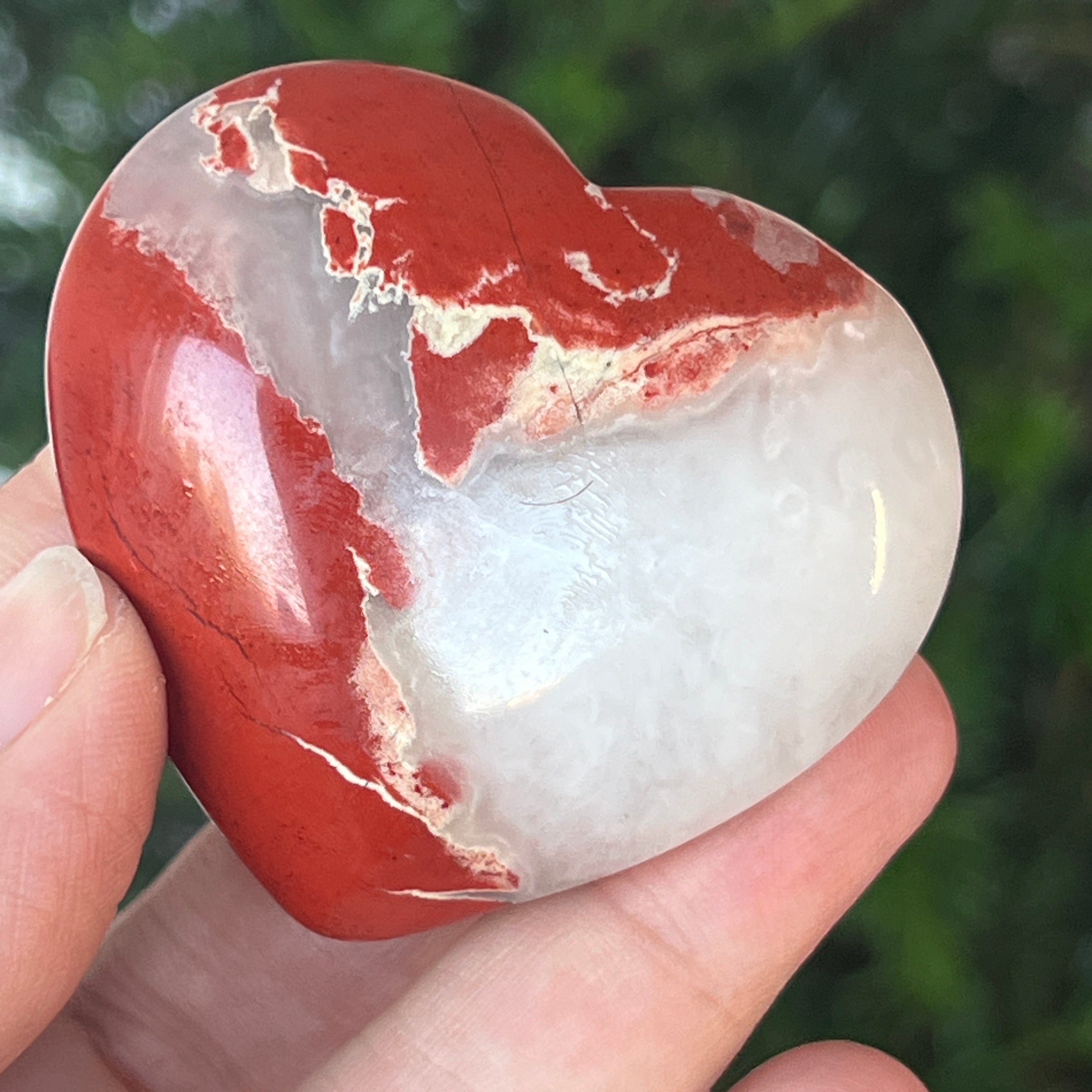 Agrega este corazón de Jaspe Rojo natural a tu colección y deja que te recuerde, día tras día, la fuerza vital que fluye dentro de ti, la misma energía primordial que pulsa en el centro de la Tierra.
