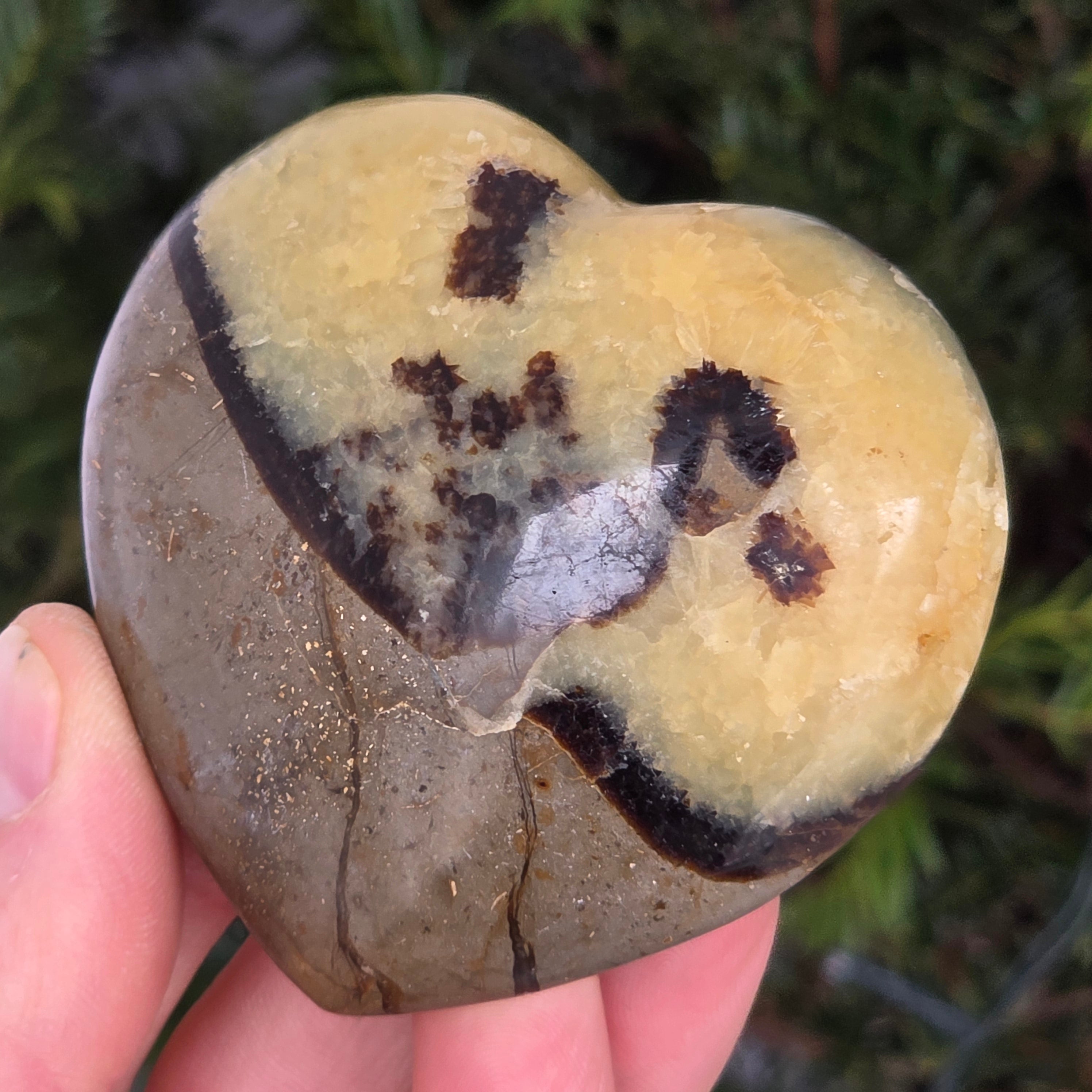Septaria está formada por calcita, limonita, yeso y barita, minerales que forman un juego único en esta piedra y le confieren un aspecto especial.