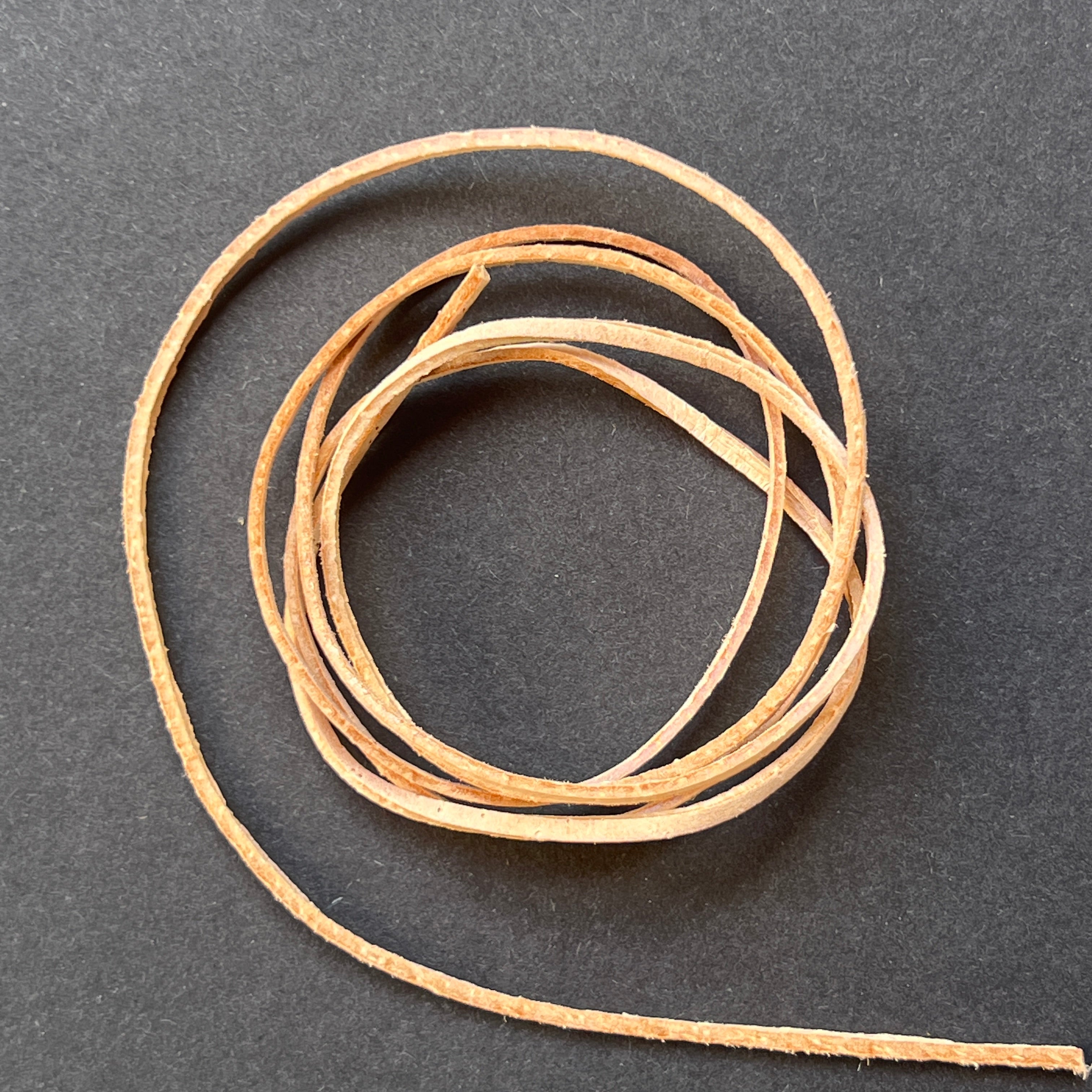 Cordón de cuero crema, tamaño aprox. 90 cm, grosor 1.6*0.8 mm.