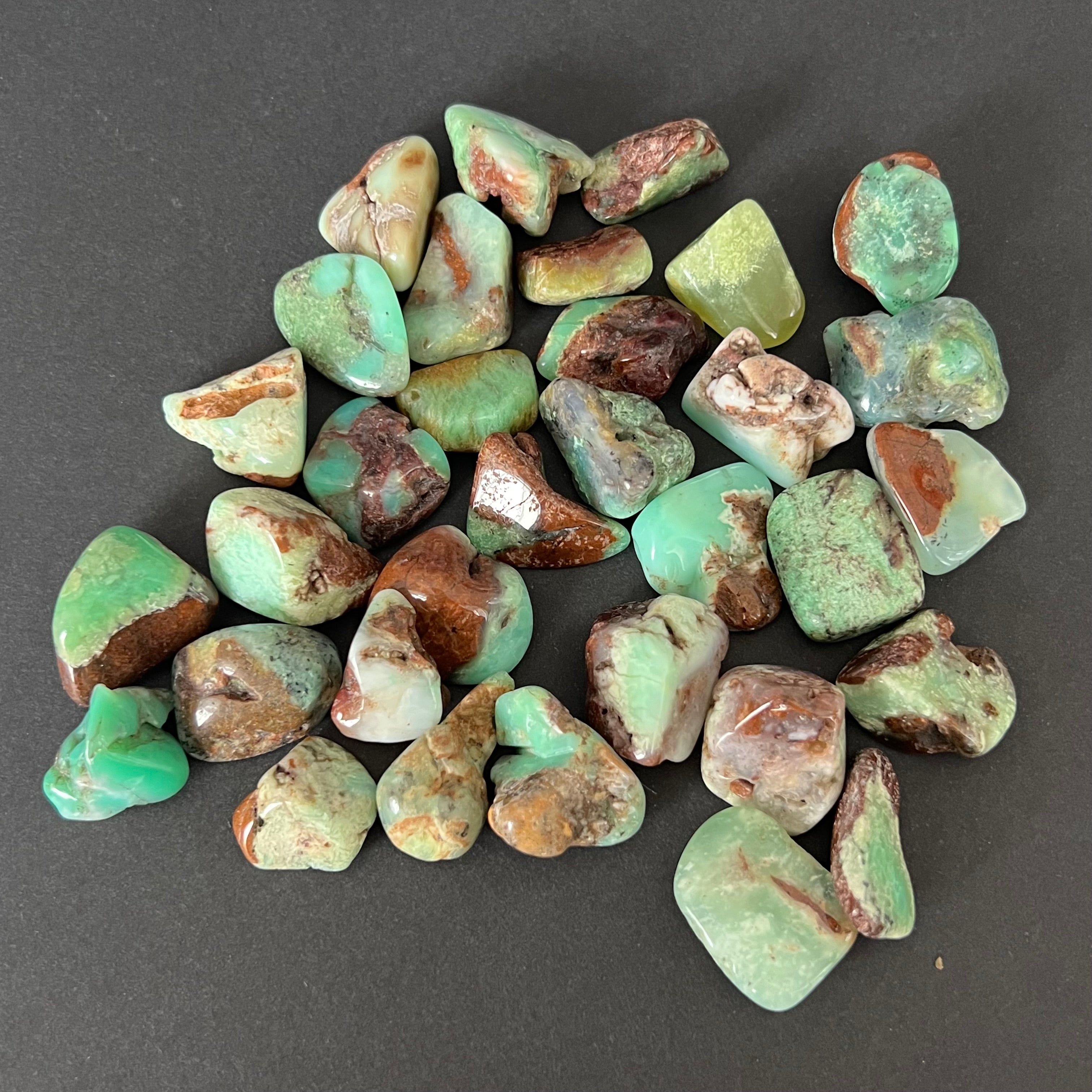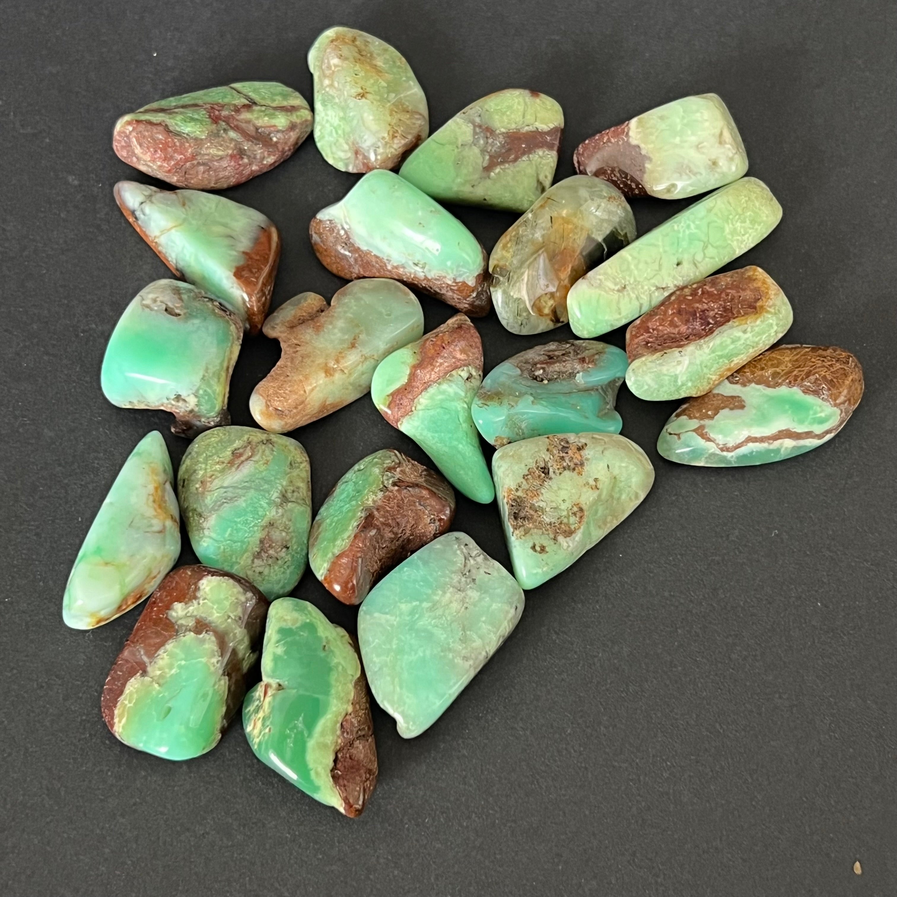 Crisoprasa Australia piedra rodado M, con tamaños entre 2 - 3,5 cm. El precio varía según el tamaño de la piedra, por favor seleccione el tamaño deseado. El precio se refiere a una unidad.