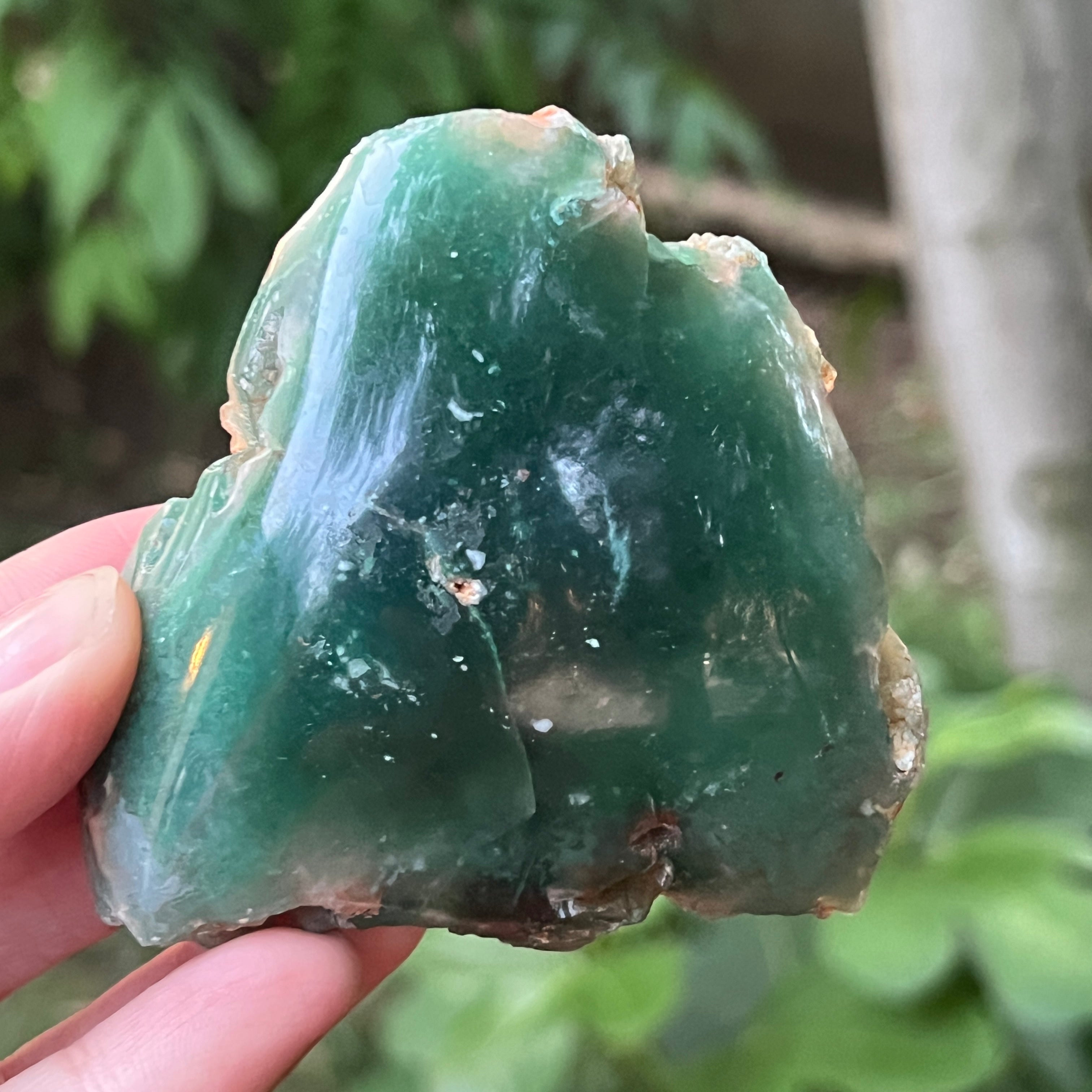 La crisoprasa es una piedra preciosa verde translúcida que pertenece a la familia de la calcedonia.