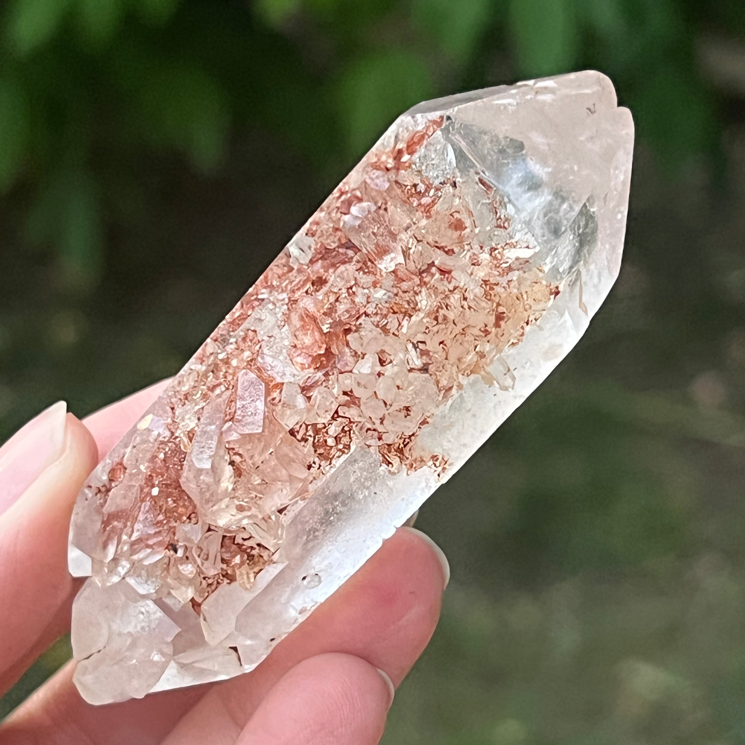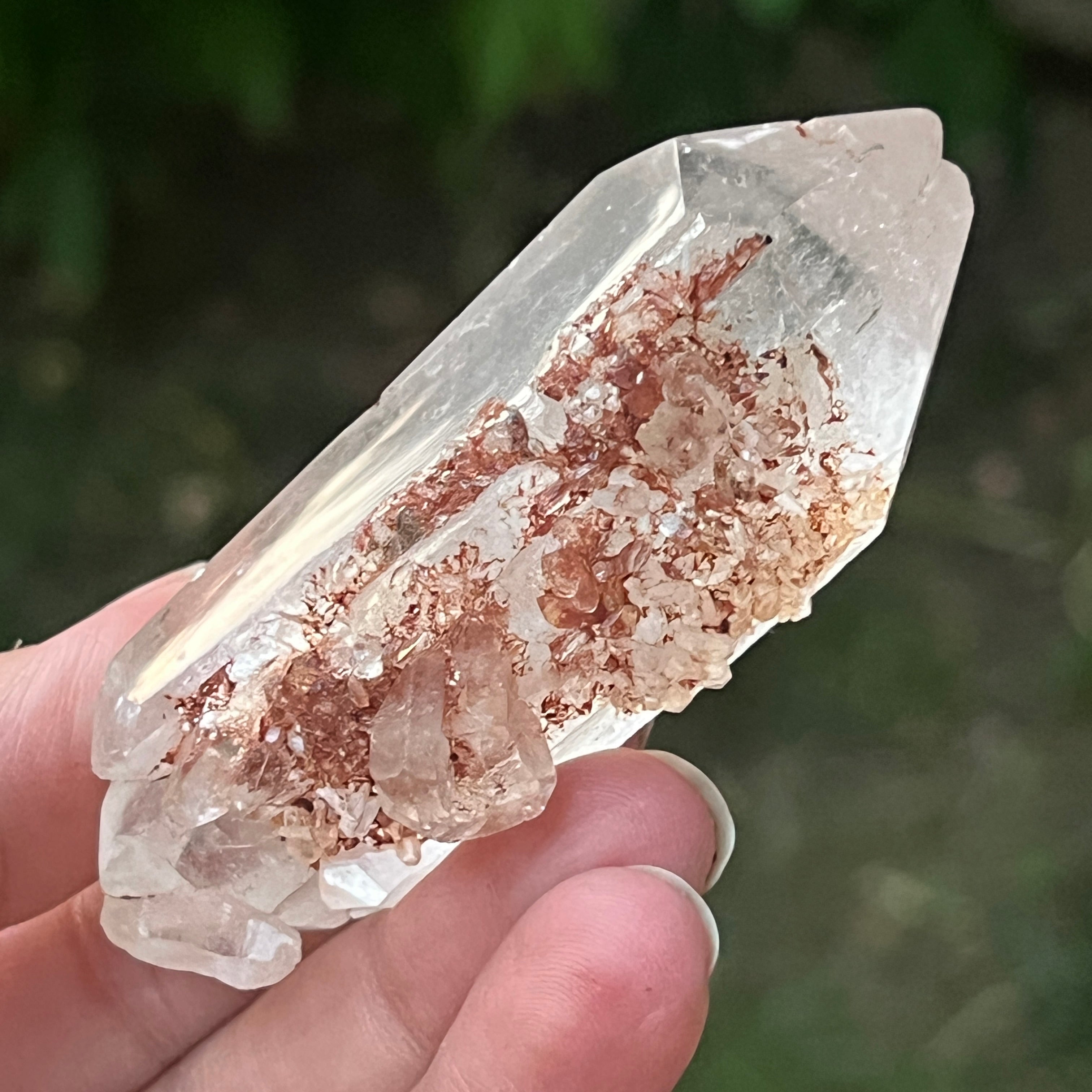 Cristal de cuarzo con inclusiones de goethita de color marrón anaranjado | modelo 9