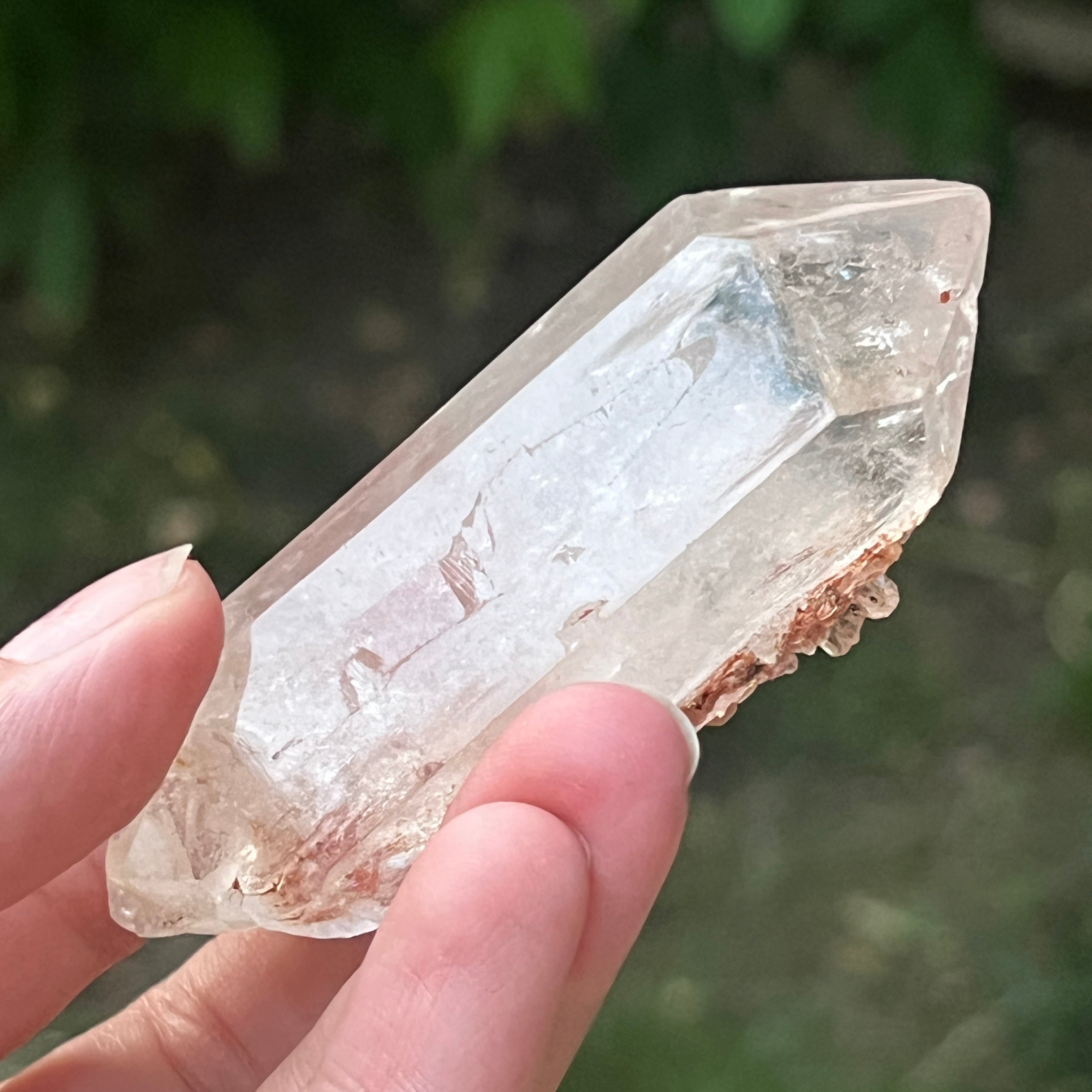 Reseñas - Cristal de cuarzo con inclusiones de goethita de color marrón anaranjado | modelo 9