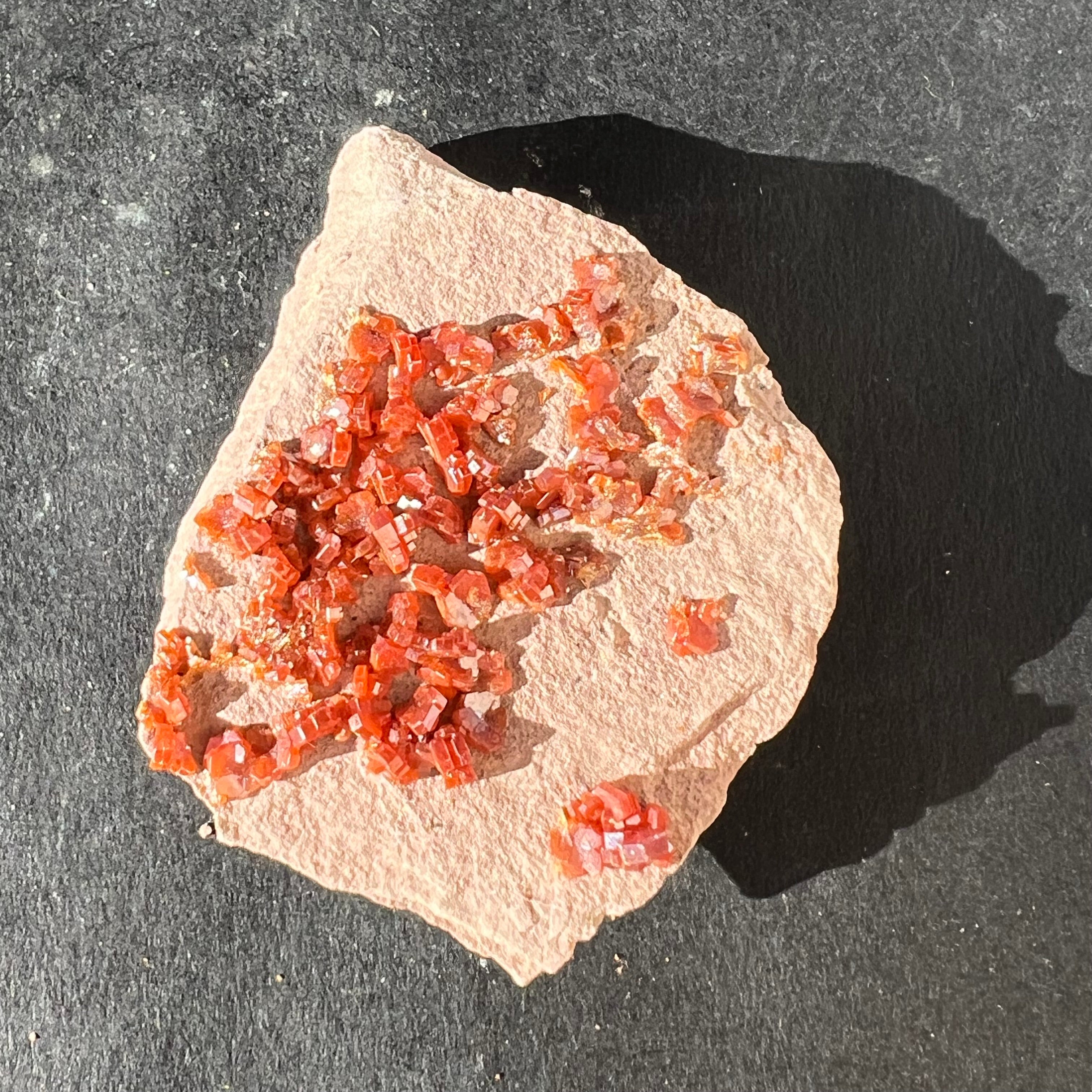 Descriere - Cristal de racimo de vanadinita de Marruecos, modelo 2