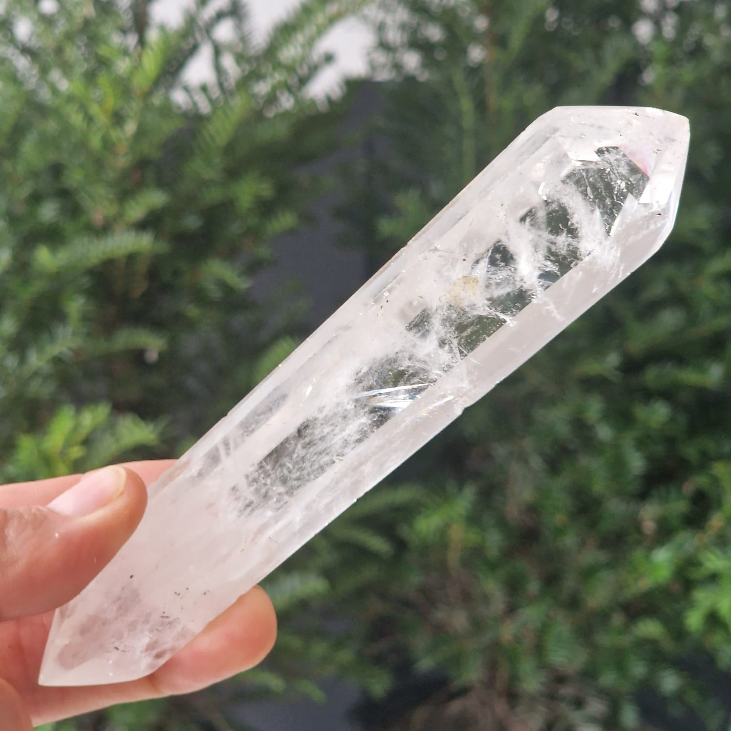 Cristal de roca de cuarzo incoloro de doble punta | Modelo ICY7