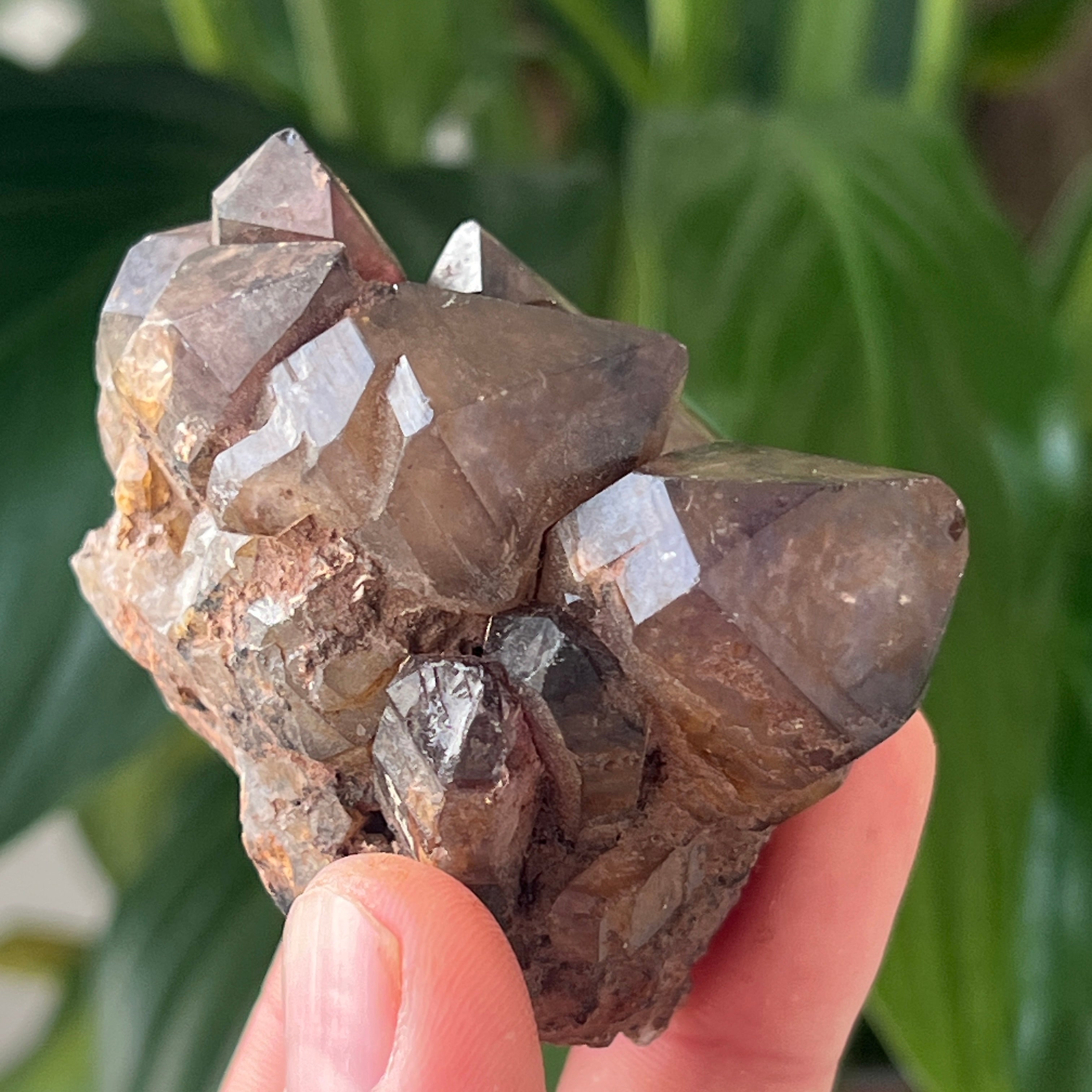 El cuarzo ahumado de esta zona es especialmente apreciado por su claridad natural, los tonos cálidos de marrón translúcido hasta intenso, y las formas perfectamente desarrolladas en sistema trigonal. Algunos cristales presentan terminaciones dobles, formas de cetro o inclusiones fascinantes, desde vapores hidrotermales y burbujas móviles hasta restos de hematita o rutilo. La presencia natural de radiaciones provenientes de las rocas circundantes durante la formación del cristal le otorga ese tono ahumado auténtico, sin tratamientos térmicos ni intervenciones humanas.