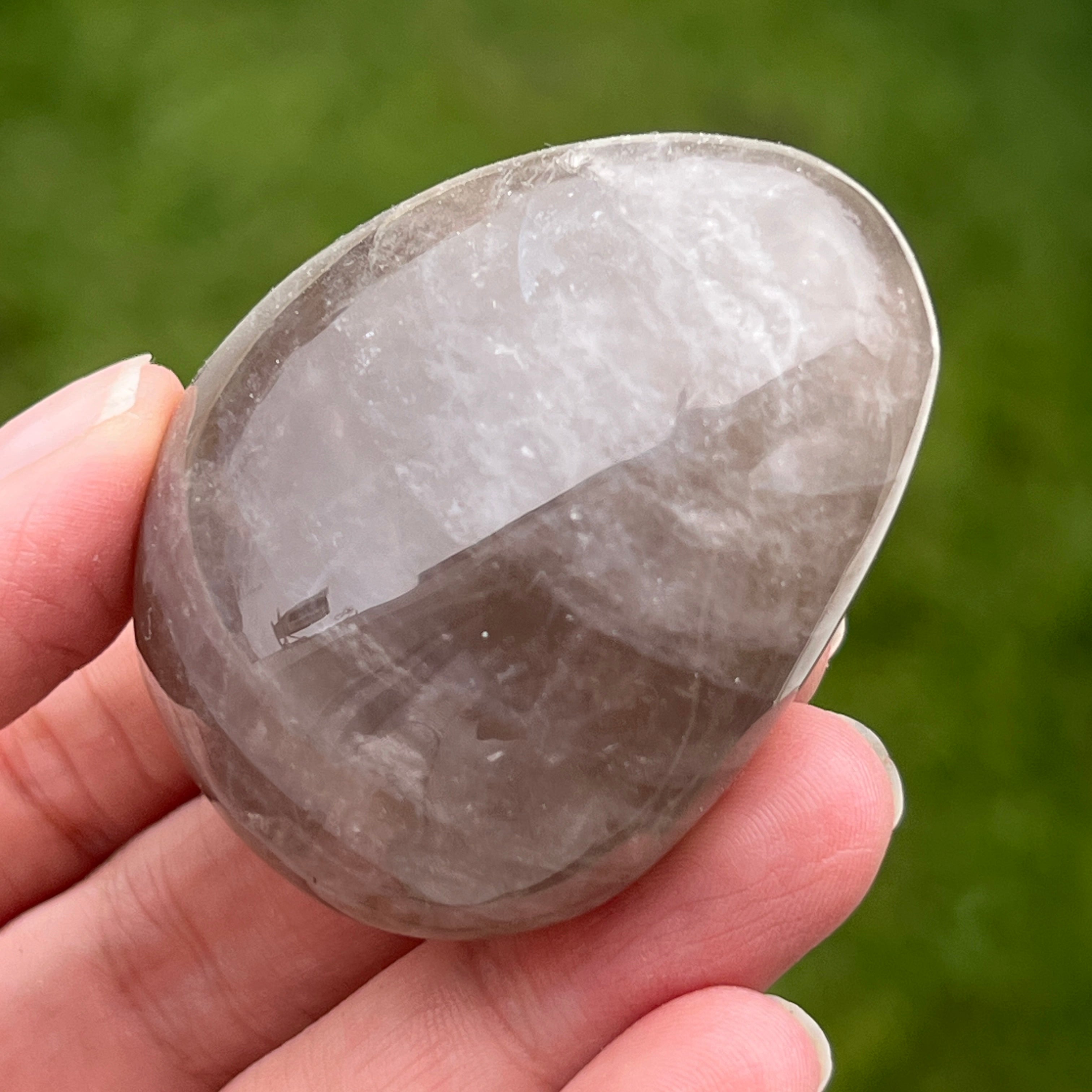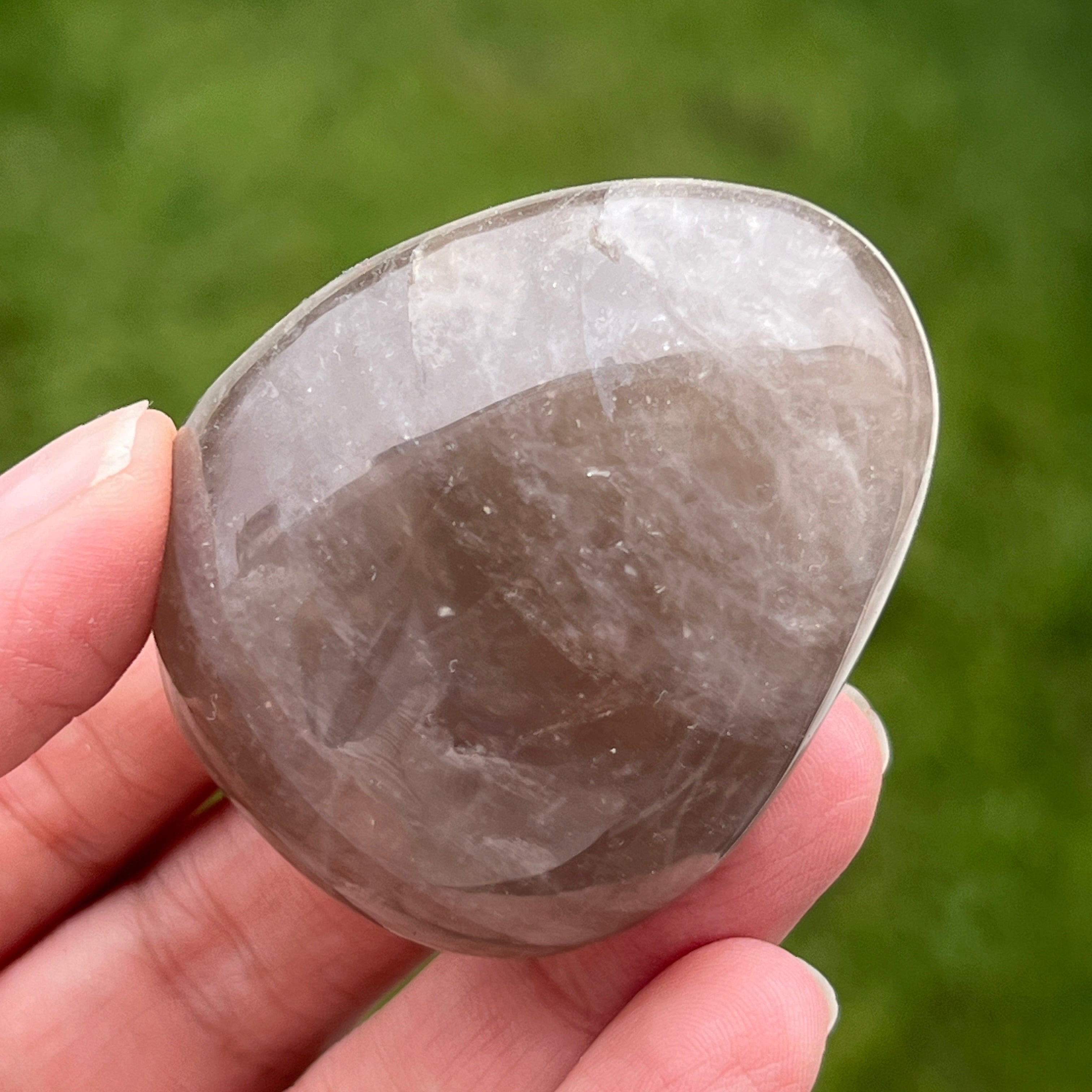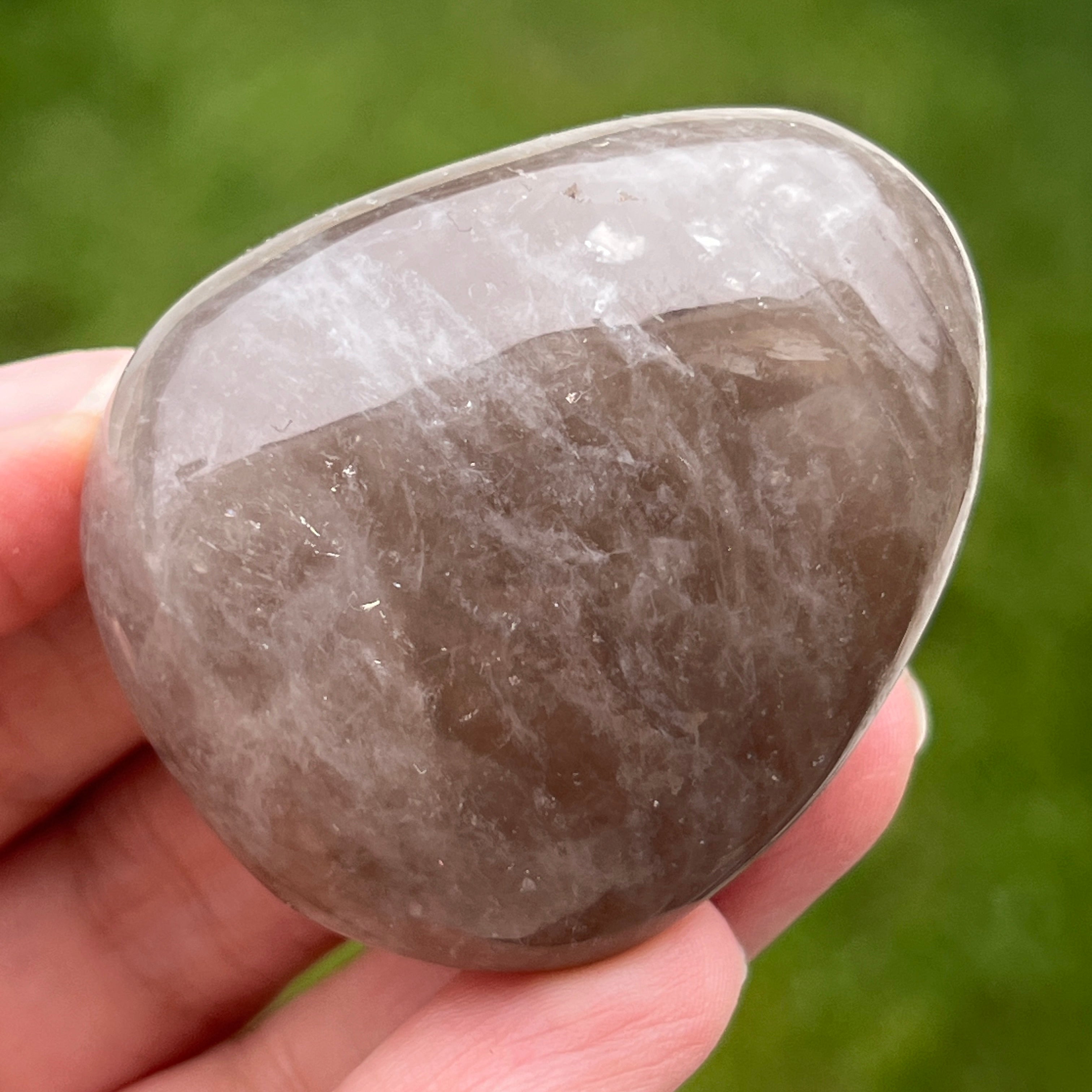 Cuidadosamente moldeada para encajar perfectamente en la palma de tu mano, esta palmstone de cuarzo ahumado no es solo una piedra: es un punto de apoyo en medio del ajetreo de la vida cotidiana. Con sus tonos terrosos, desde el marrón translúcido hasta los más profundos, el cuarzo ahumado lleva consigo la tranquilidad de las rocas antiguas y la paciencia de las montañas.