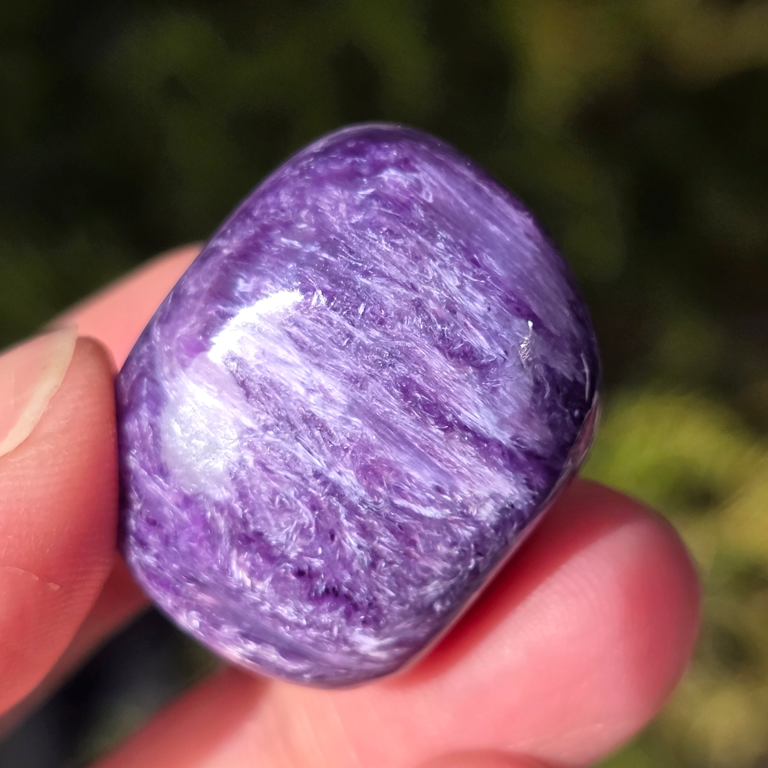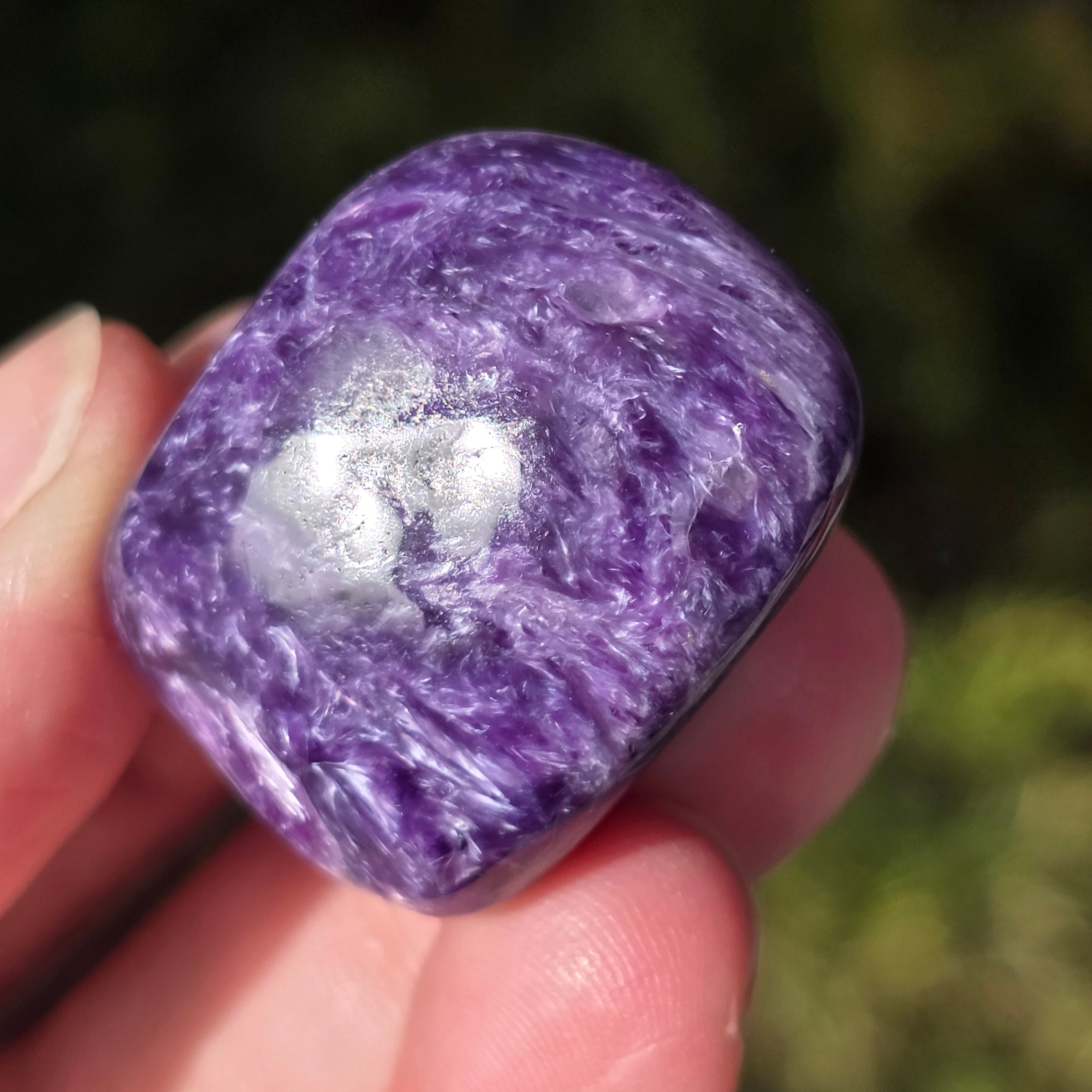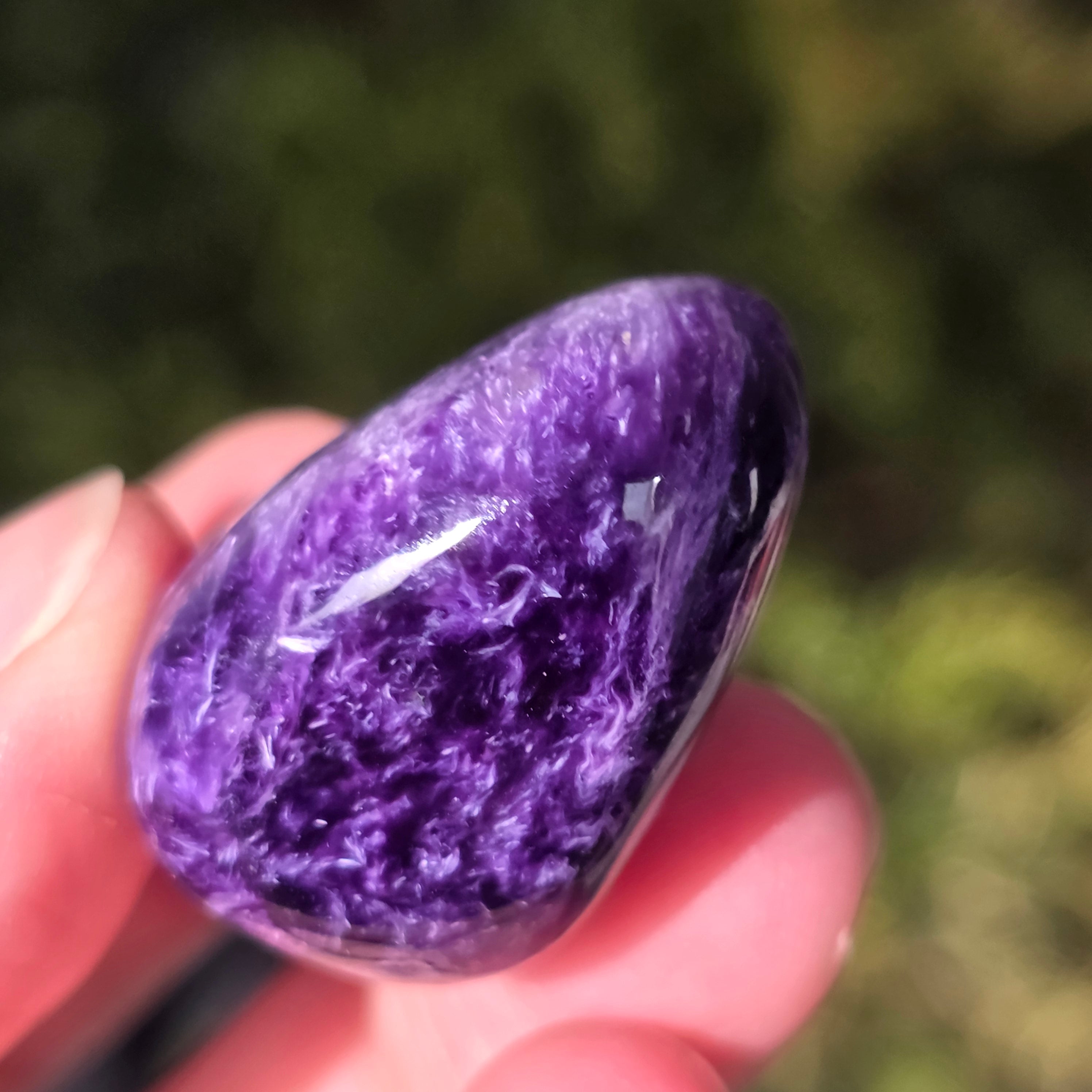 La charoita se asocia con la curación emocional y espiritual, calmando la mente y equilibrando la energía. Se cree que esta piedra tiene la capacidad de promover la introspección y de aumentar la intuición.