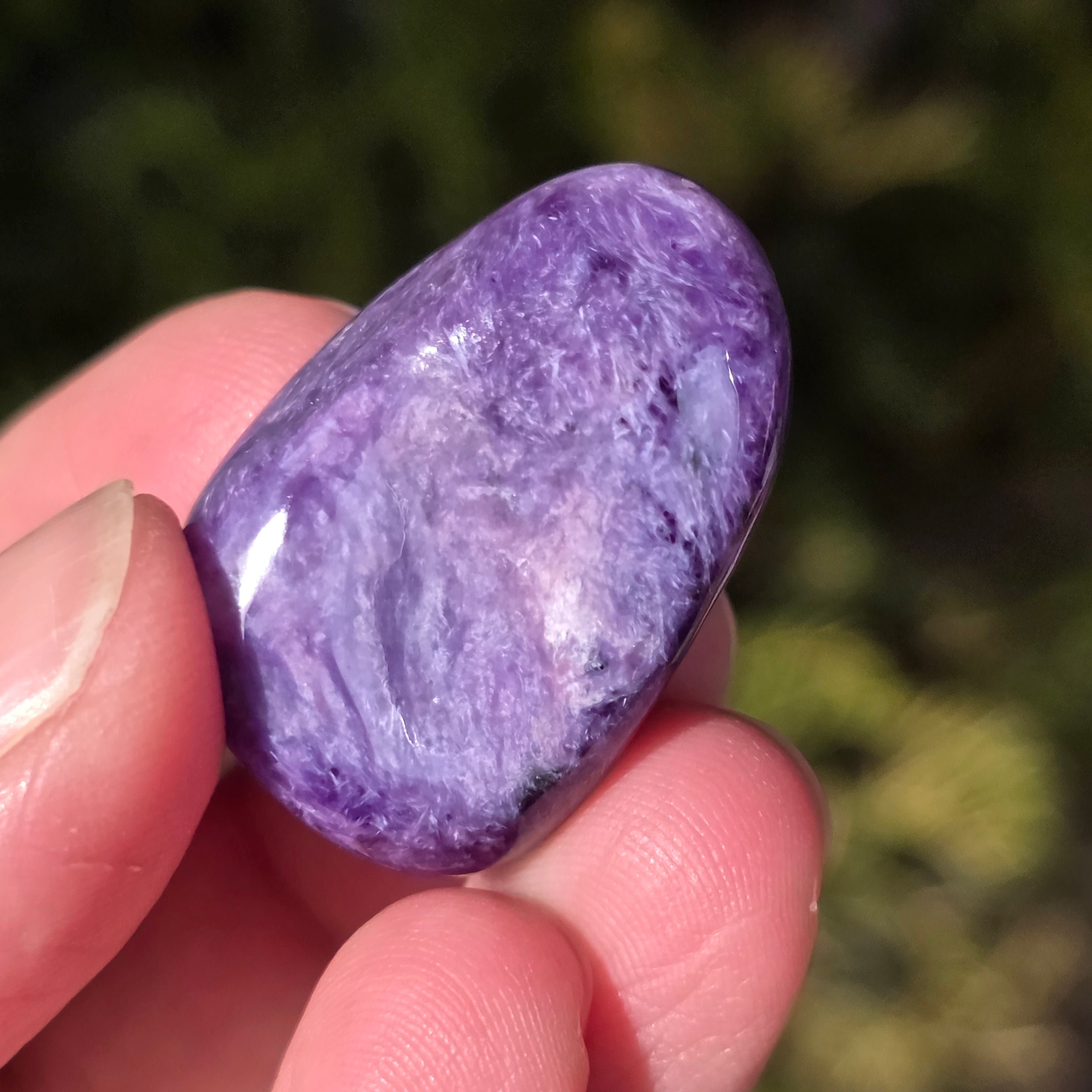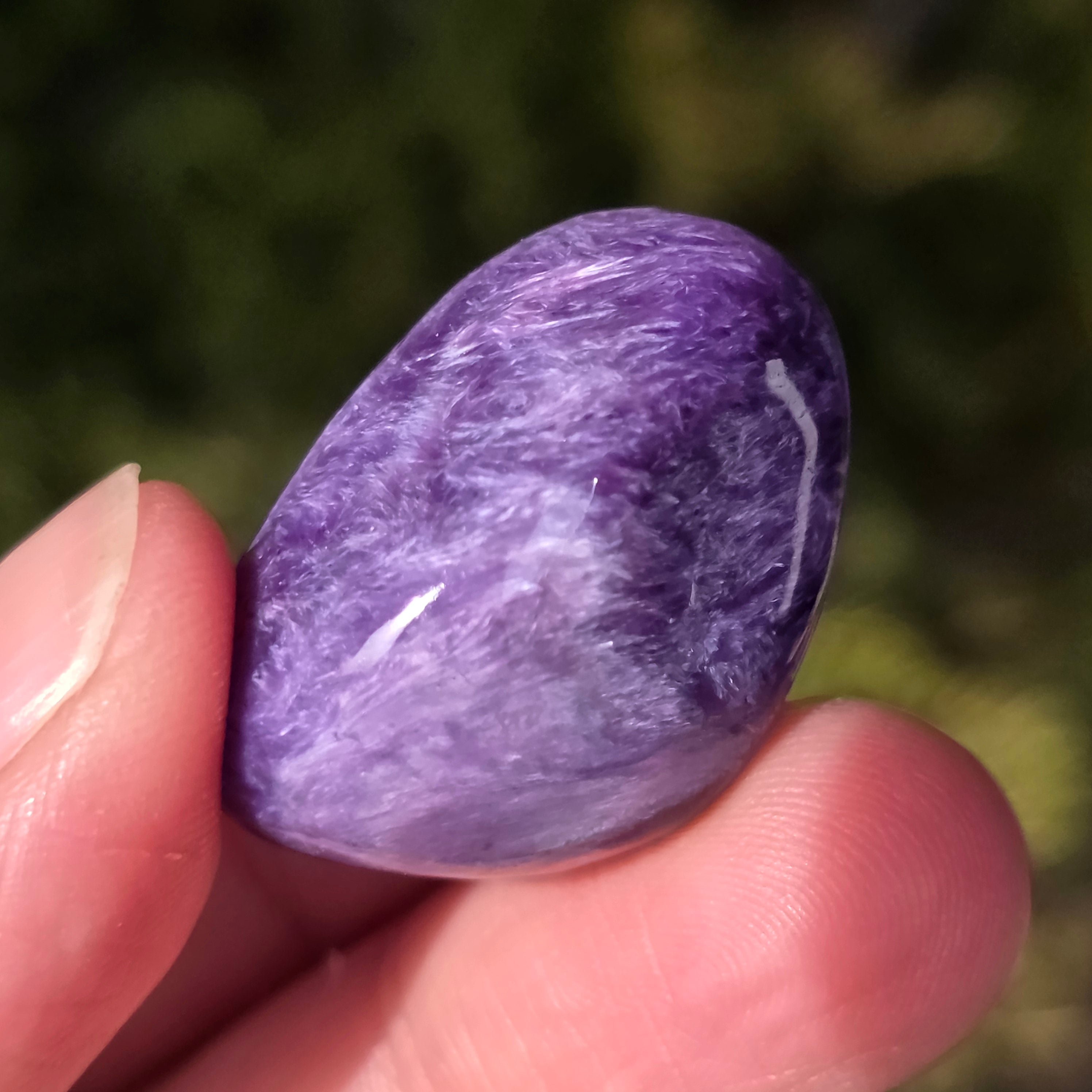 La charoita se asocia con la curación emocional y espiritual, la calma mental y el equilibrio de la energía. Se cree que esta piedra tiene la capacidad de promover la introspección y aumentar la intuición.