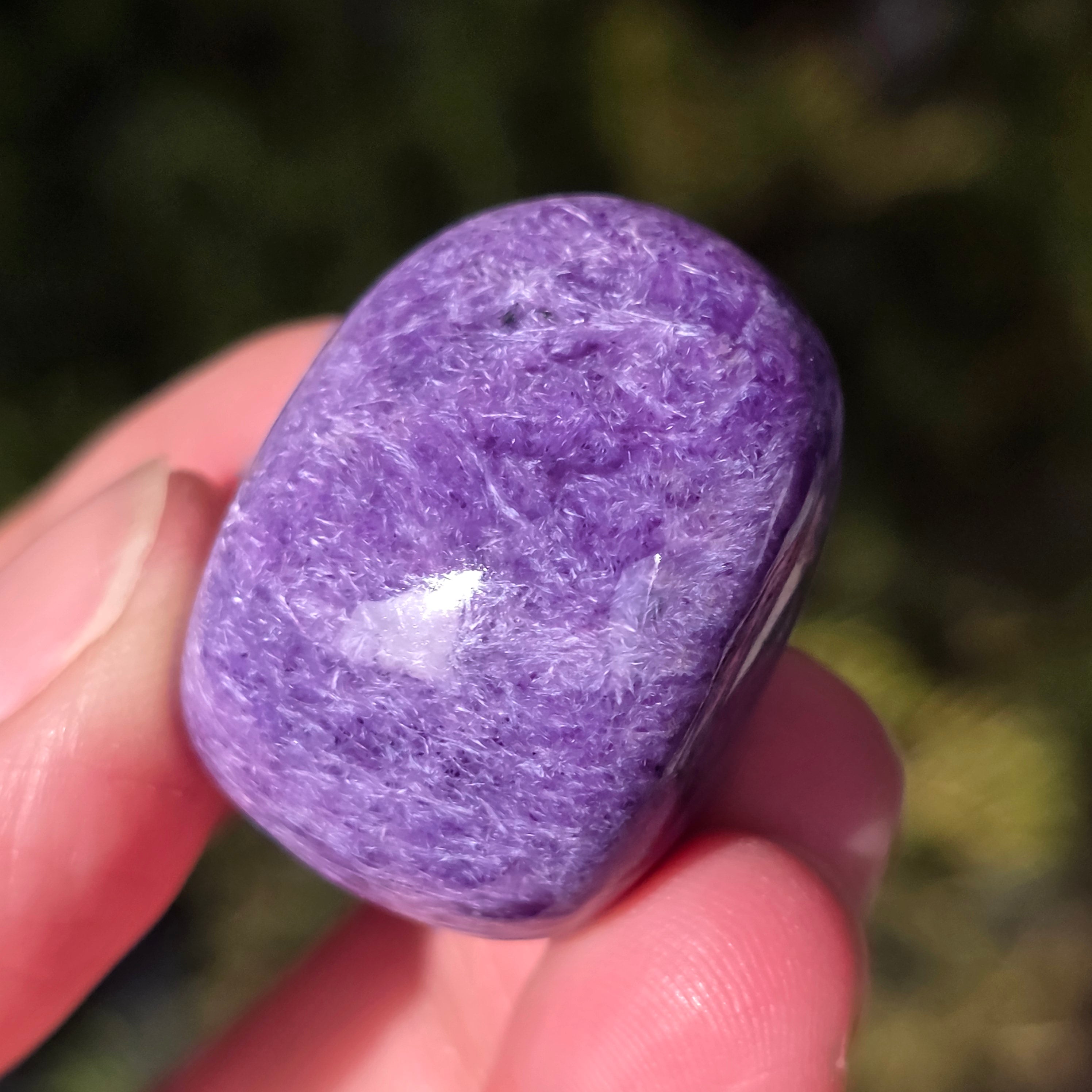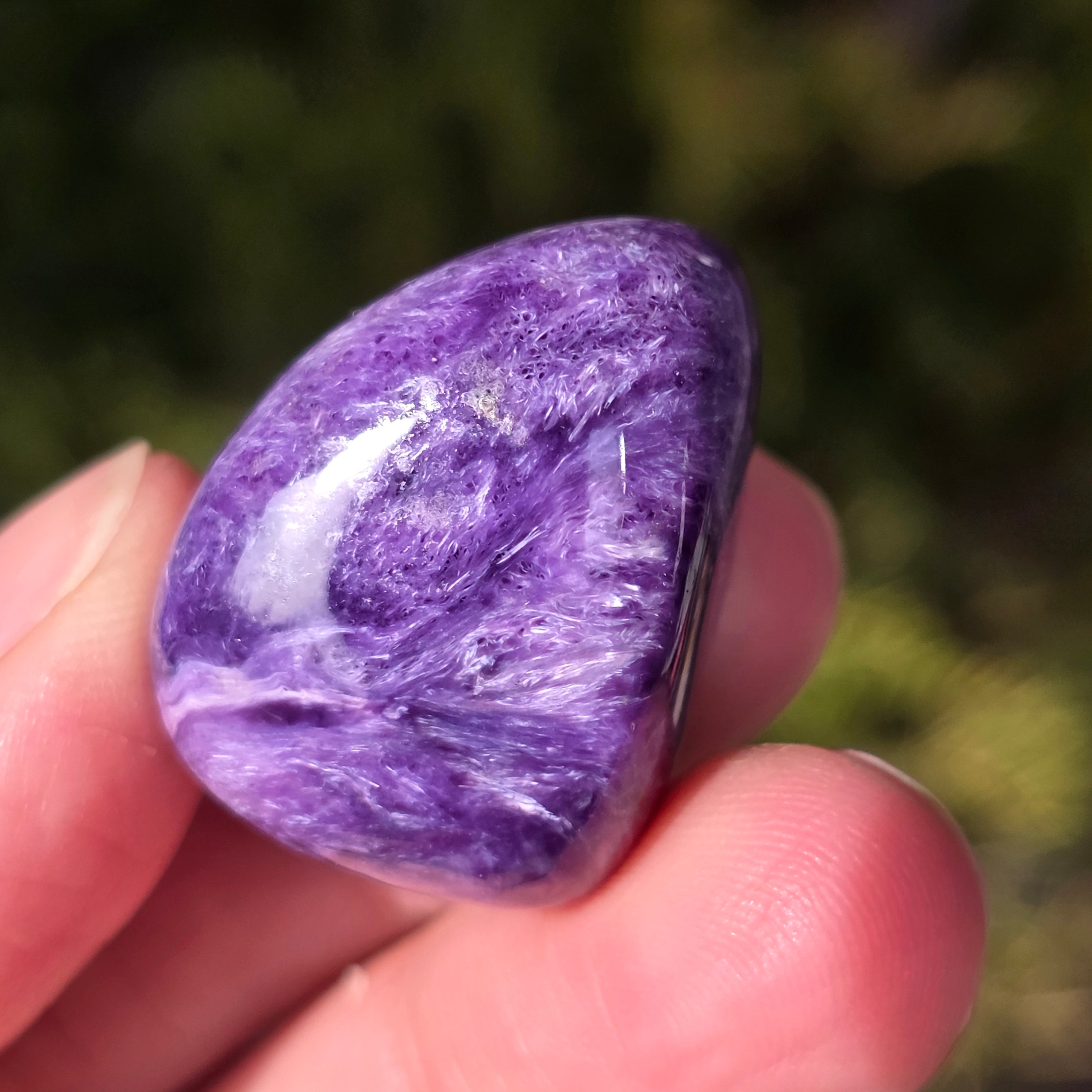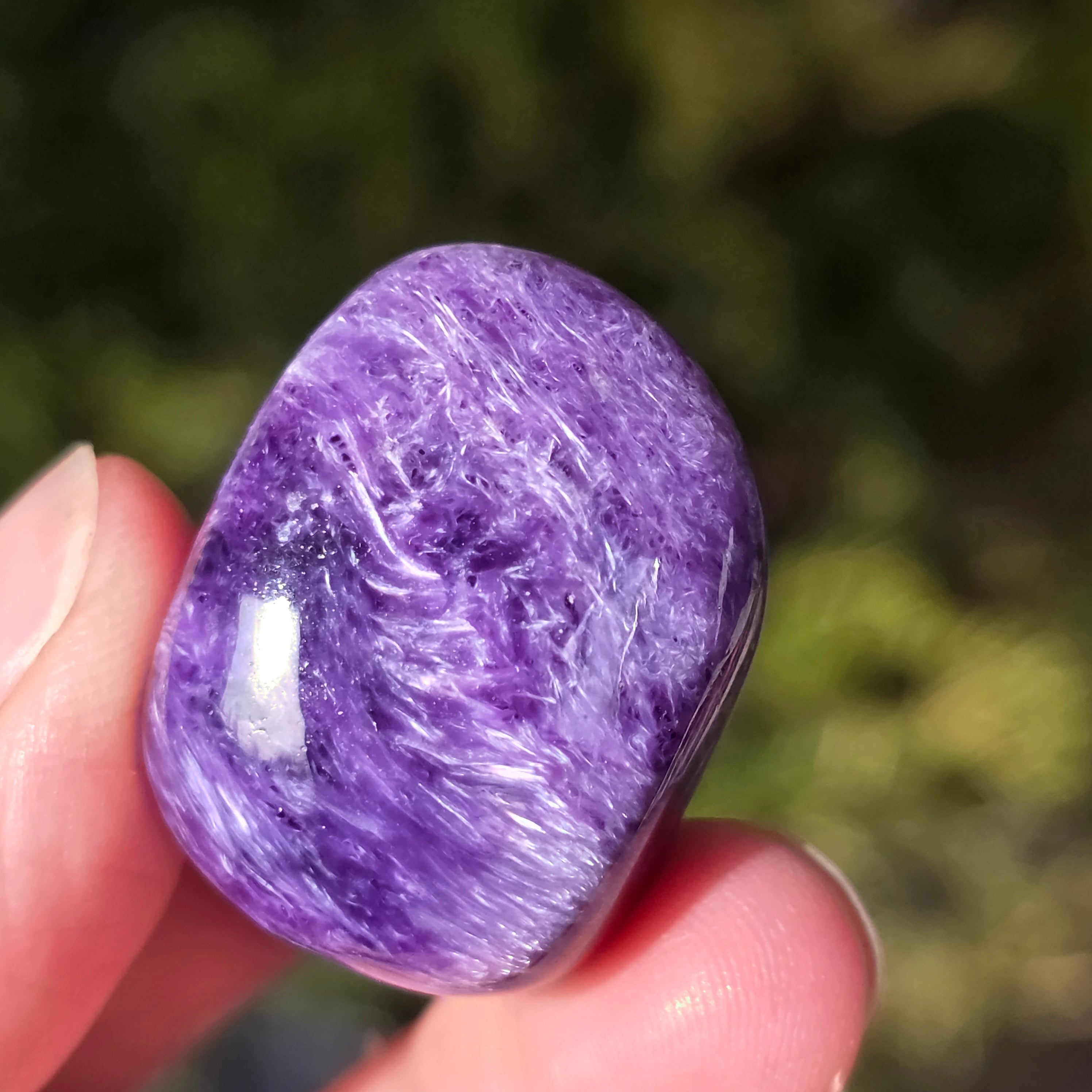 La charoíta se asocia con la sanación emocional y espiritual, la calma de la mente y el equilibrio de la energía. Se cree que esta piedra tiene la capacidad de fomentar la introspección y aumentar la intuición.