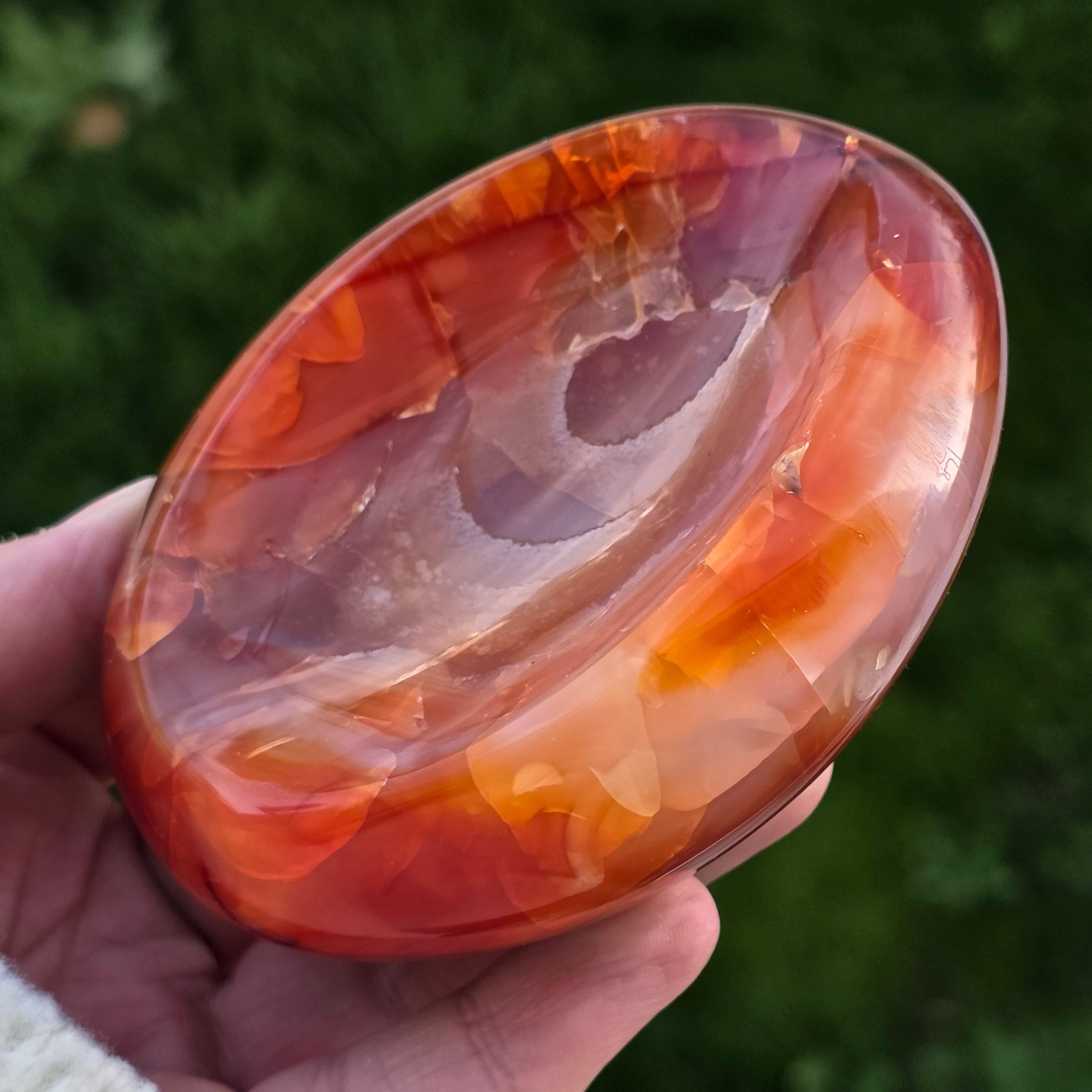 Cuenco de cornalina natural única,procedente de Madagascar, cuidadosamente esculpido para resaltar la belleza natural de la piedra.