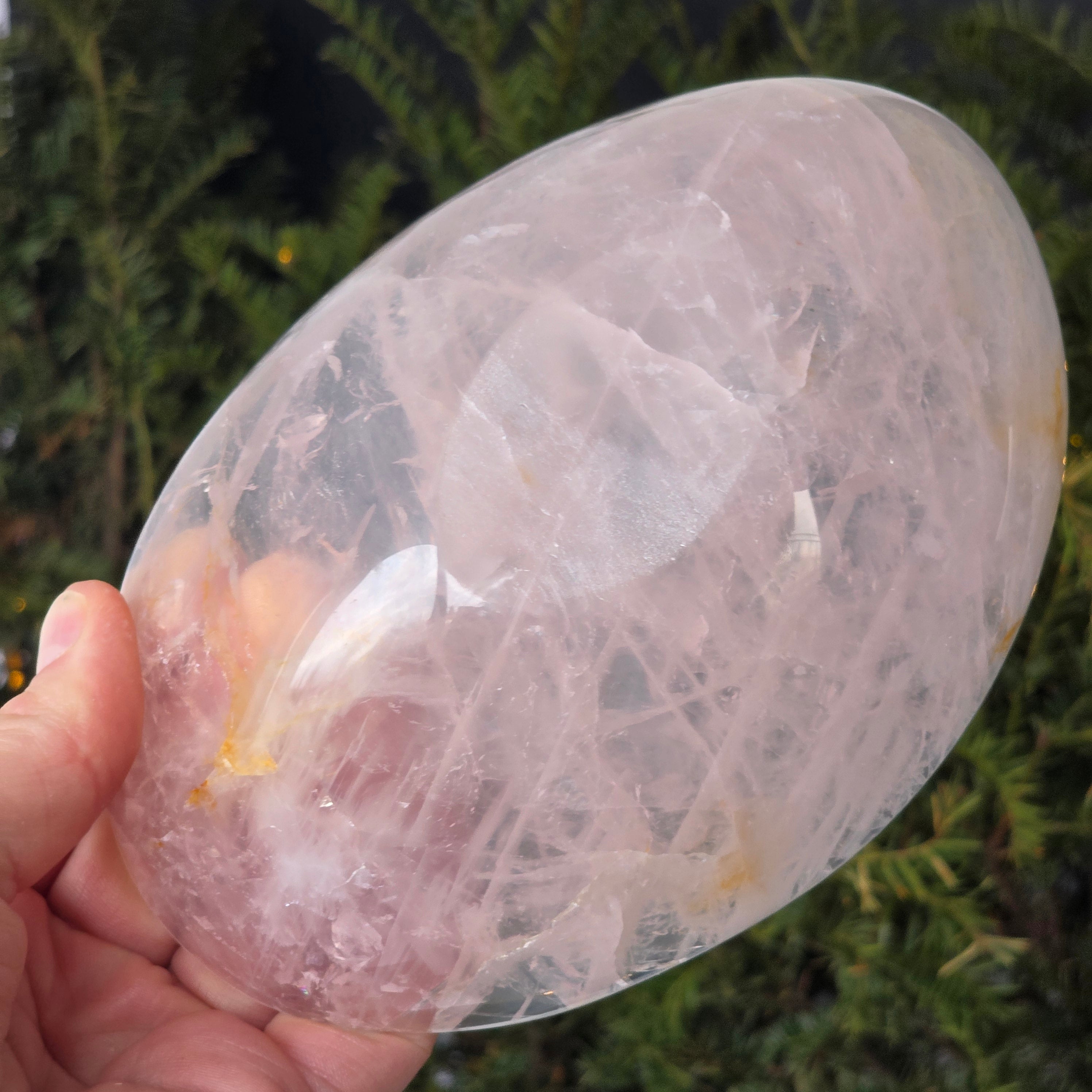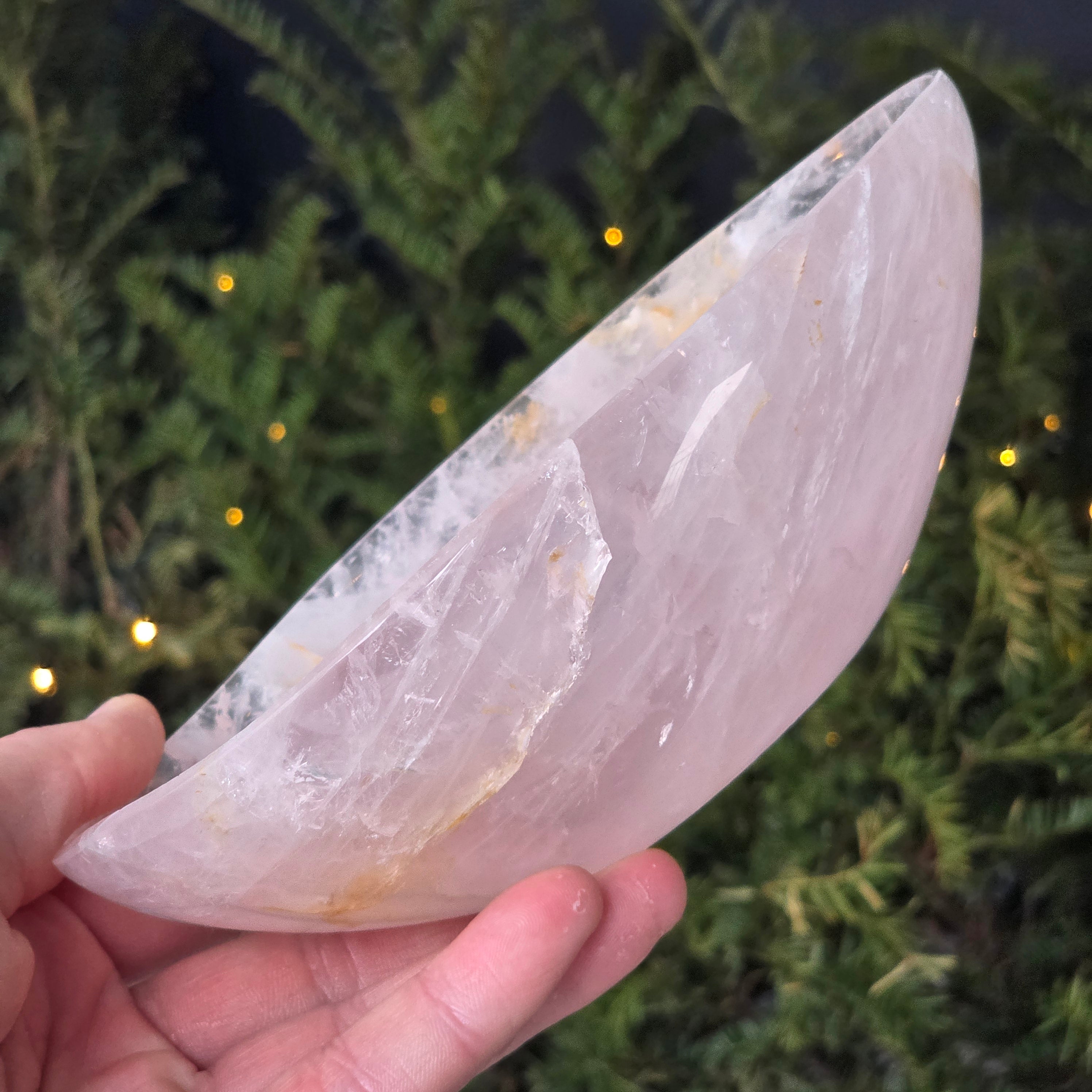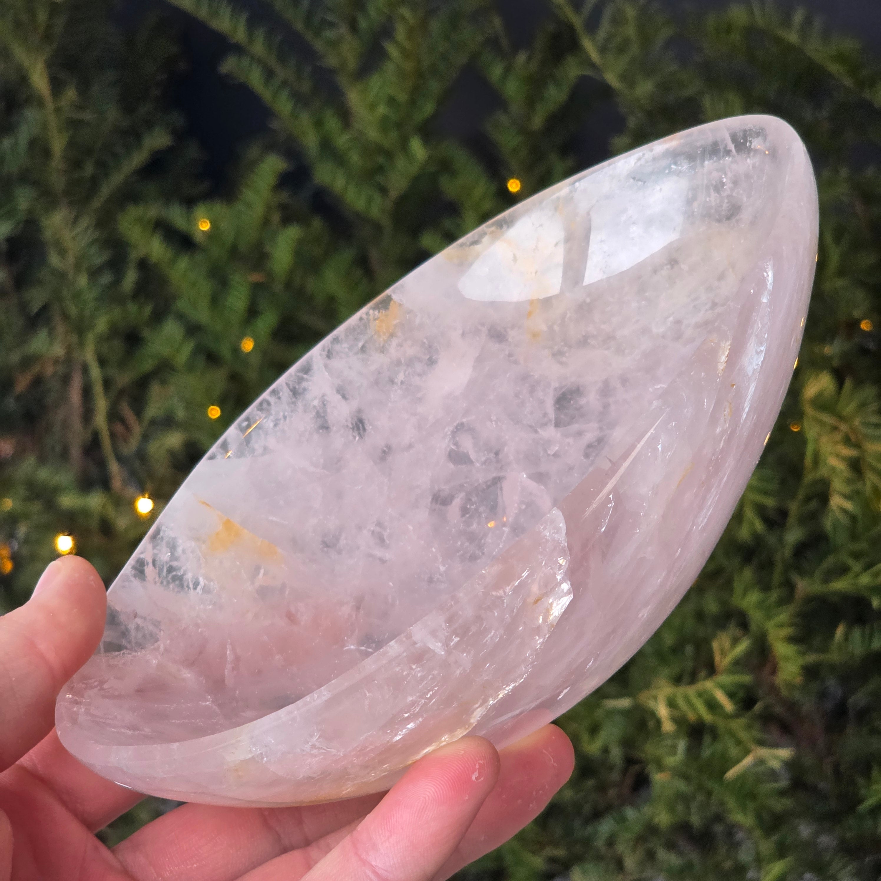 El cuenco de cuarzo rosa es una pieza decorativa hecha de una variedad de cuarzo con estructura cristalina bien definida, apreciada por su transparencia ligeramente lechosa y por los matices naturales de rosa, generados por inclusiones finas de titanio o manganeso. Este mineral es reconocido por su solidez, lo que permite trabajarlo en formas escultóricas equilibradas y acabados de alta calidad.