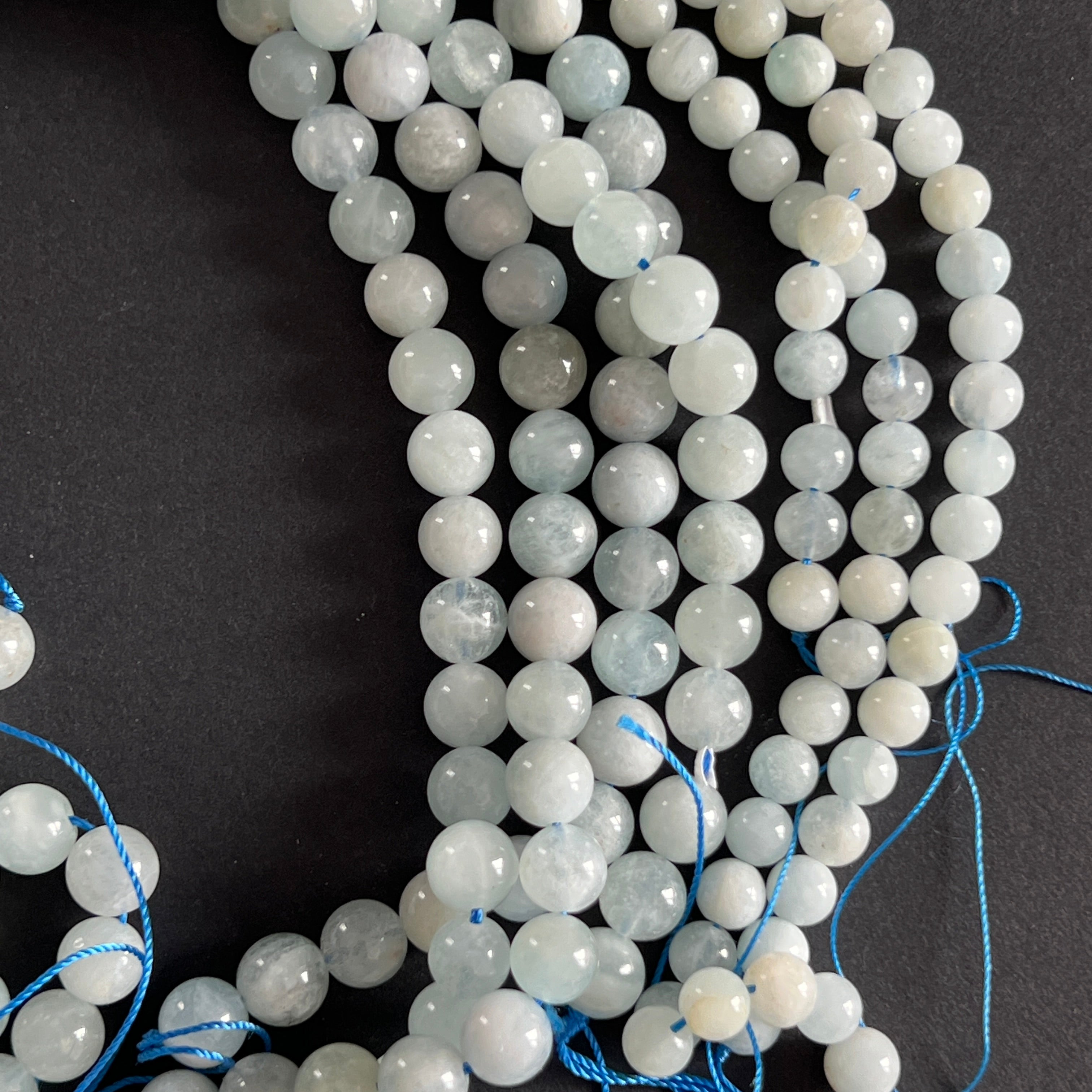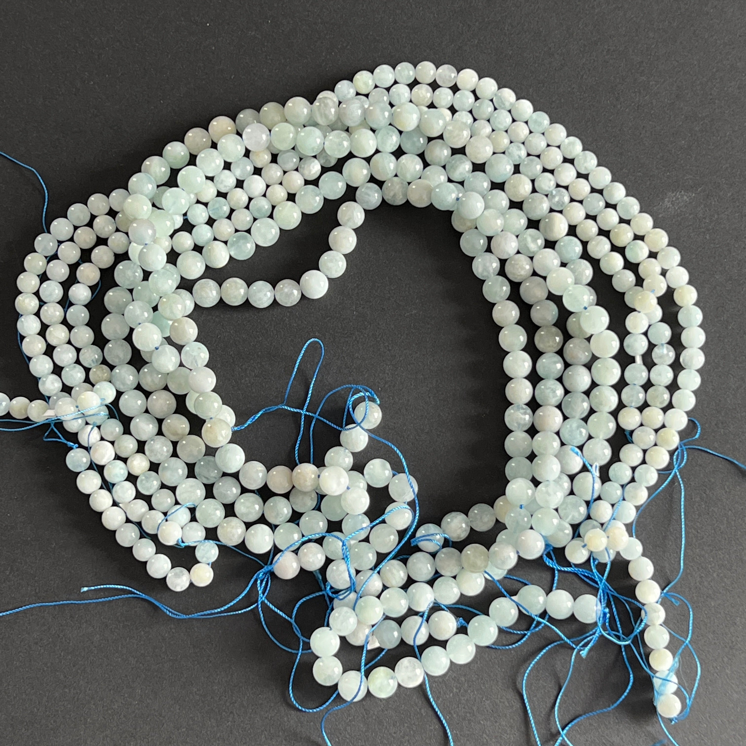 jarabe de AGUAMARINA, compuesto por cuentas esféricas naturales, perfecto para collares, pulseras u otras joyas hechas a mano.