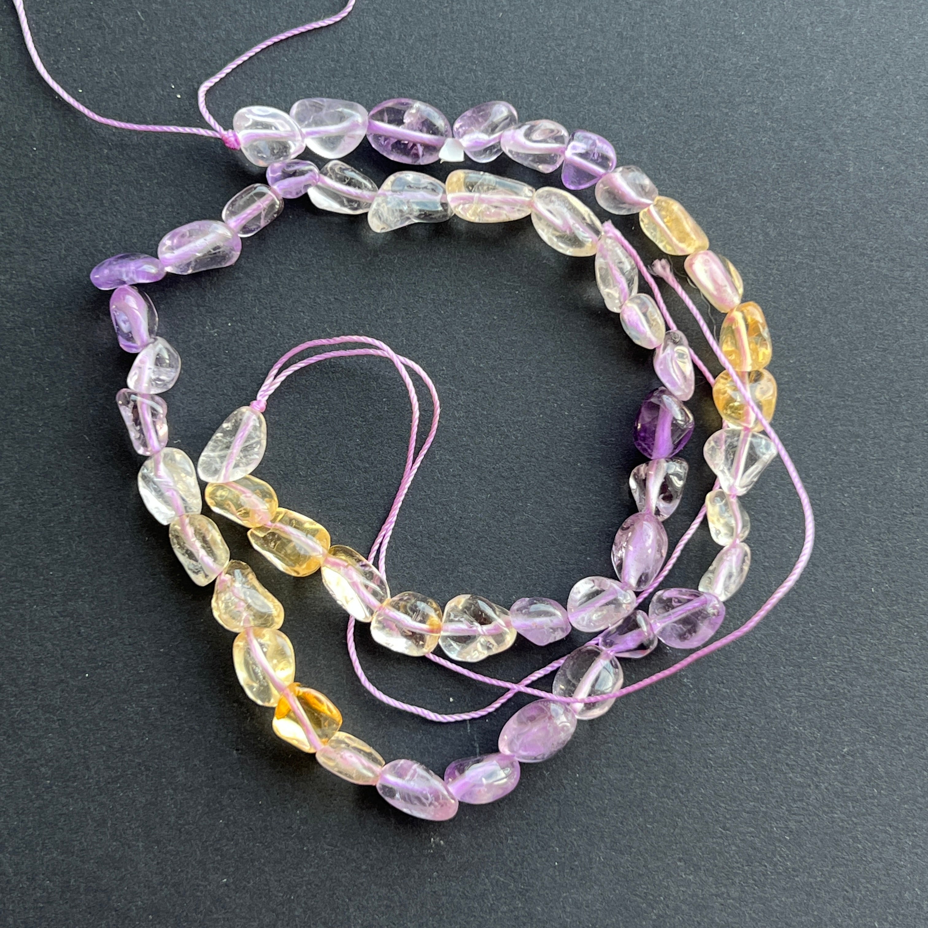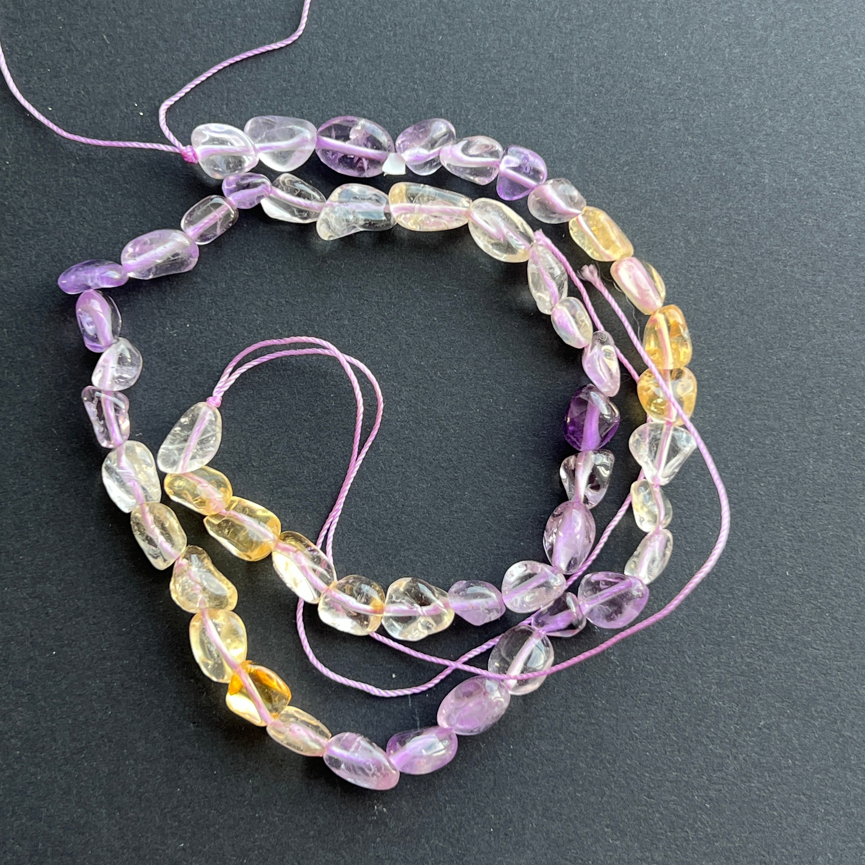 jarabe de ametrina, compuesto por piedras naturales laminadas en bruto, perfecto para collares, pulseras u otras joyas hechas a mano.