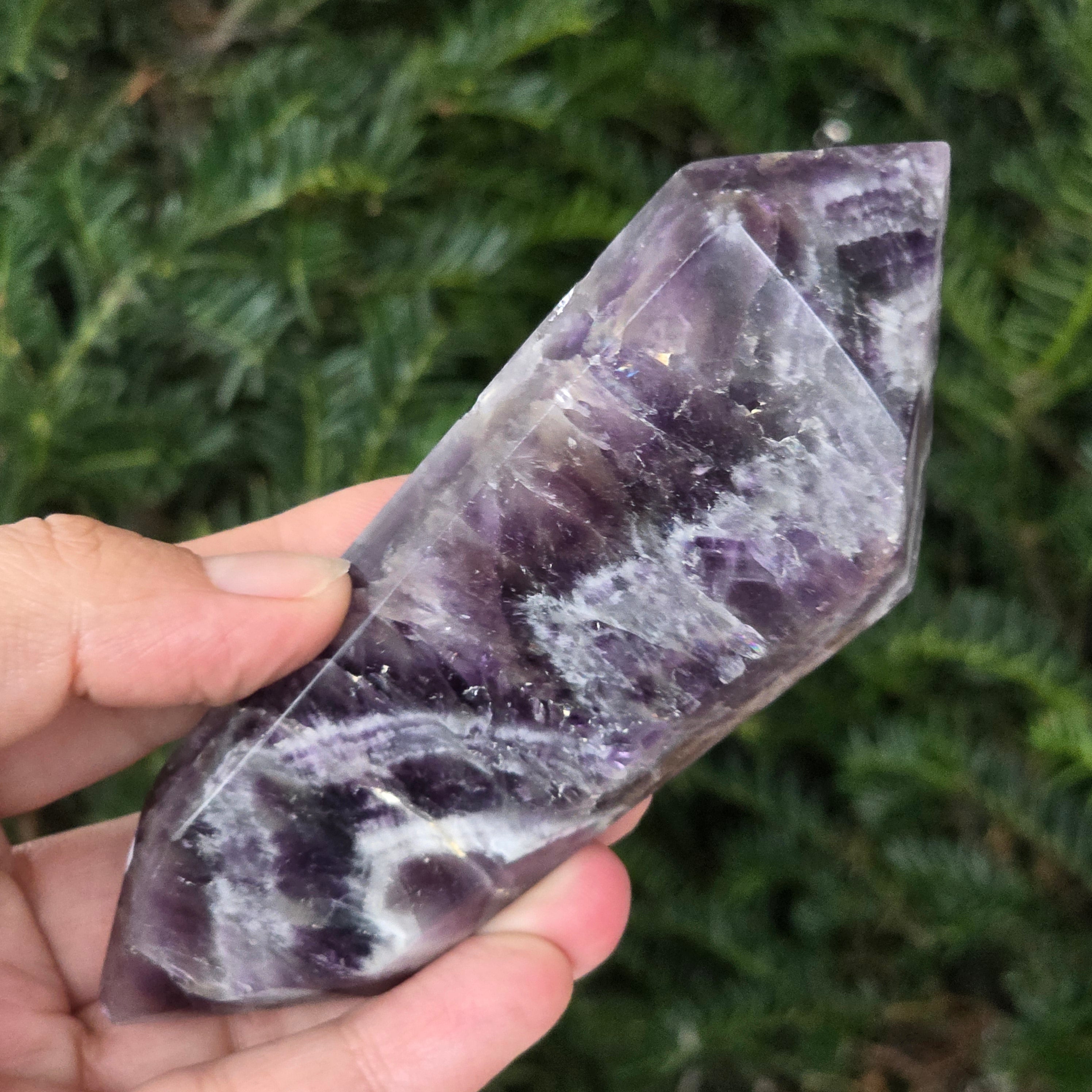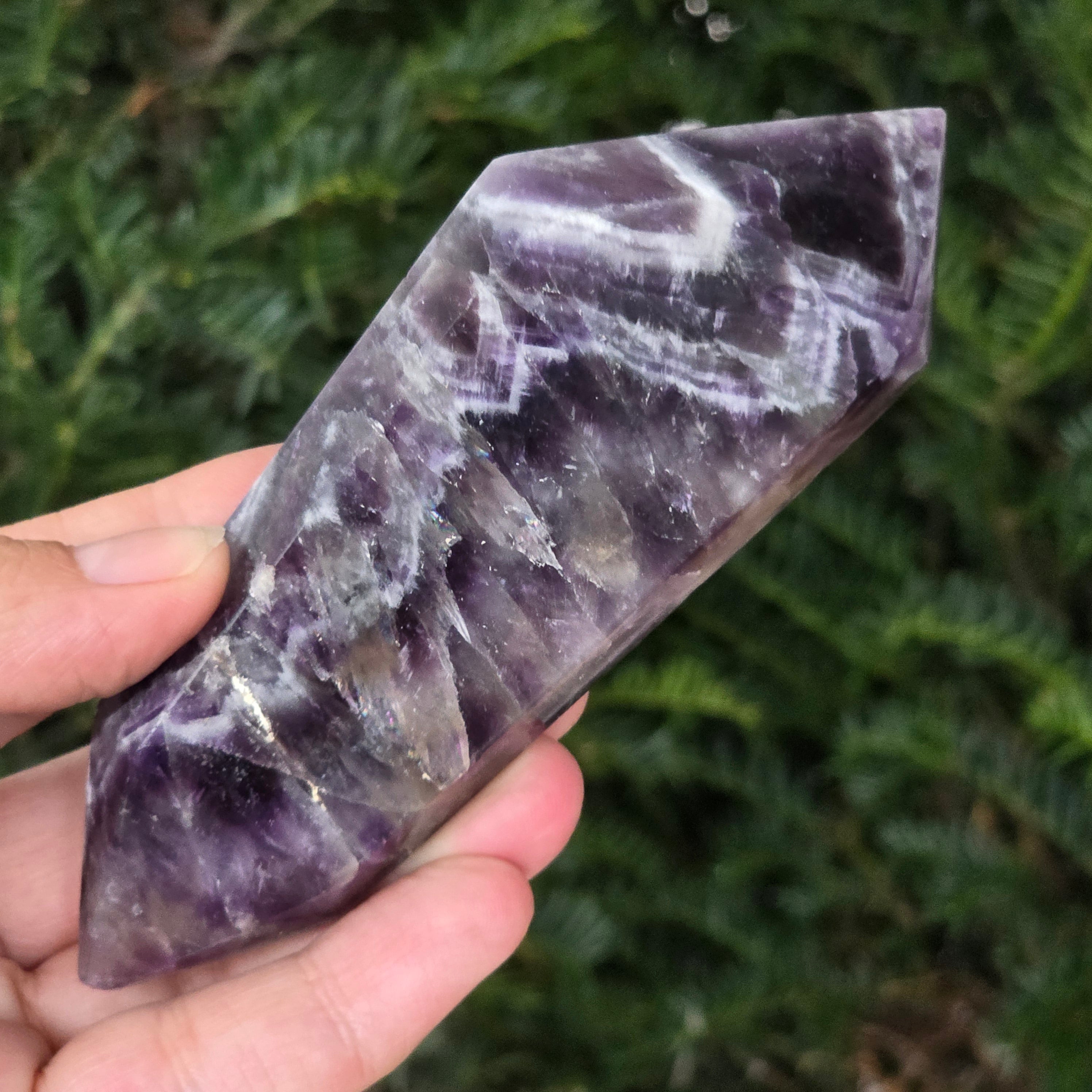 Elige un cristal de doble punta de amatista chevron y deja que se convierta en un aliado para el equilibrio, la purificación y la conexión con la sabiduría interior.