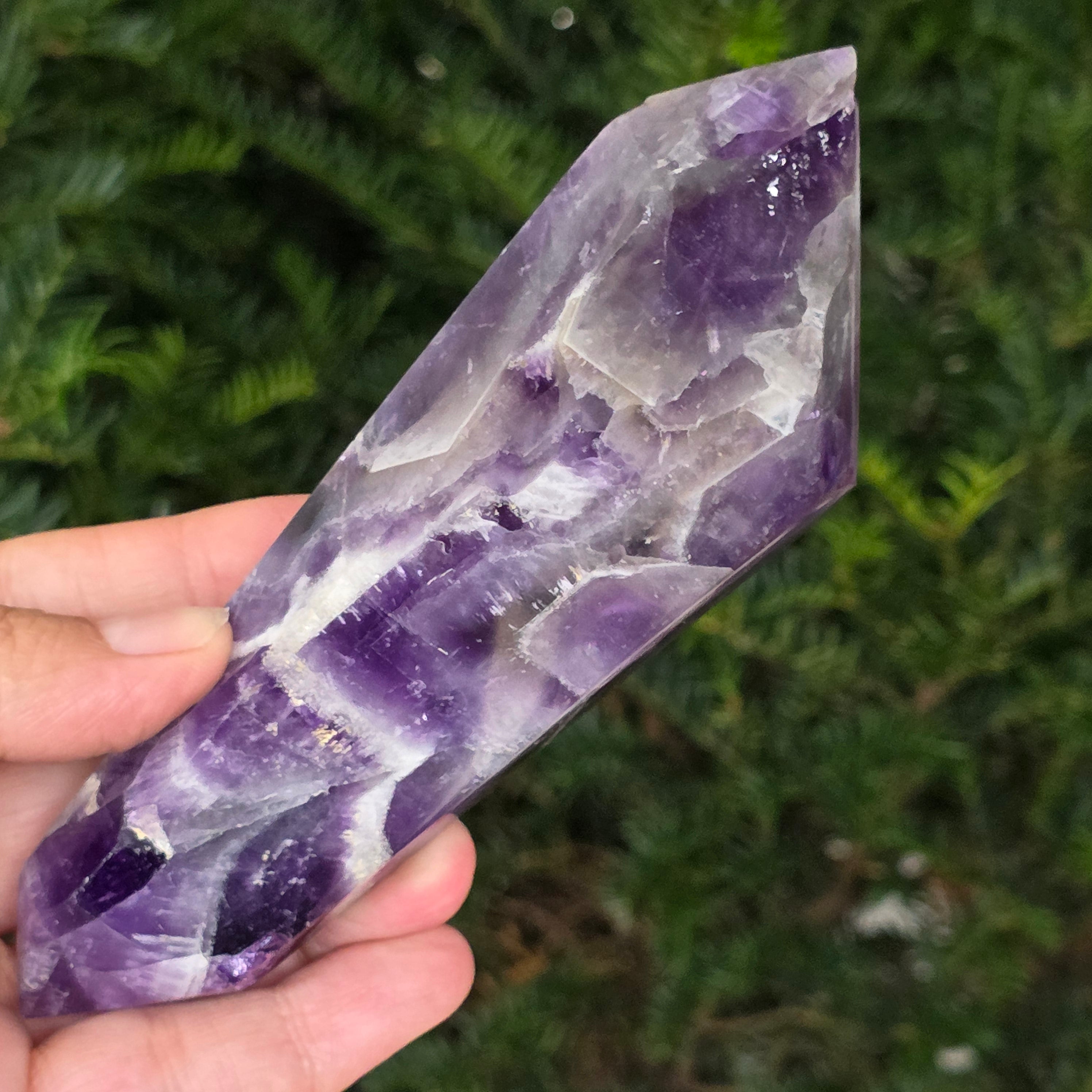 Elige un cristal de doble punta de amatista chevron y deja que se convierta en un aliado del equilibrio, la purificación y la conexión con la sabiduría interior.