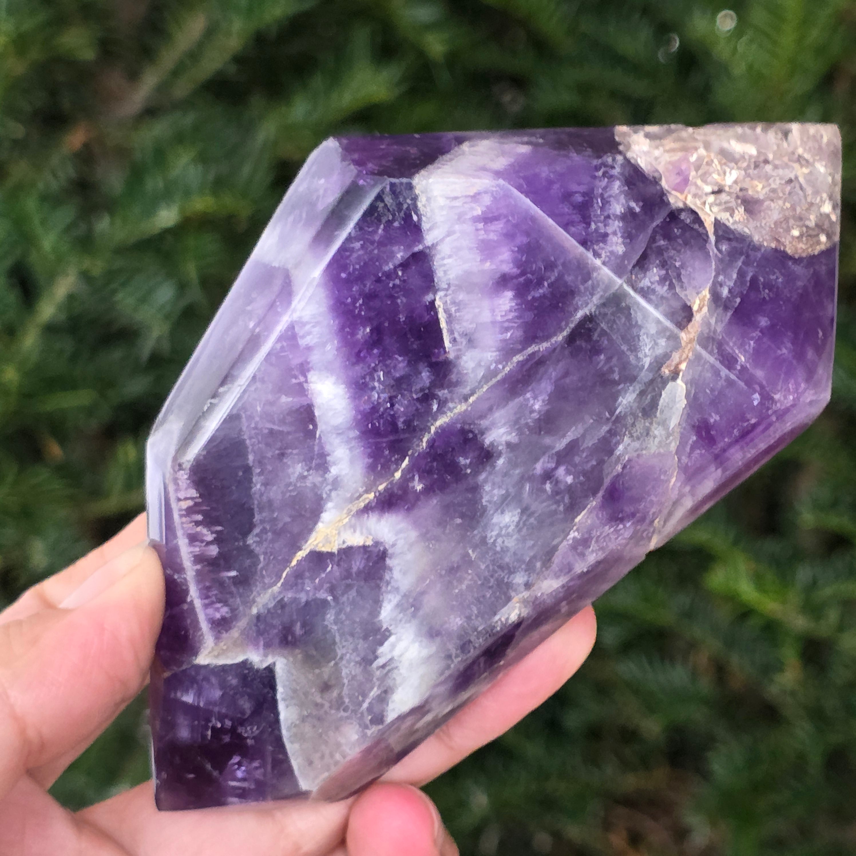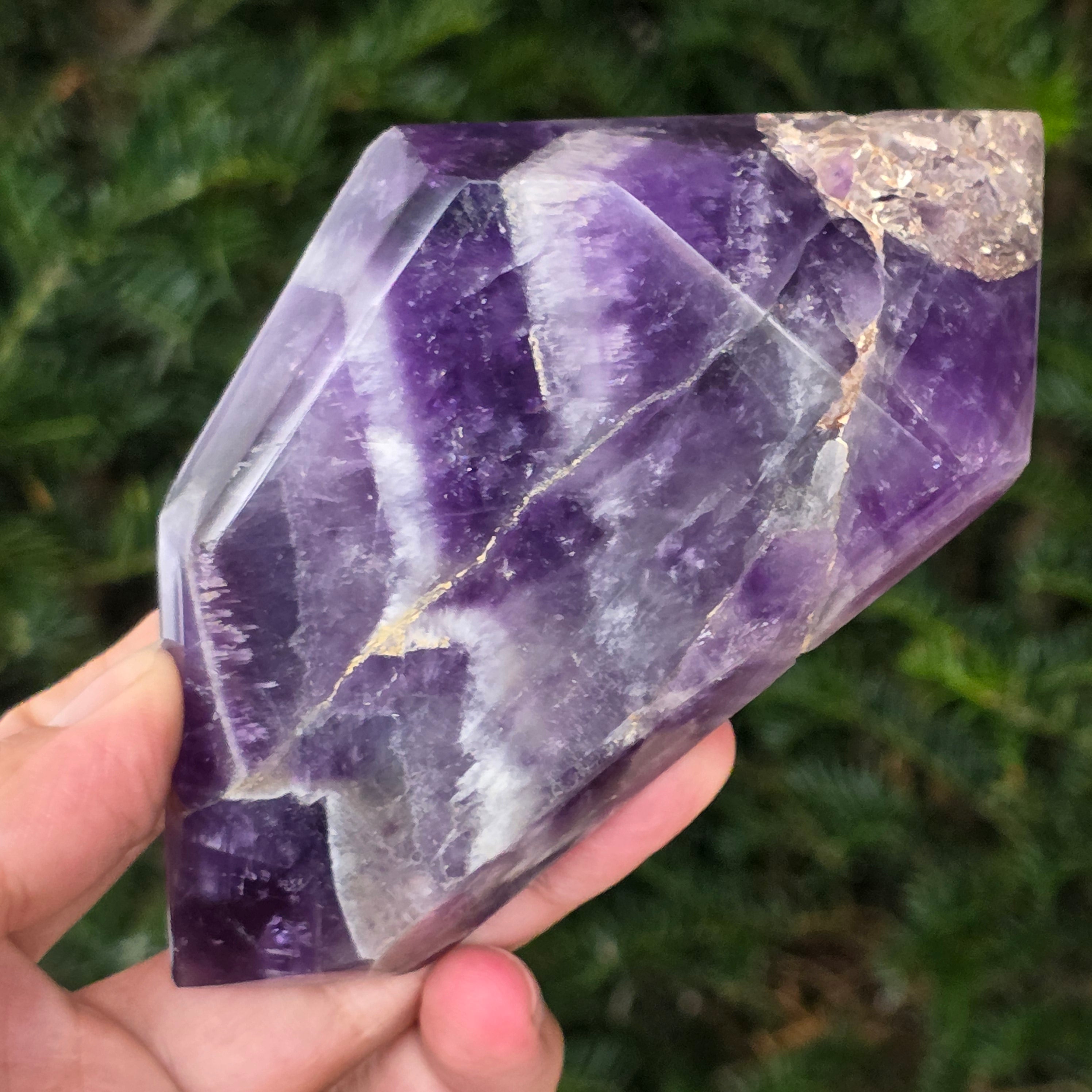 Elige un cristal de doble punta de amatista chevron y deja un aliado del equilibrio, la purificación y la conexión con la sabiduría interior.