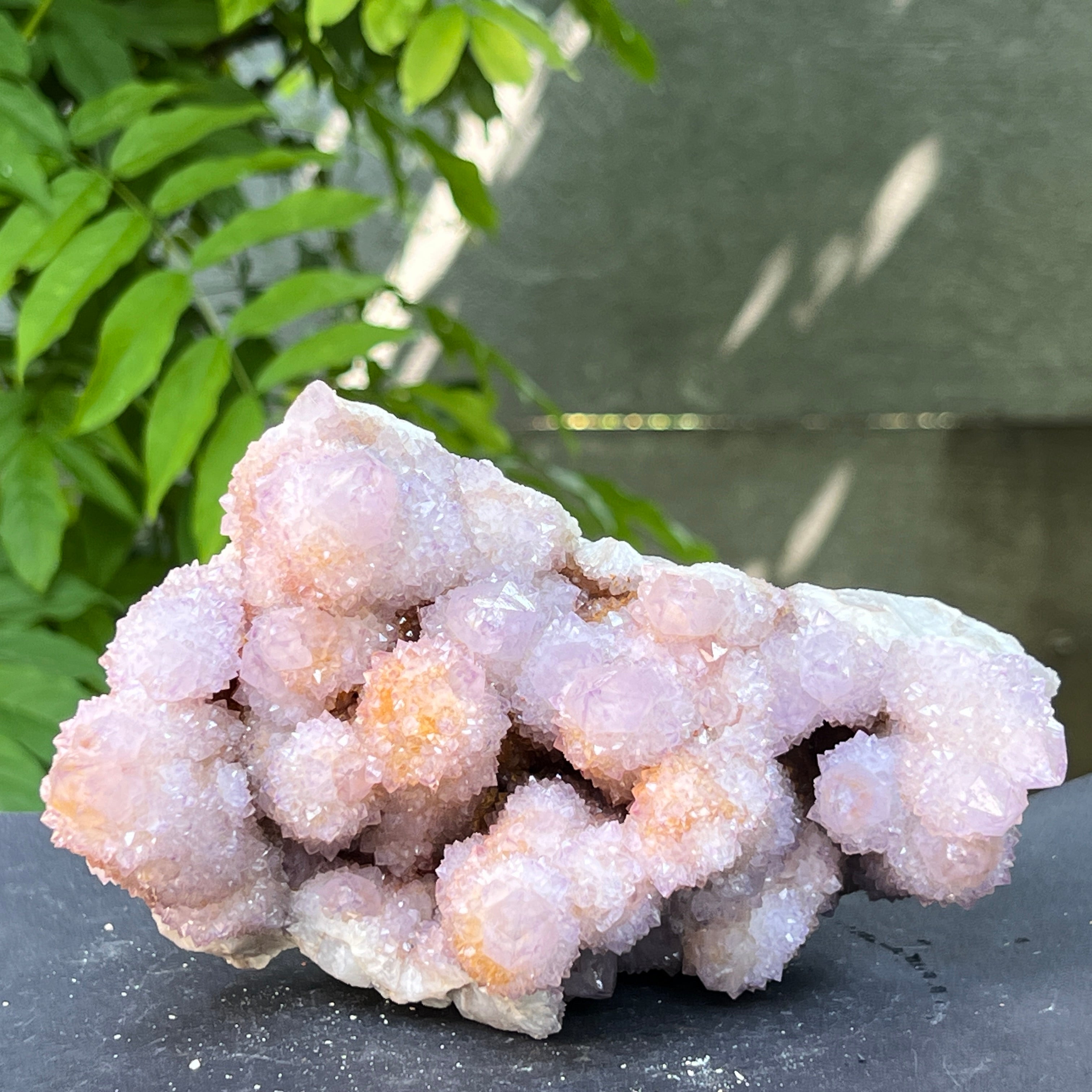 Originario de Sudáfrica, este ejemplar único reúne la energía profunda del cuarzo con las vibraciones altas de la amatista. Es una piedra de colaboración y unión espiritual, un símbolo de armonía entre la individualidad y la unidad. Cada cristal pequeño irradia desde el centro común, como una red de conciencias en perfecto equilibrio.