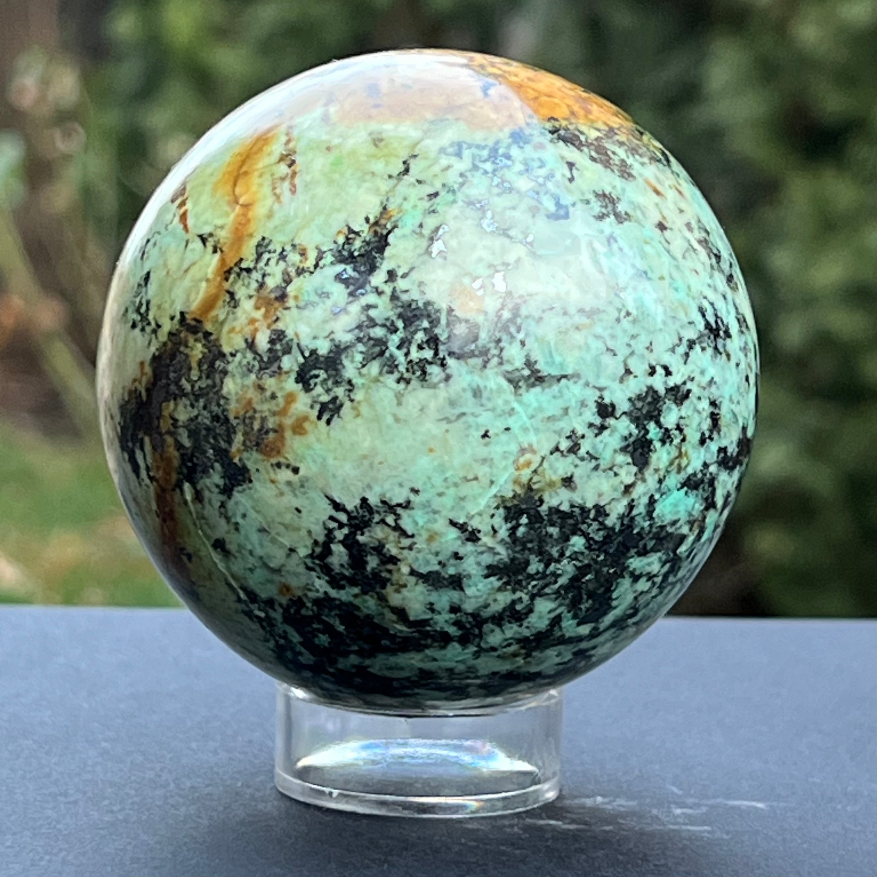 Esfera de 7,2 cm crisocola mina Messina, Congo, modelo 1