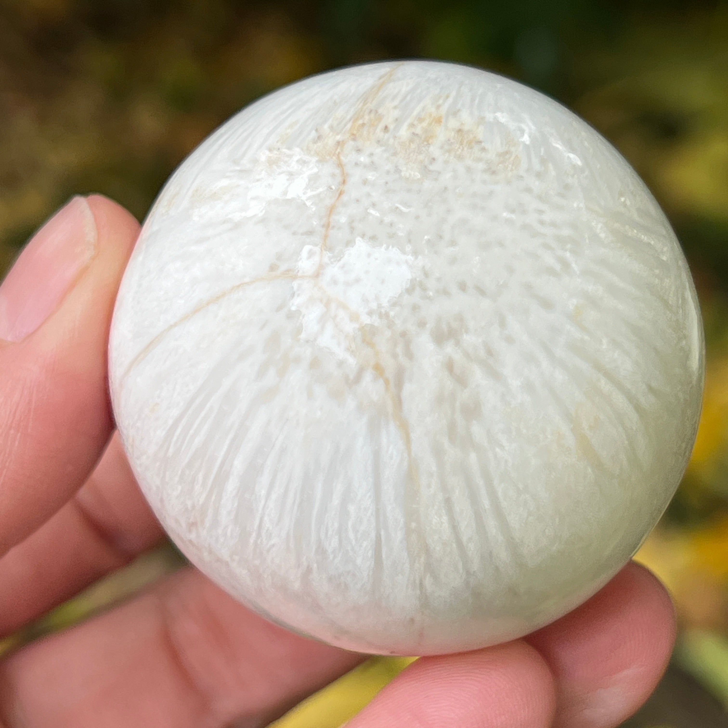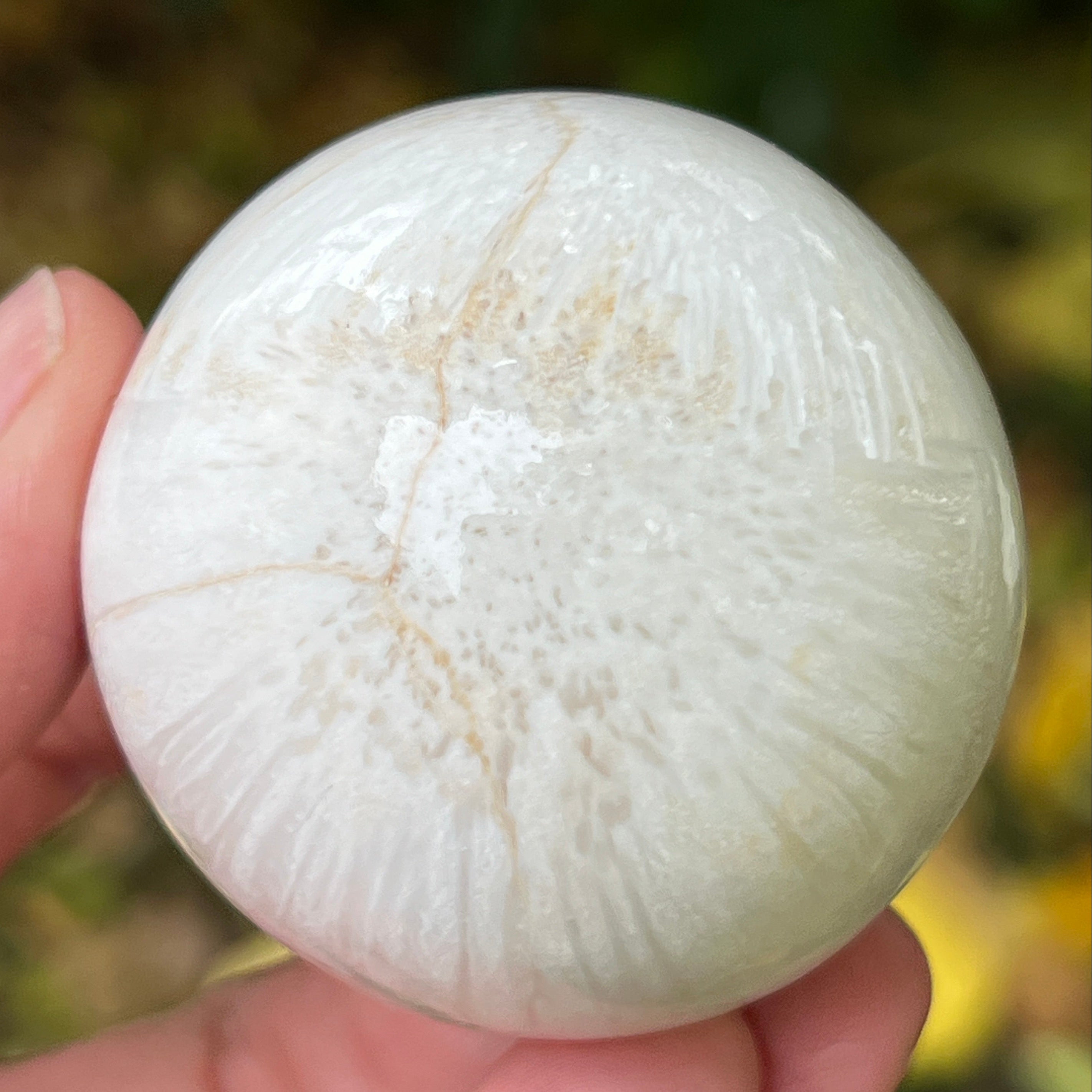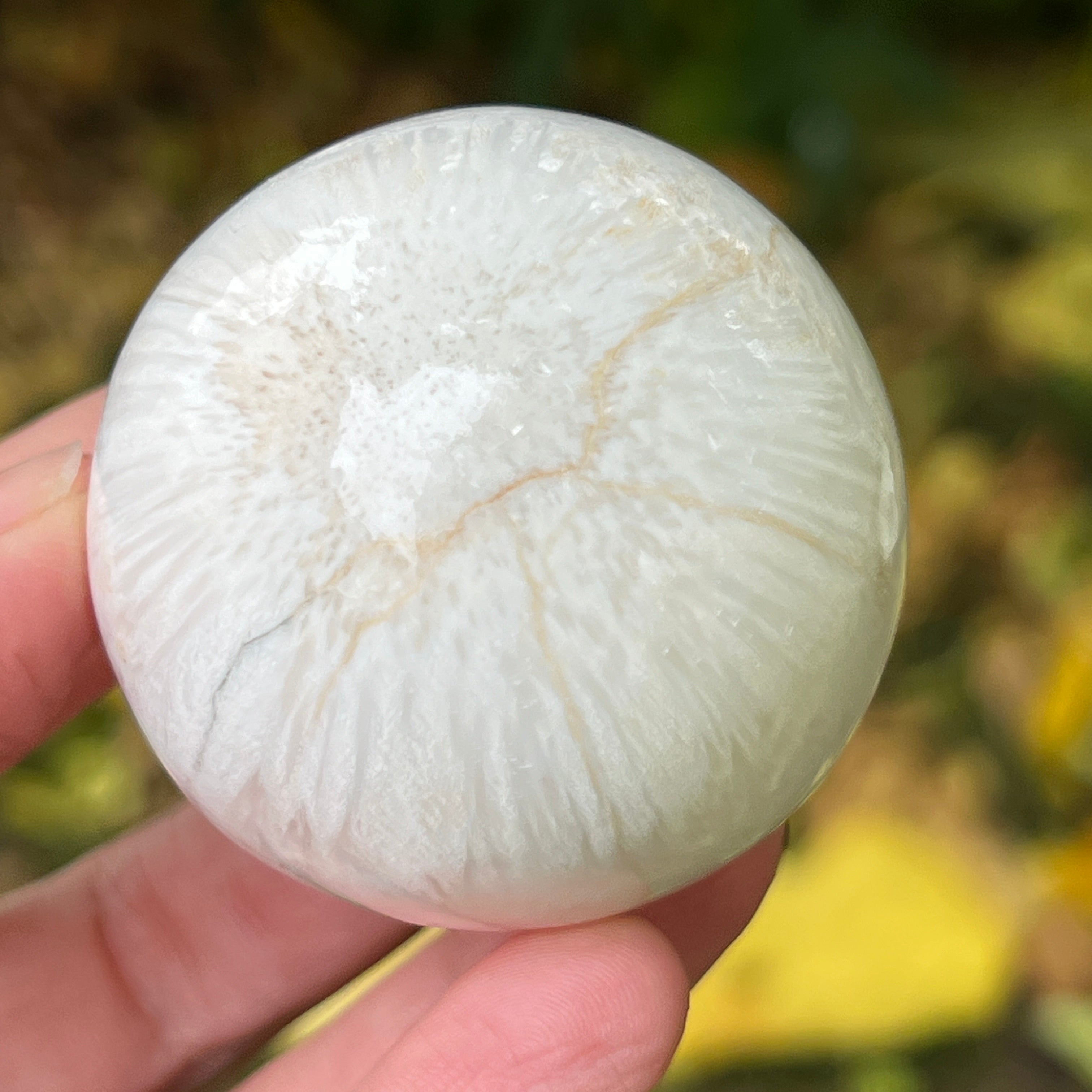 La scolecita es una piedra delicada y luminosa, perteneciente a la familia de los zeolitos, reconocida por su estructura fina, fibrosa-radial y su brillo sedoso. Generalmente es blanca o crema, a veces con sutiles tonos de rosa o beige; esta piedra emana una pureza casi etérea, que recuerda la calma interior y el silencio del cual nace la paz.