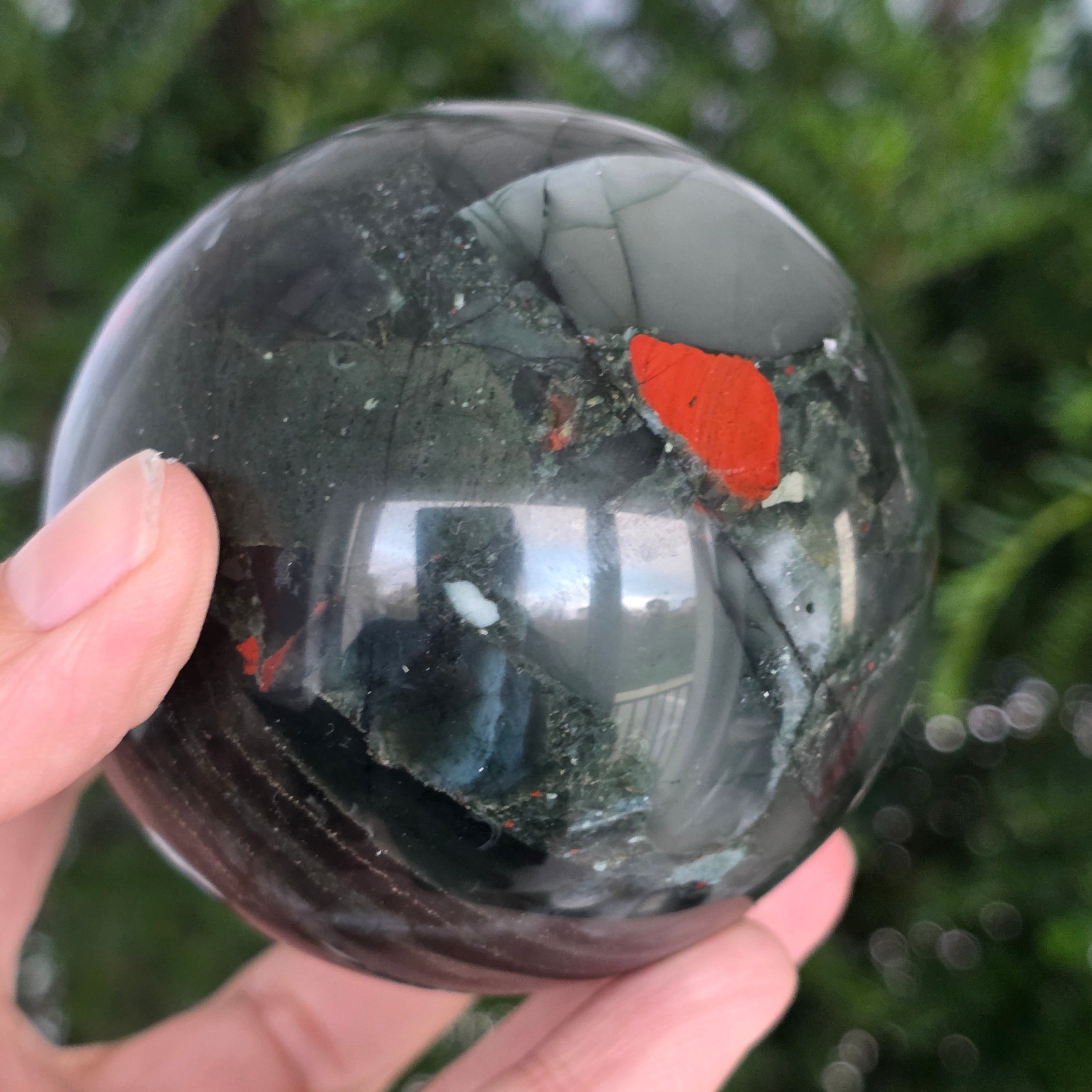 Descriere - Esfera de seftonita piedra de sangre modelo 4