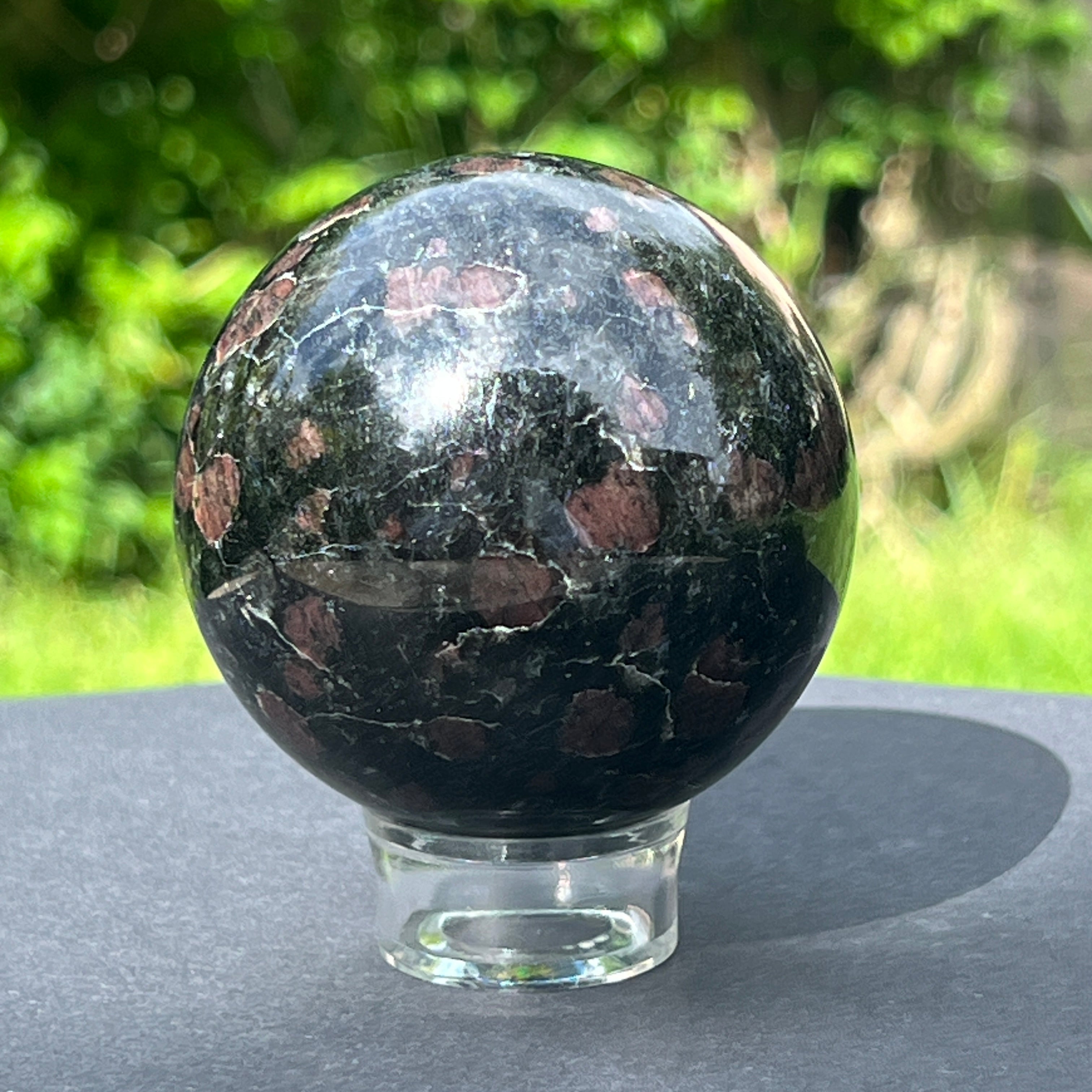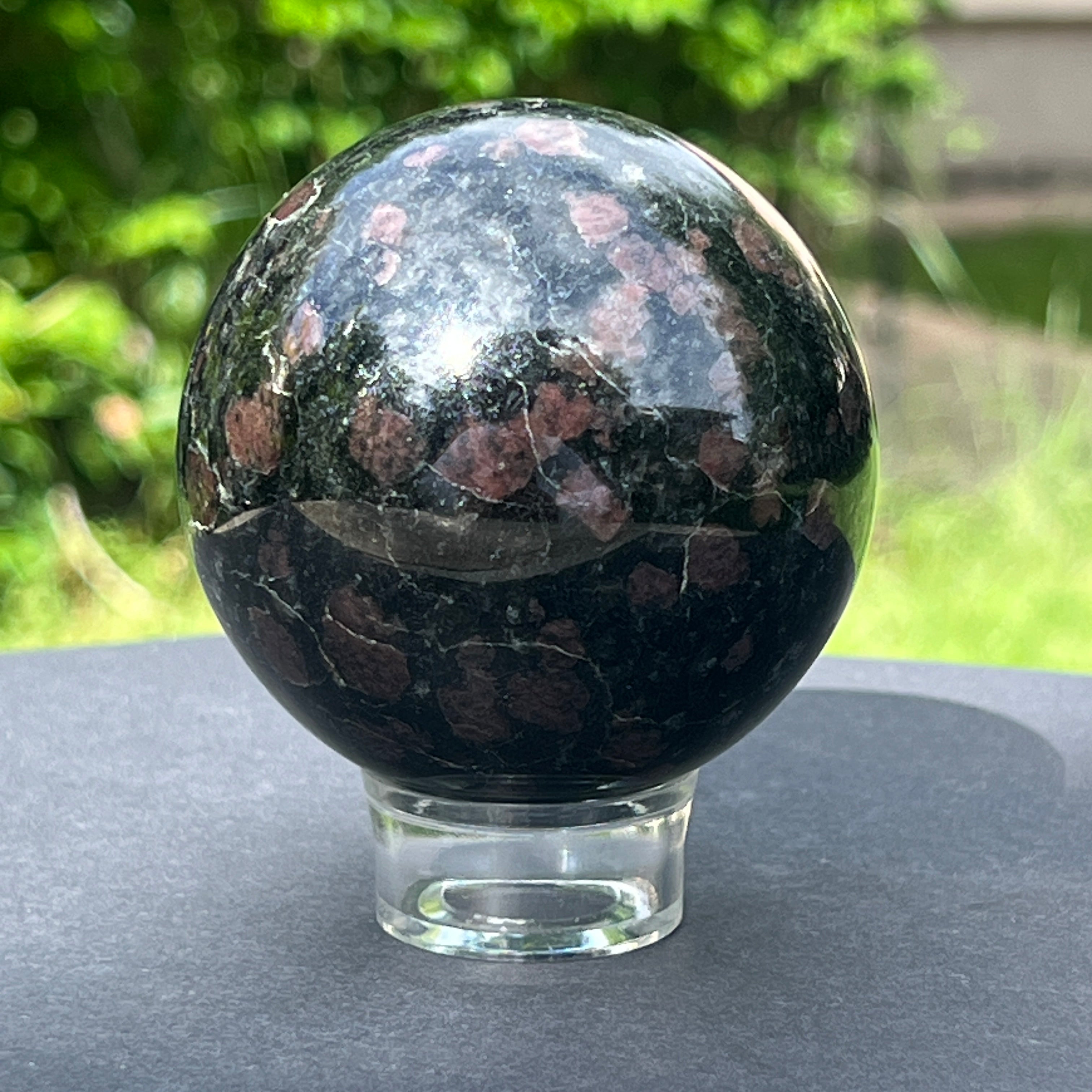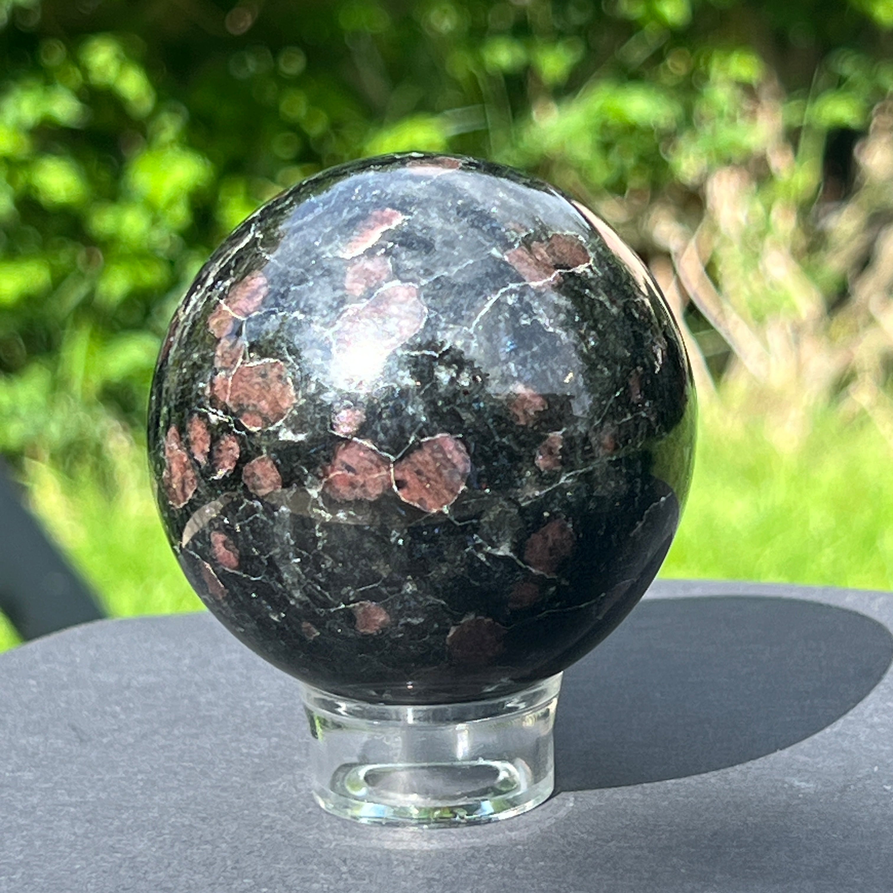 Descriere - ¡Esfera de turmalina negra con patrón granate del 1