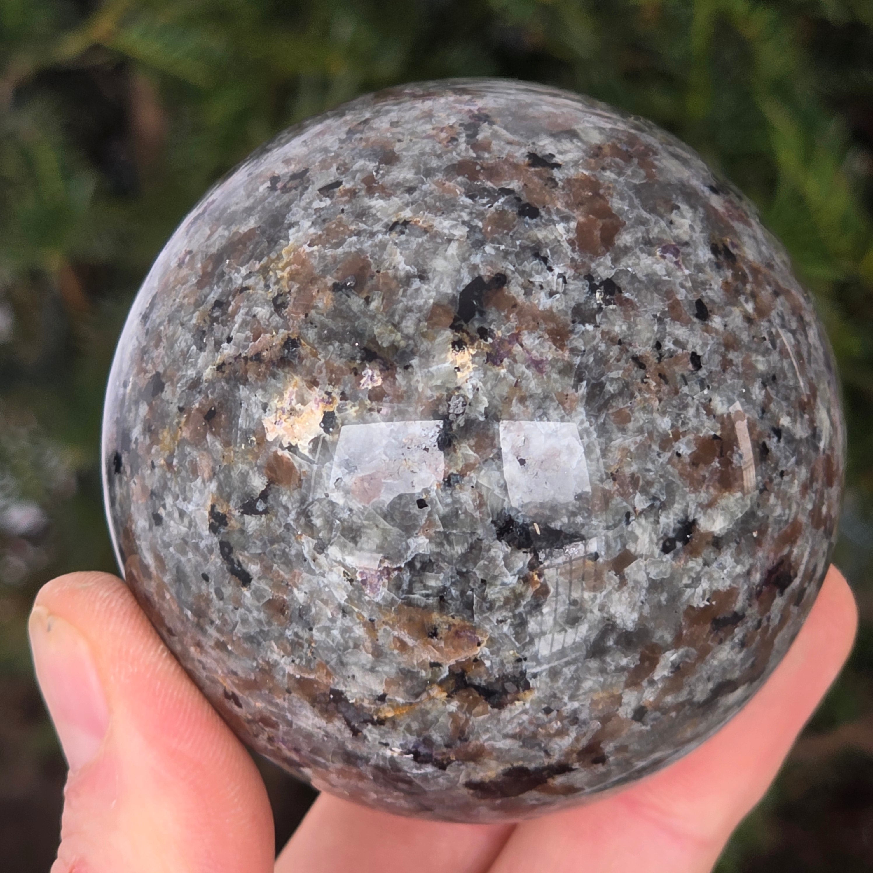 La esfera de yooperlita está asociada con la claridad emocional y la expresión de la verdad interior, siendo conocida por su vínculo con la conciencia y el descubrimiento de cosas ocultas. La forma esférica amplifica la idea de equilibrio y coherencia, apoyando una relación más sincera con las propias emociones y reacciones.